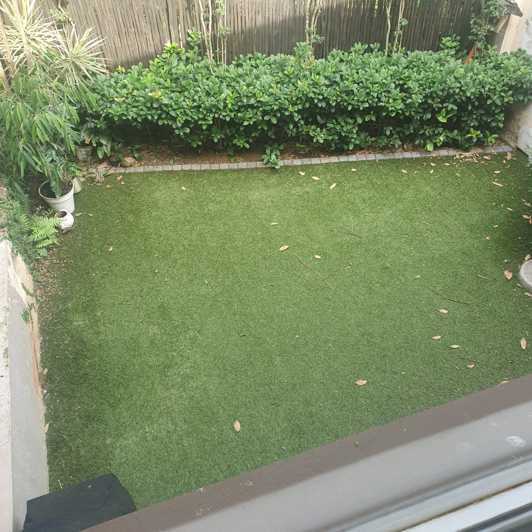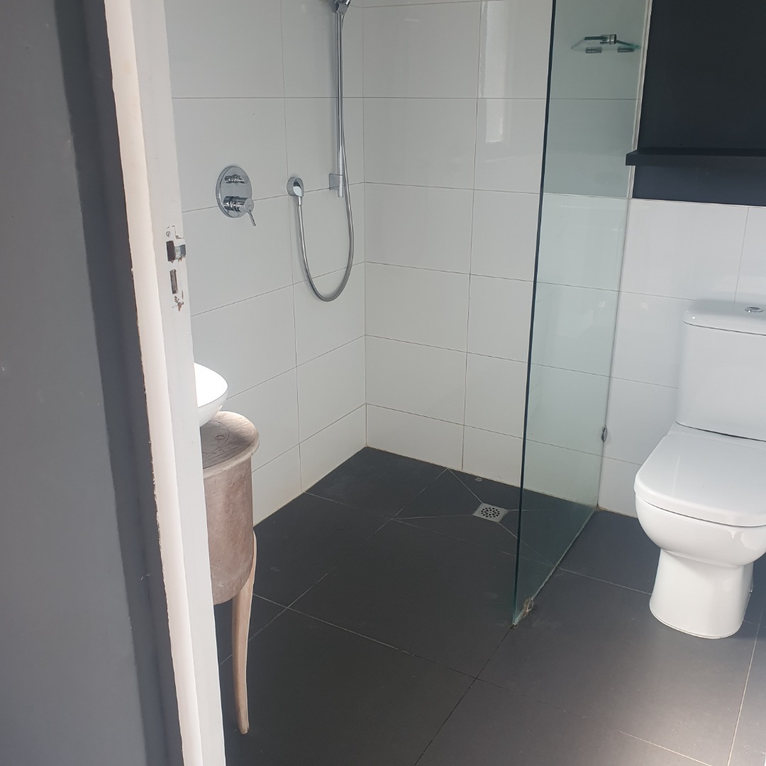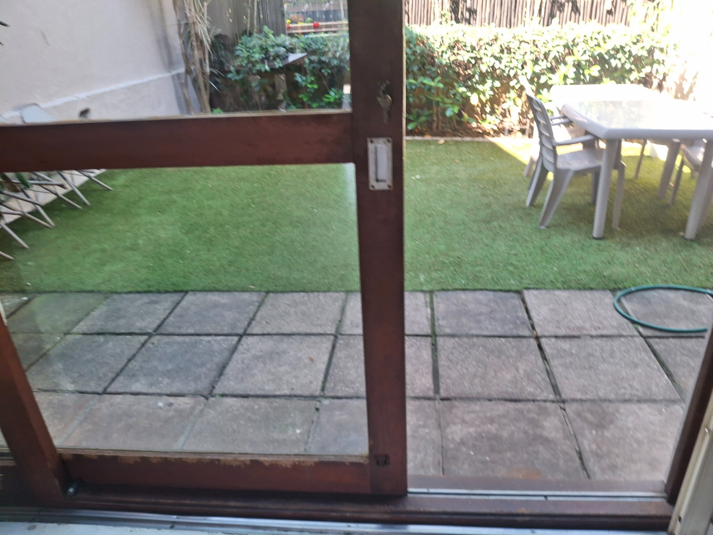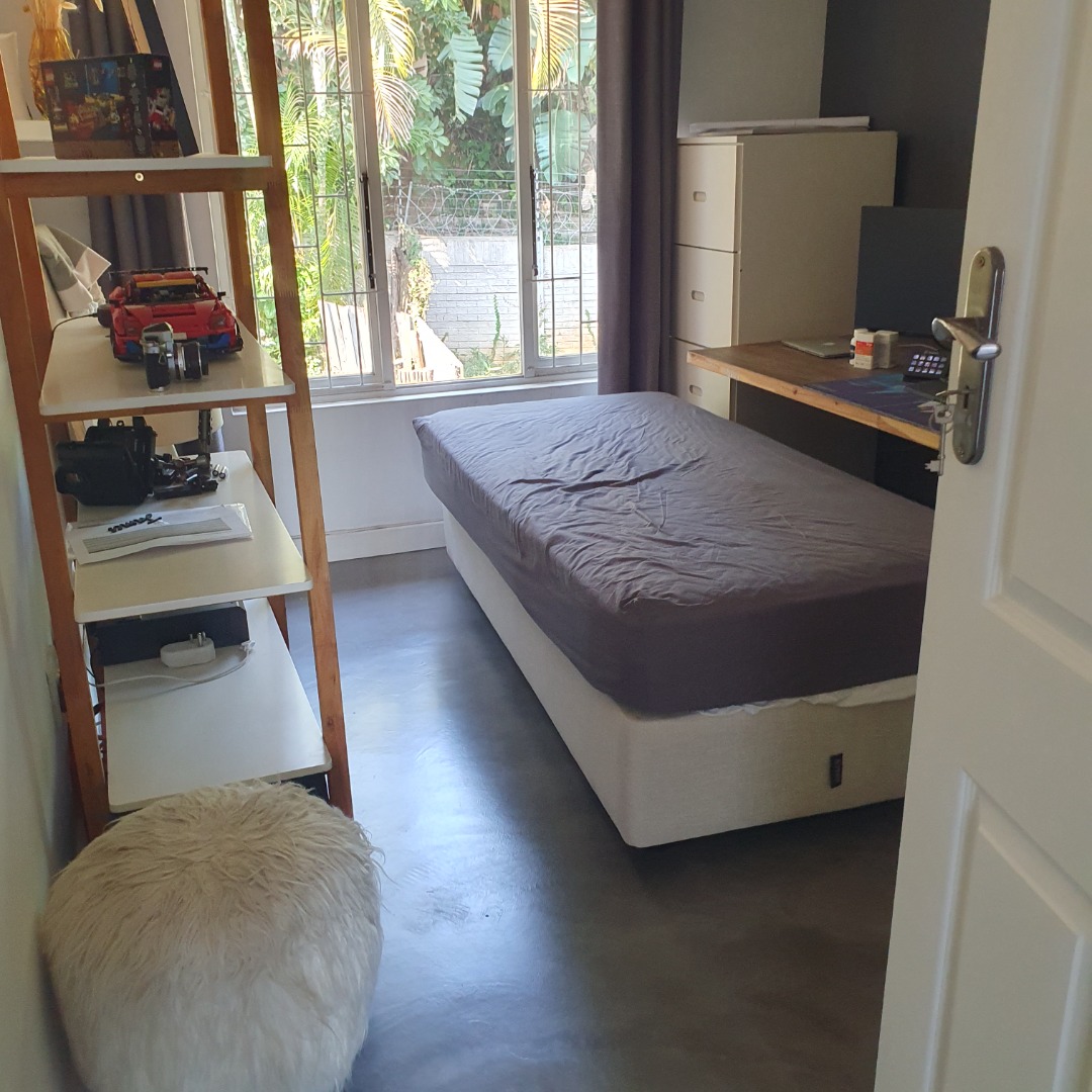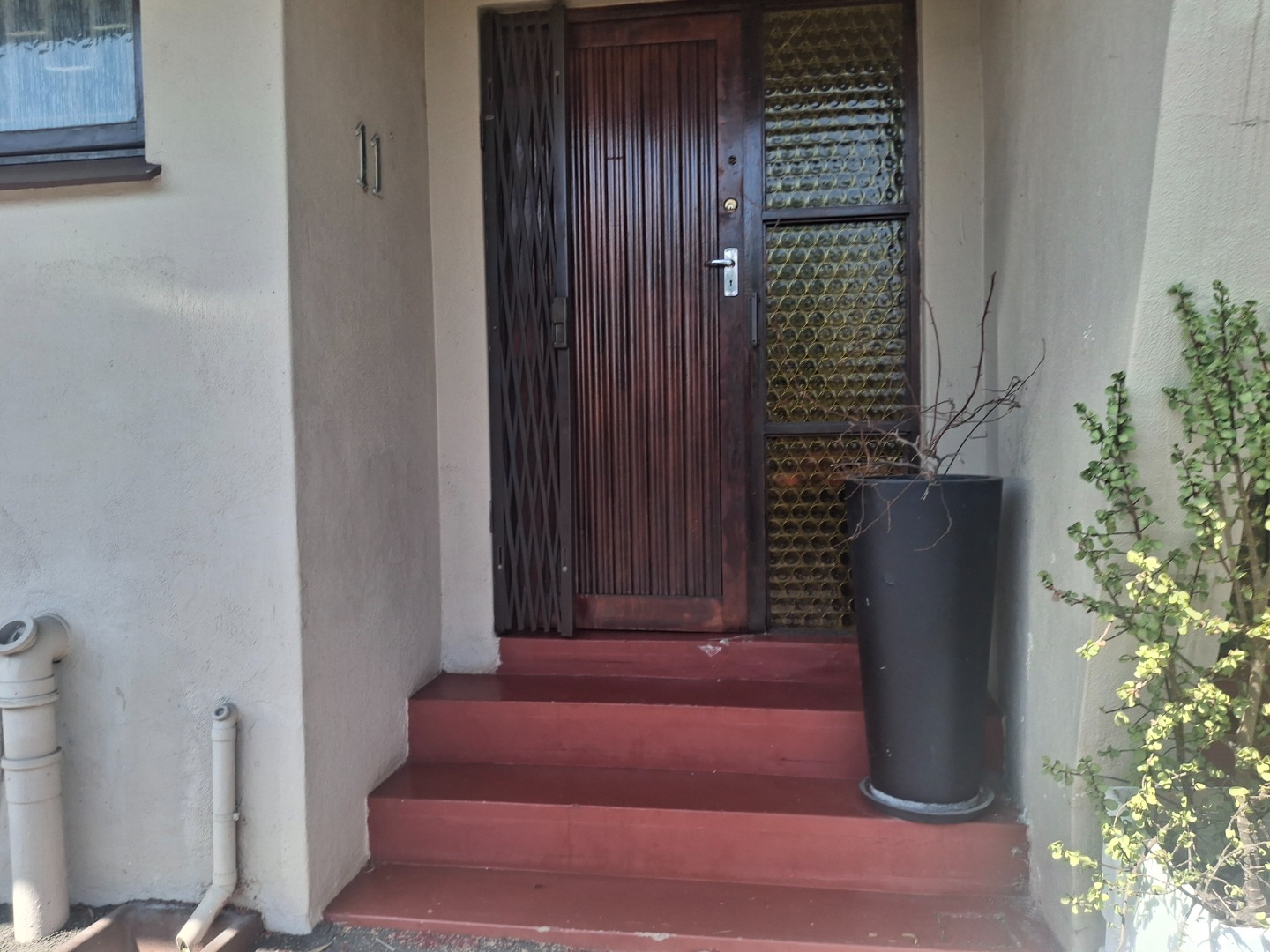 The lounge which has glassed sliding doors leads to a grassed patio which has high walls all round where one can enjoy some quiet time or braai. Pets are permitted.
