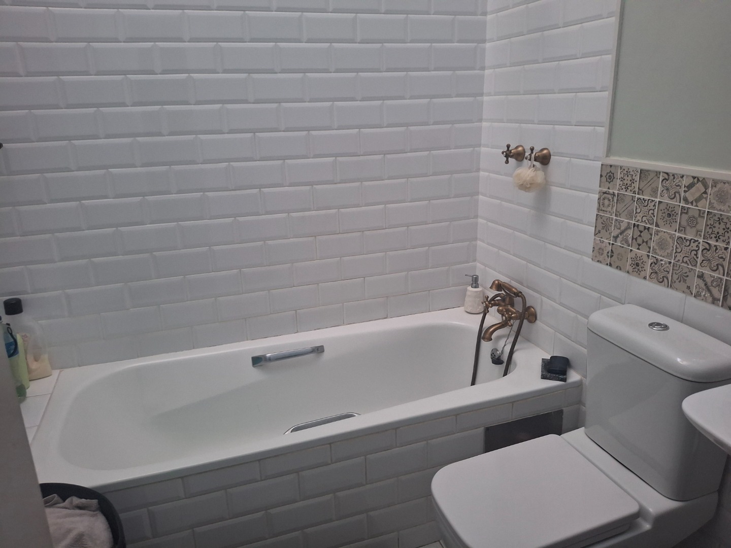 The 2 additional bedrooms are a good size with built in cupboards . The family bathroom comes fitted with bath, hand shower, toilet, basin.