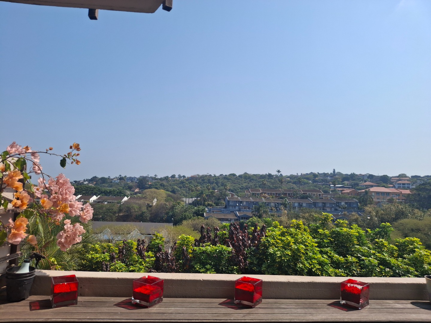 On entering the apartment there are a few steps leading into the spacious open plan lounge, dining room, and fully fitted kitchen which has a fitted oven and hob, plumbing for dishwasher with a small separate section where laundry can be done. The dining room is also a lovely patio with amazing westerly views looking towards Durban North.
