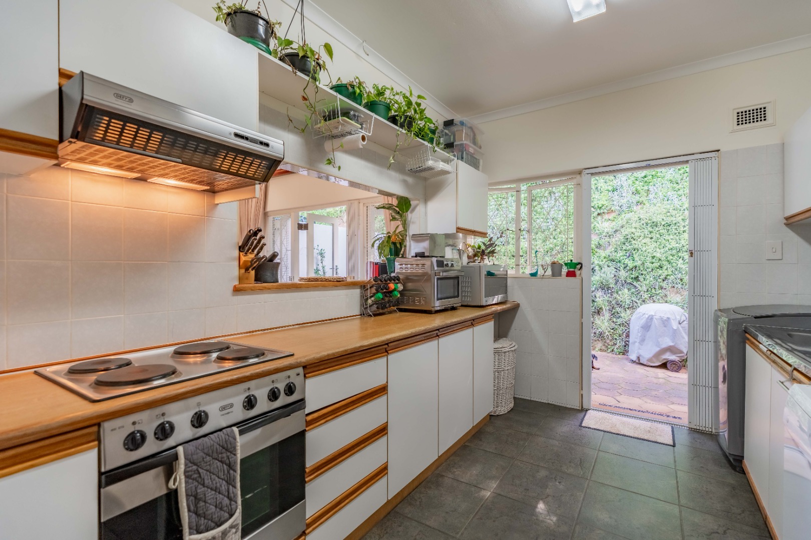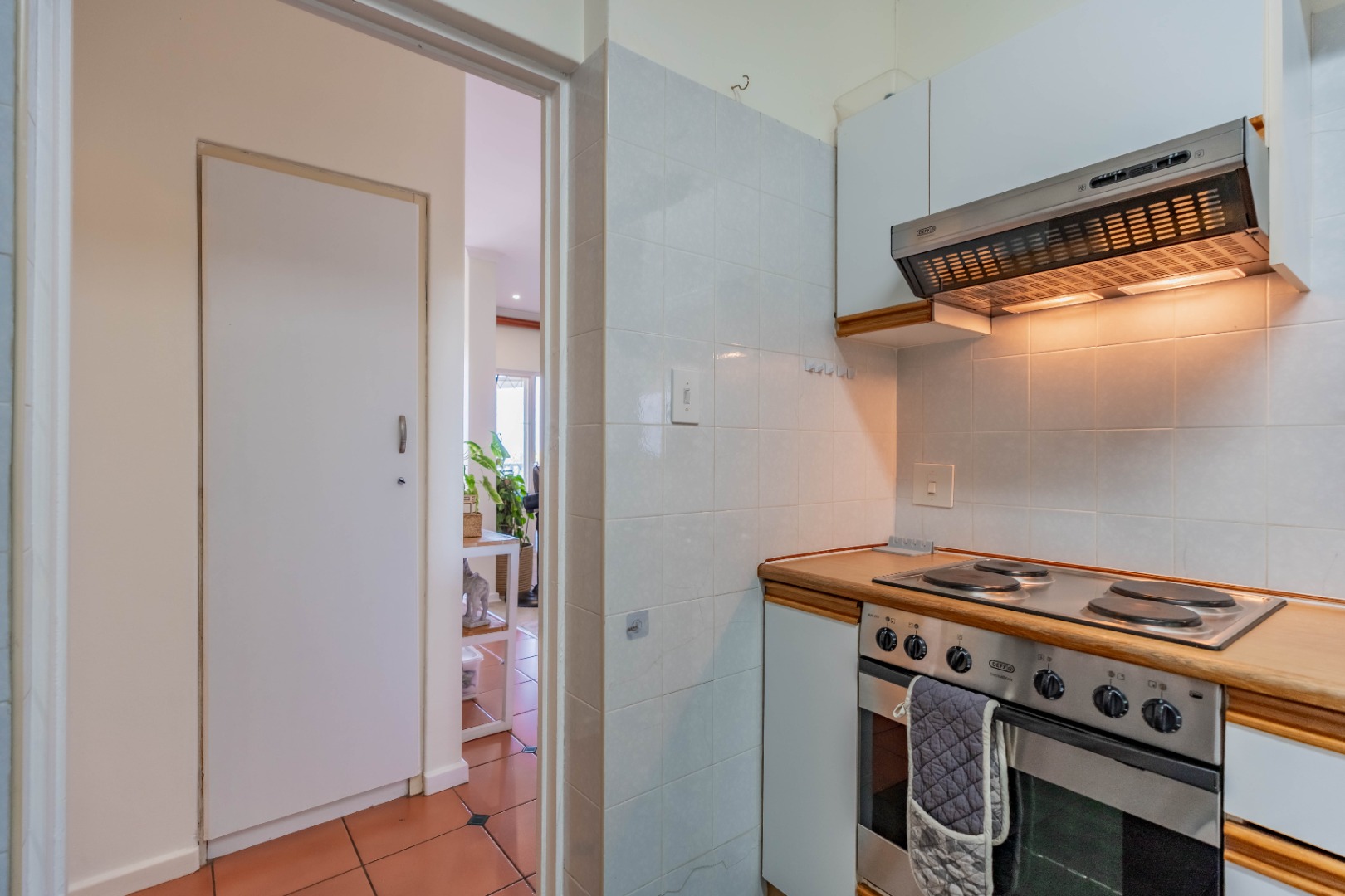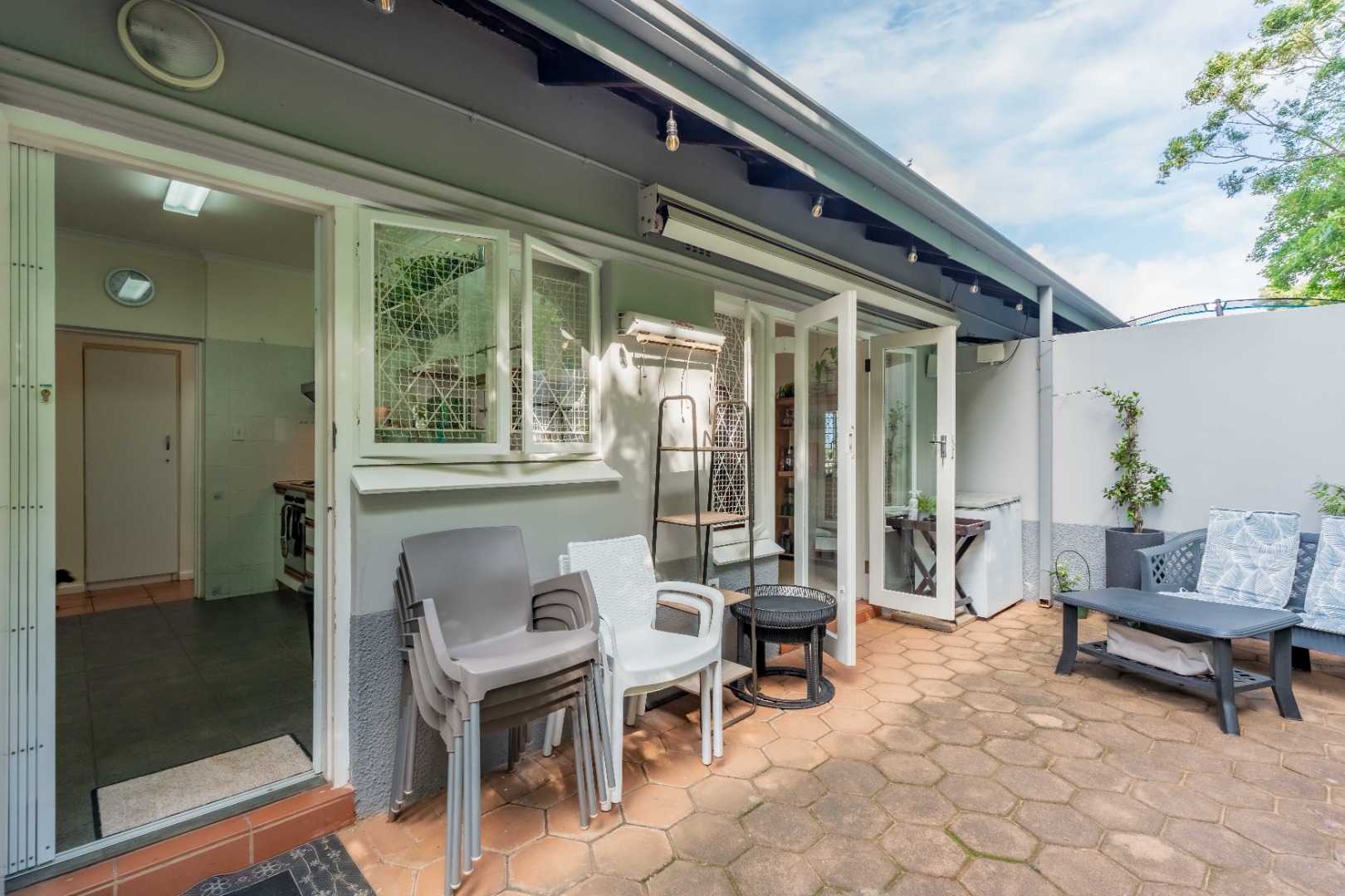 The unit has 3 large bedrooms and 2 bathrooms (MES). It has a fully fitted kitchen with an open serving hatch to the dining room and doors that open onto a back courtyard.
