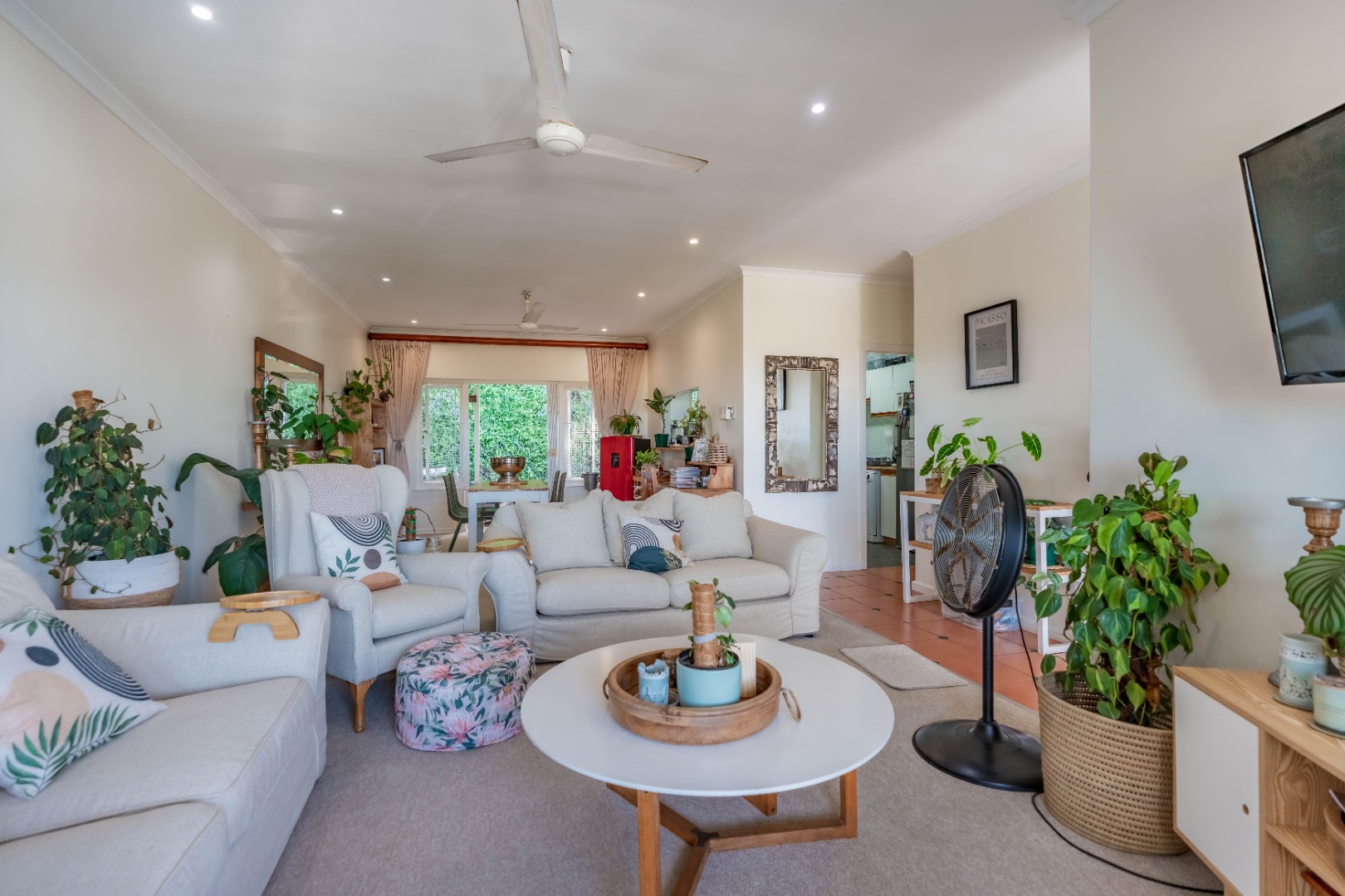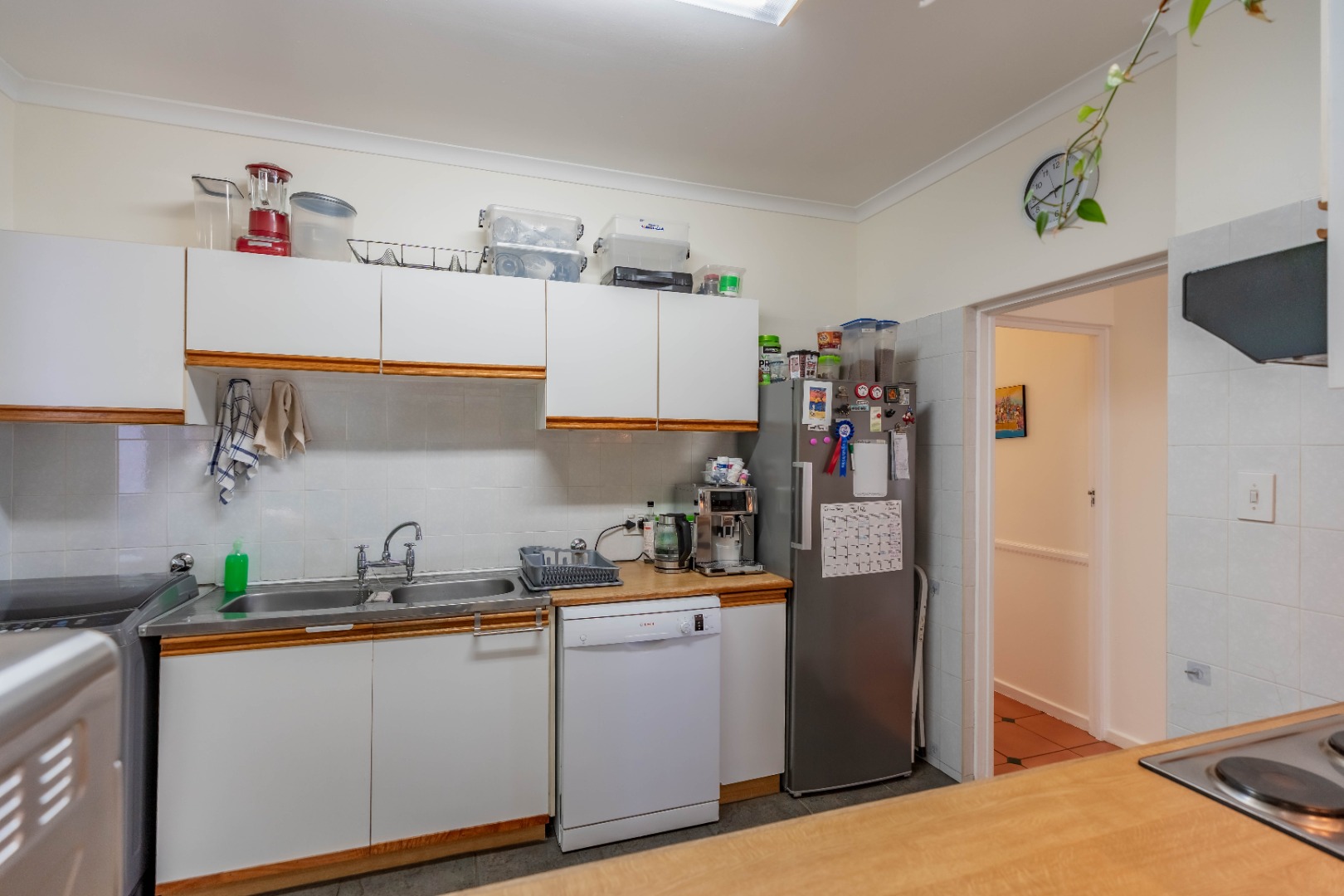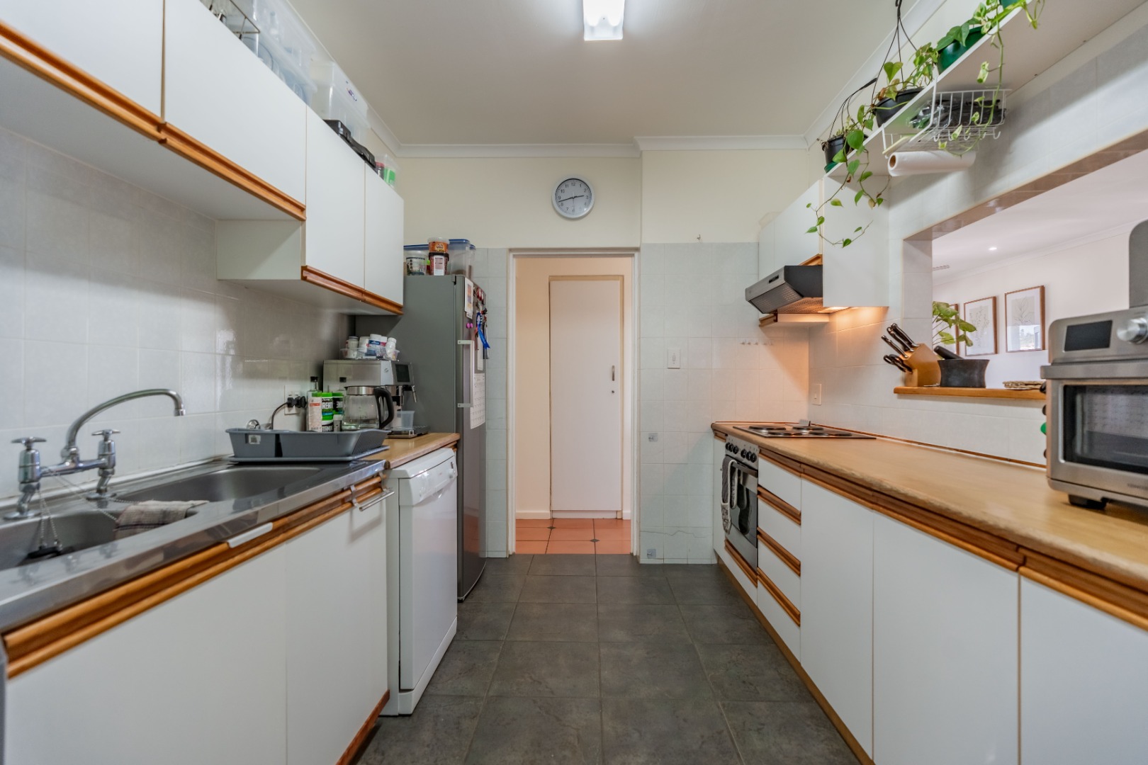 The unit has 3 large bedrooms and 2 bathrooms (MES). It has a fully fitted kitchen with an open serving hatch to the dining room and doors that open onto a back courtyard.