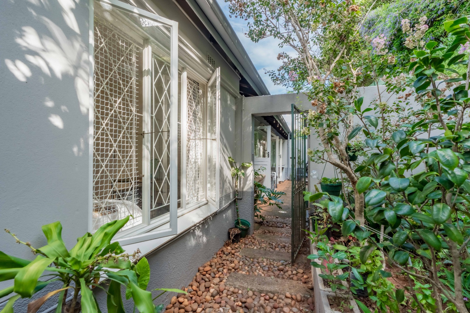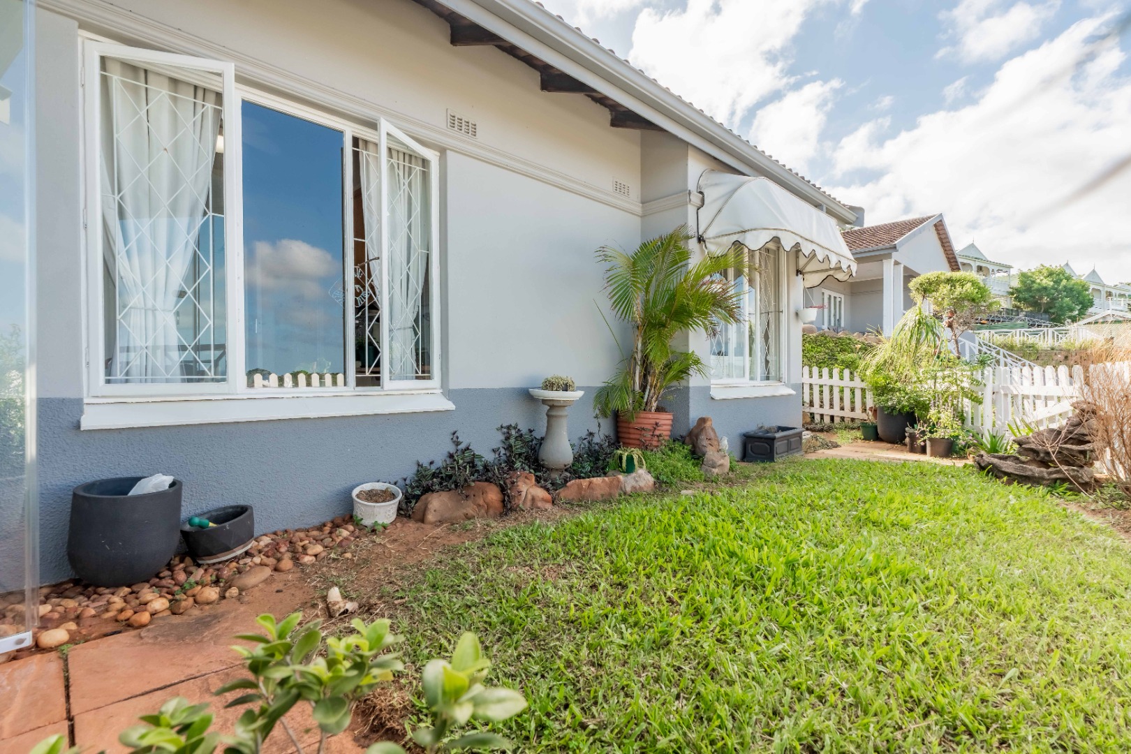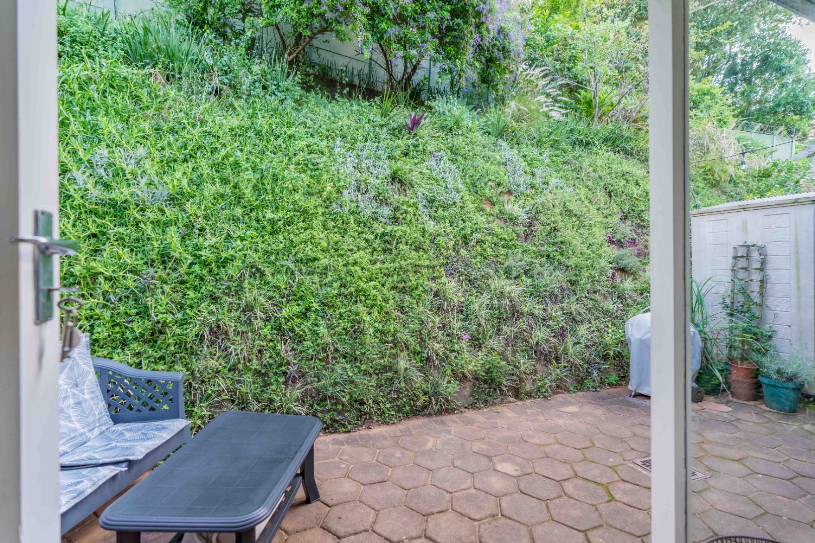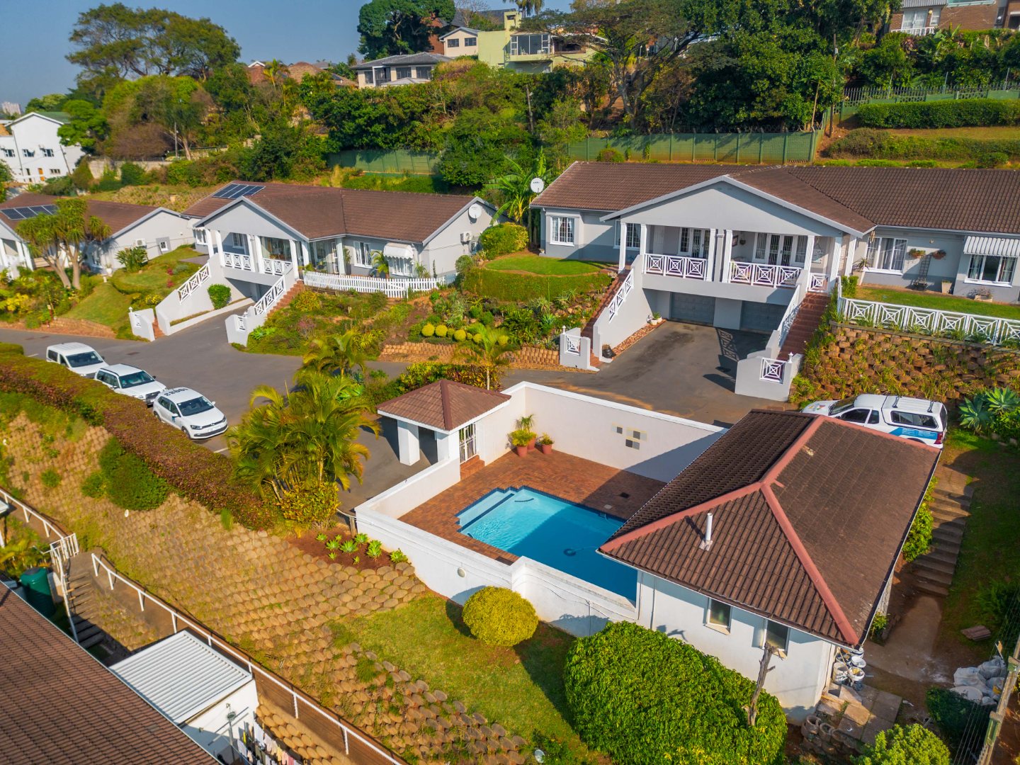 There is a lovely private garden, pool in the complex, a single garage and parking bay, lots of extra visitors parking and good security.