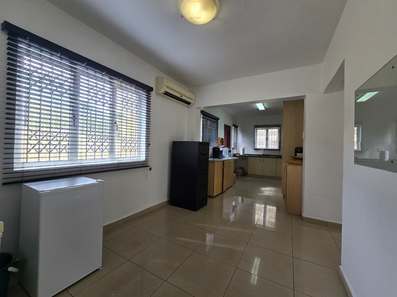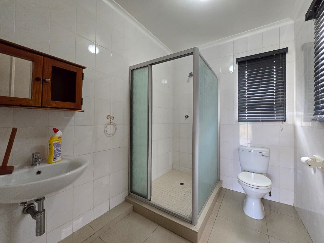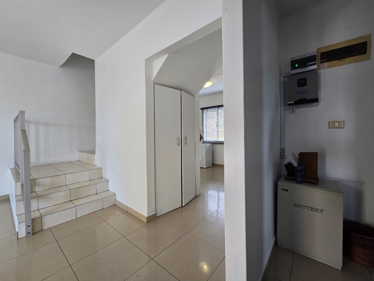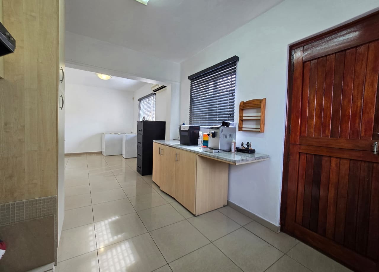 Step inside this 135 sqm home to discover a well-maintained interior featuring clean, light-colored tiled flooring and neutral white walls throughout. The open-plan design seamlessly connects the lounge and dining areas, creating a versatile living space. The functional kitchen boasts ample light wood cabinetry, dark countertops, and a tiled backsplash, providing generous storage and preparation space. Multiple air conditioning units ensure comfort, while a battery inverter offers energy resilience.