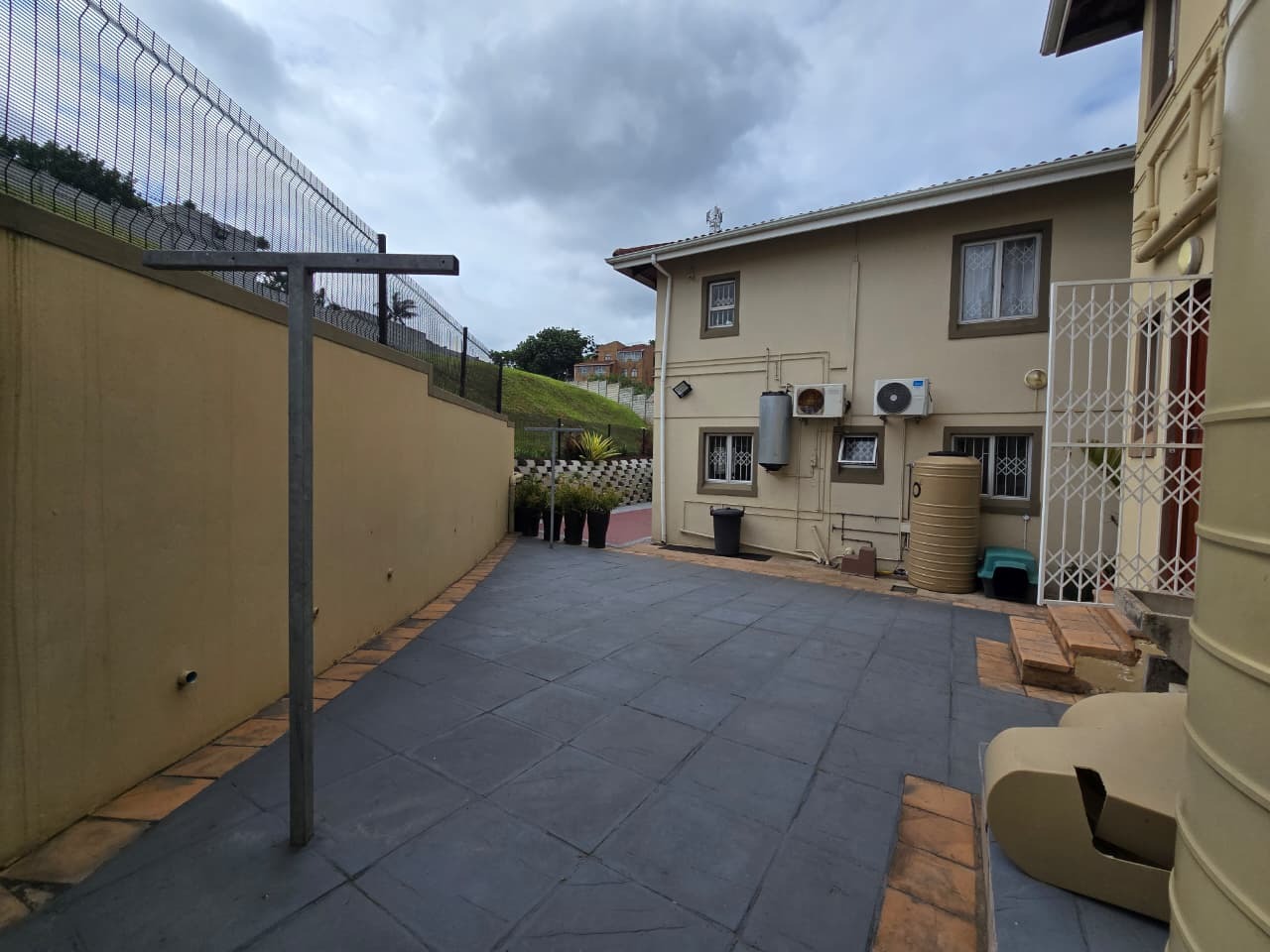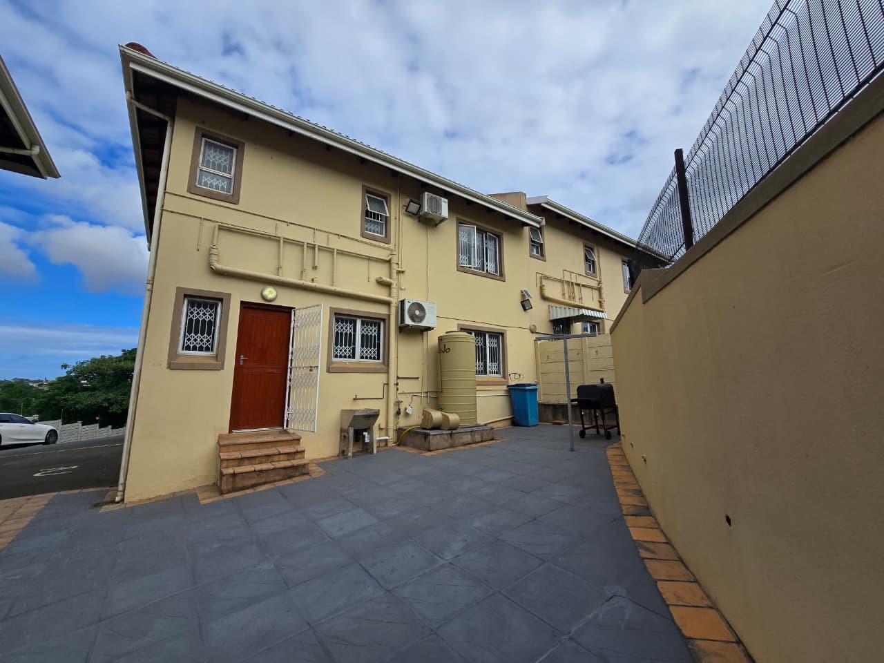 Located in the suburban area of Avoca, Durban, this two-story residence offers a convenient location within a well-established complex. The property presents a practical exterior with a paved driveway, access gate, and electric fencing, ensuring enhanced security and a neutral facade.