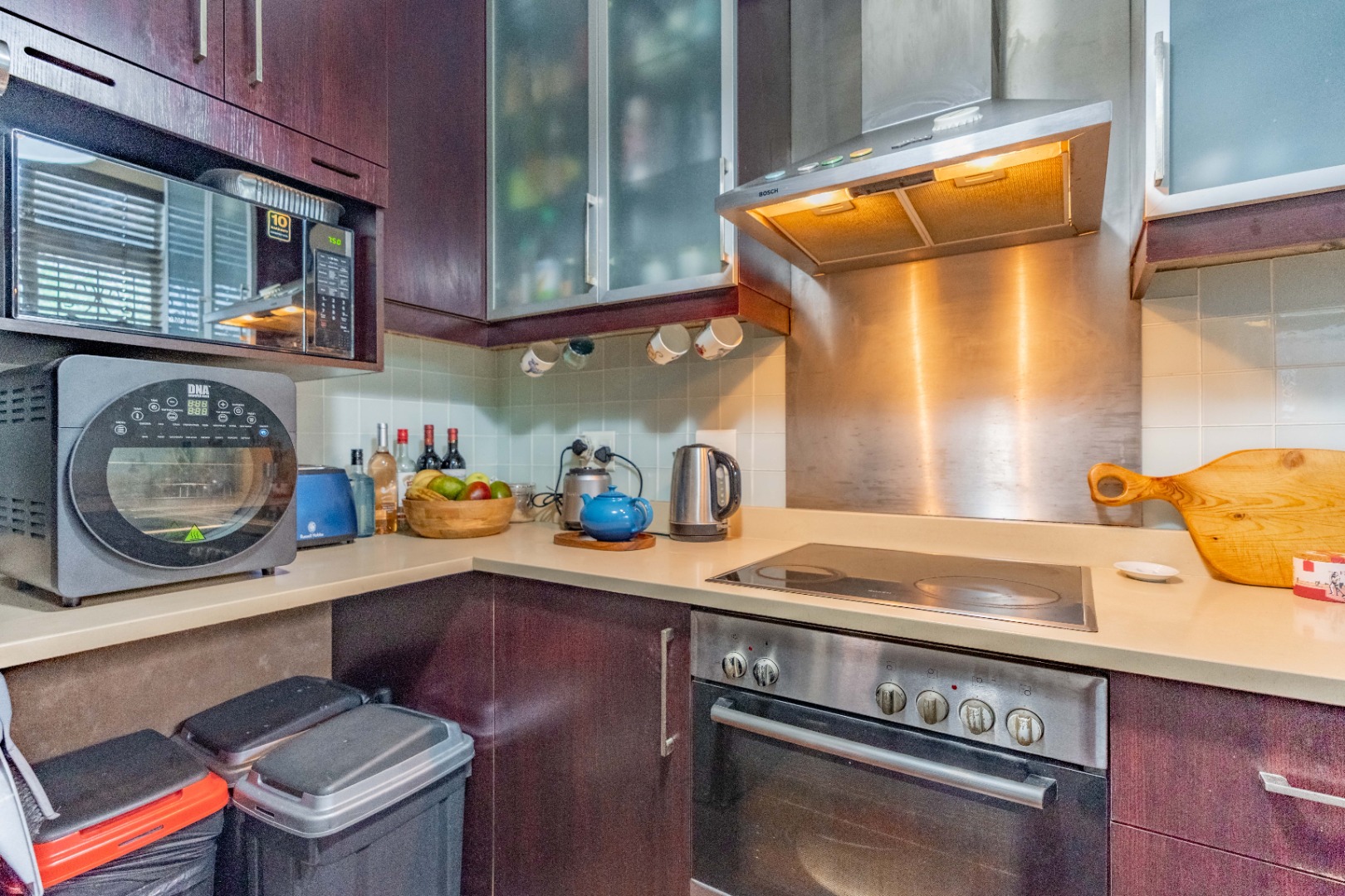 Extra features include a secure garage with space for an additional small car on the premises, a separate storage unit, air-conditioning and ceiling fan in the living area, fibre connectivity, water included in the levies, and secure access via the foyer.