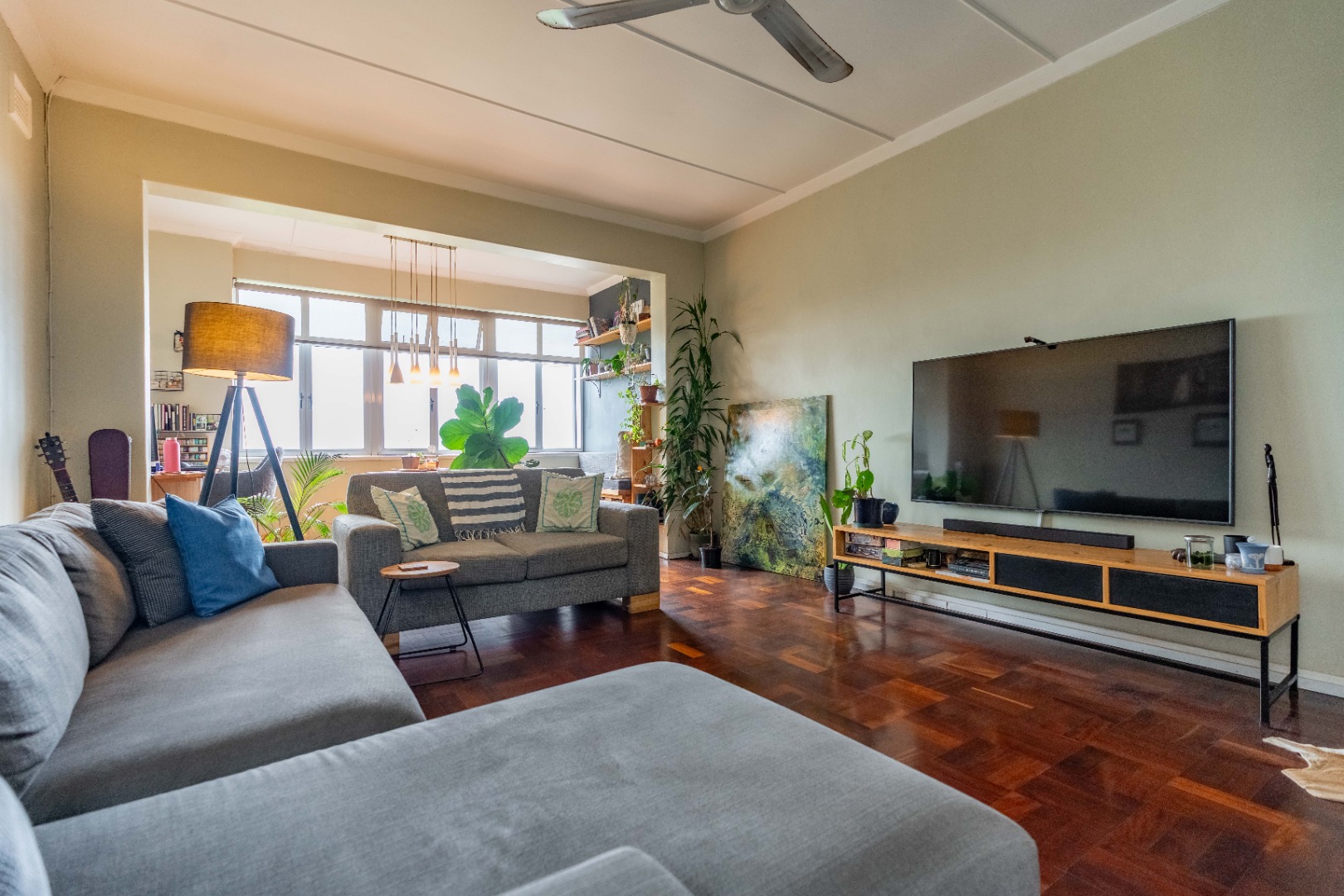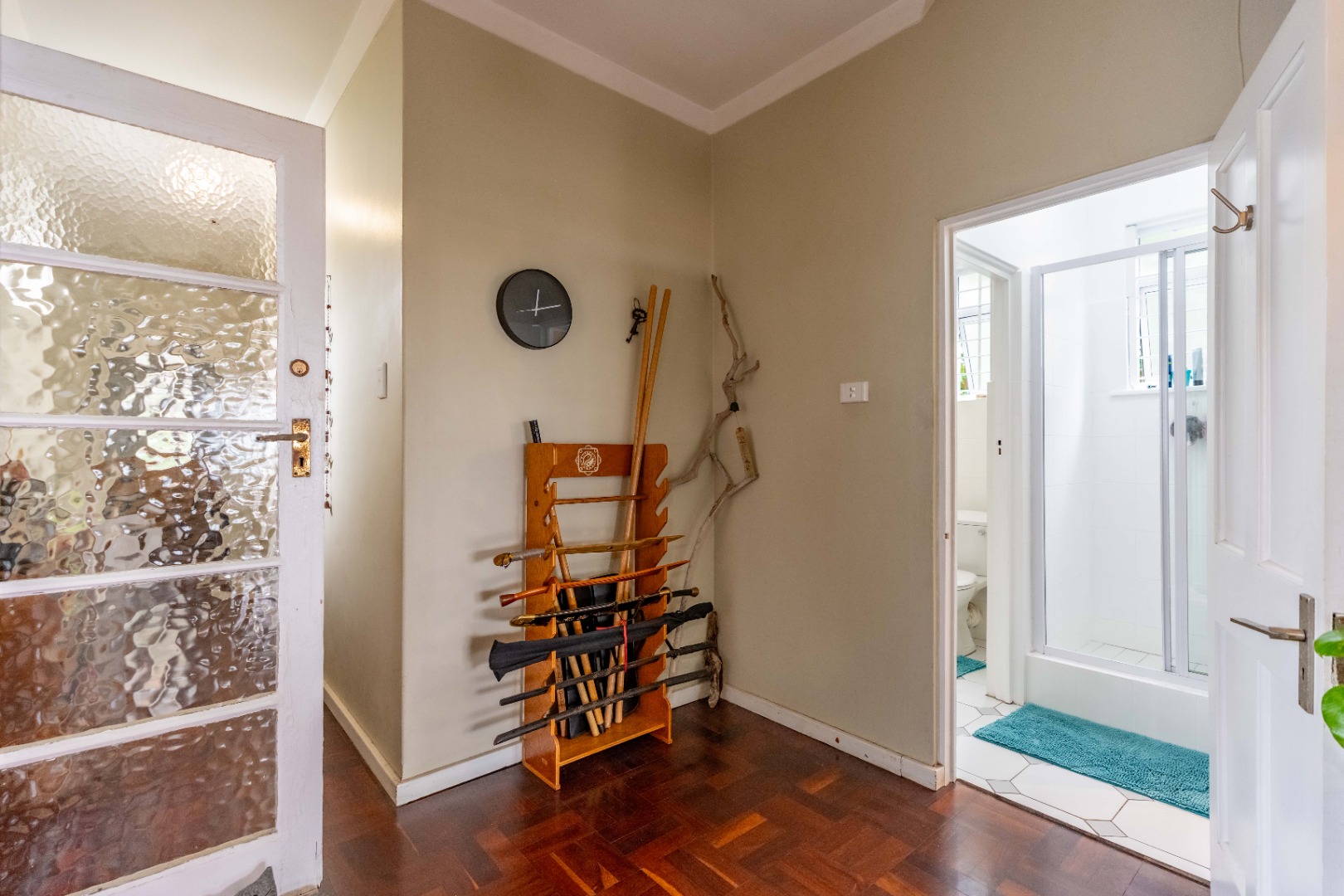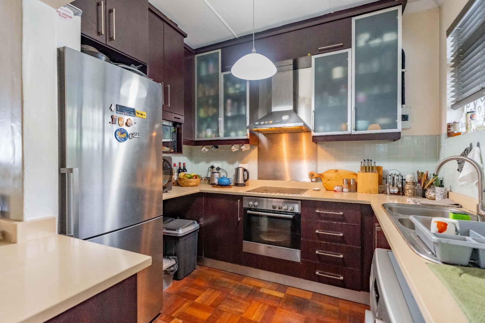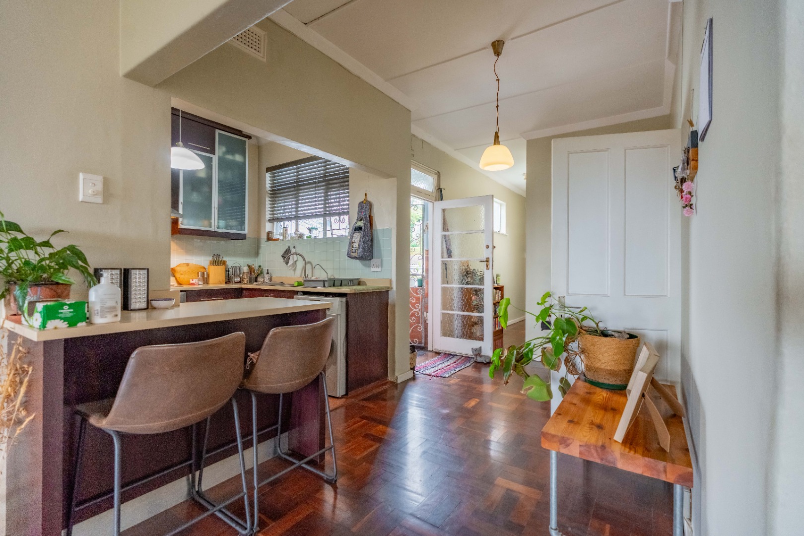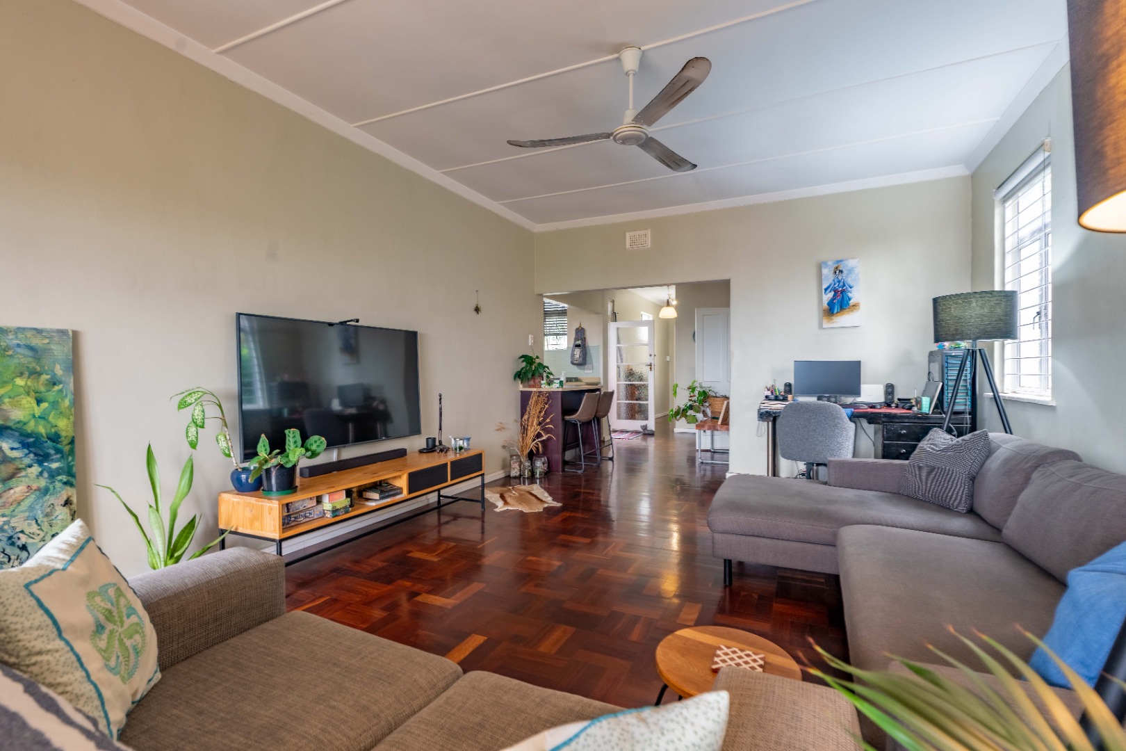 Inside, you’ll find warm parquet flooring and a light-filled open-plan lounge and dining area. A standout feature is the custom-fitted window seat, offering stunning views of the Berea and harbour—a tranquil spot to unwind that also doubles as a sleeper couch. Tucked alongside is a compact study nook, perfect for remote work or quiet reading, all secured with well-fitted burglar guards for added safety.