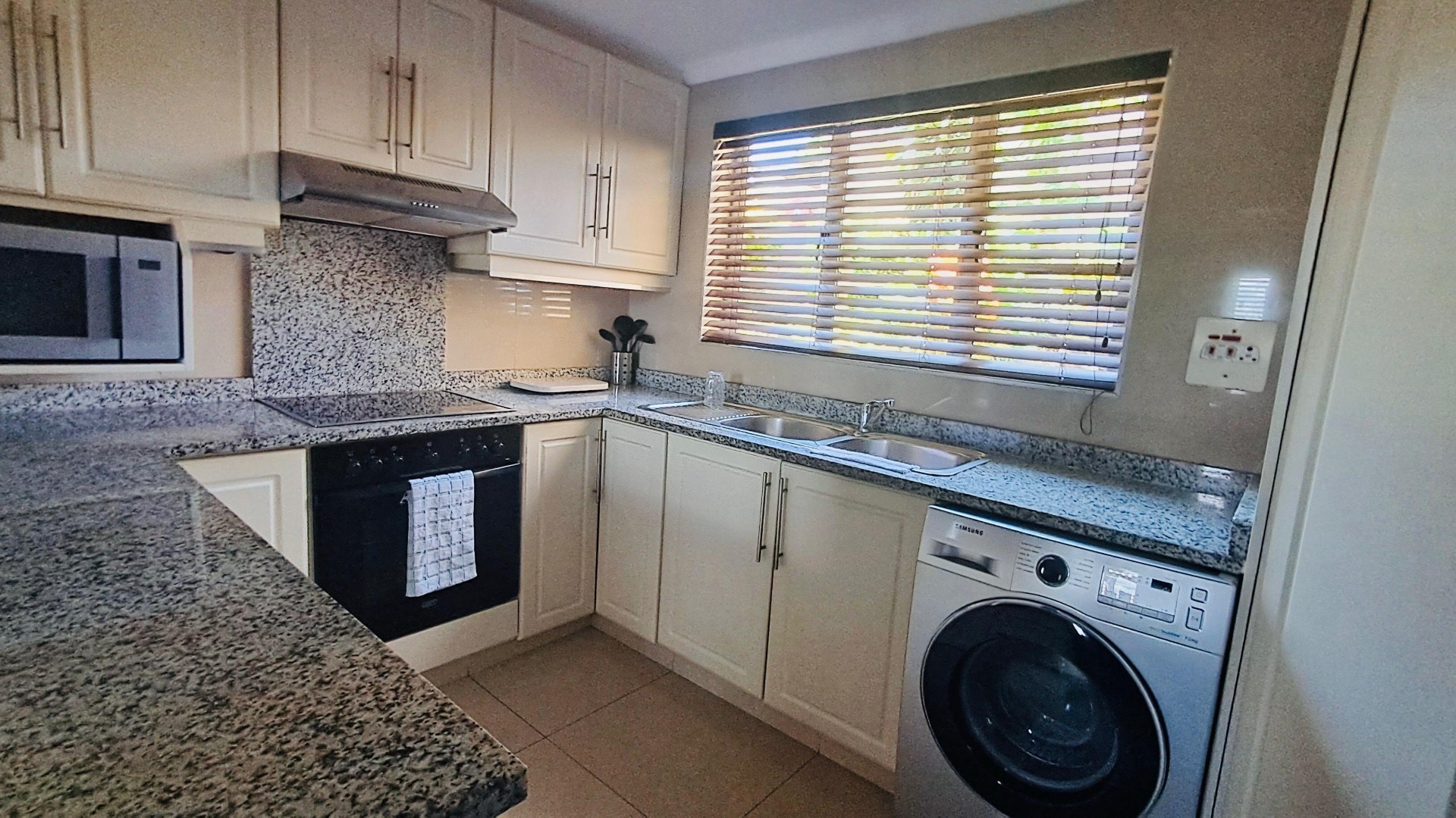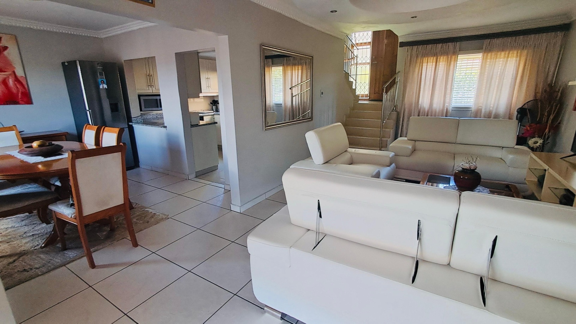 Step inside to an expansive, open-plan living area bathed in natural light, flowing seamlessly into a fabulous, contemporary kitchen equipped with premium fixtures, sleek countertops, and ample storage—ideal for both everyday meals and entertaining guests. The fully tiled floors throughout add a touch of elegance and easy maintenance.