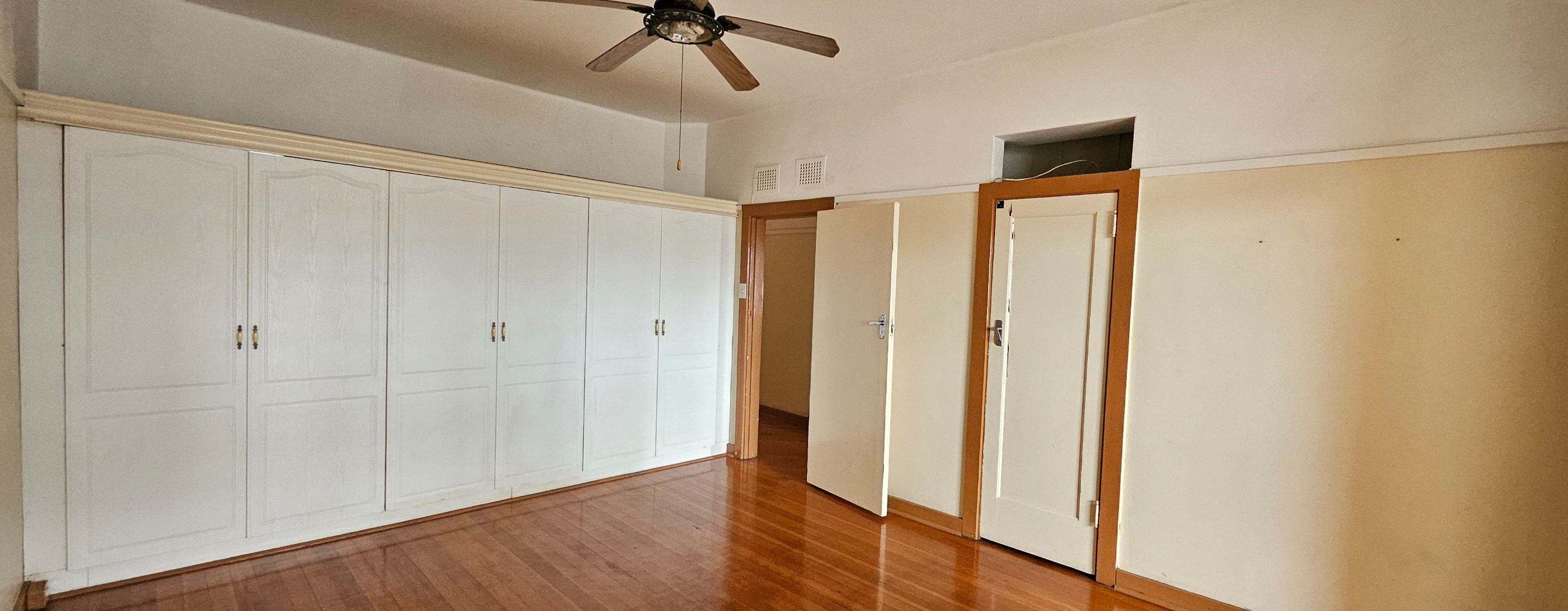 Accommodation includes one generously sized bedroom, designed for comfort and functionality. This space features large windows that invite abundant light, extensive built-in wardrobes offering practical storage solutions, and a ceiling fan for added comfort. The bedroom also provides direct access to a private balcony, where residents can enjoy expansive harbour and bay views. The apartment further benefits from two well-placed bathrooms, one of which includes a built-in, tiled bathtub.