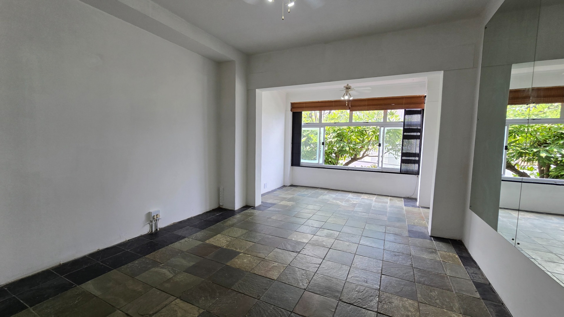 Inside, the unit features an open-plan layout encompassing a spacious lounge, dining area, and a functional kitchen, all benefiting from ample natural light through large slider door windows with trellie door security gates. The living space is enhanced by a prominent mirrored wall, creating an expansive feel, and includes 2 ceiling fans for comfort. While the slate-look tile flooring and kitchen cabinetry offer a classic aesthetic, they also present an excellent opportunity for modern updates to personalise the space.