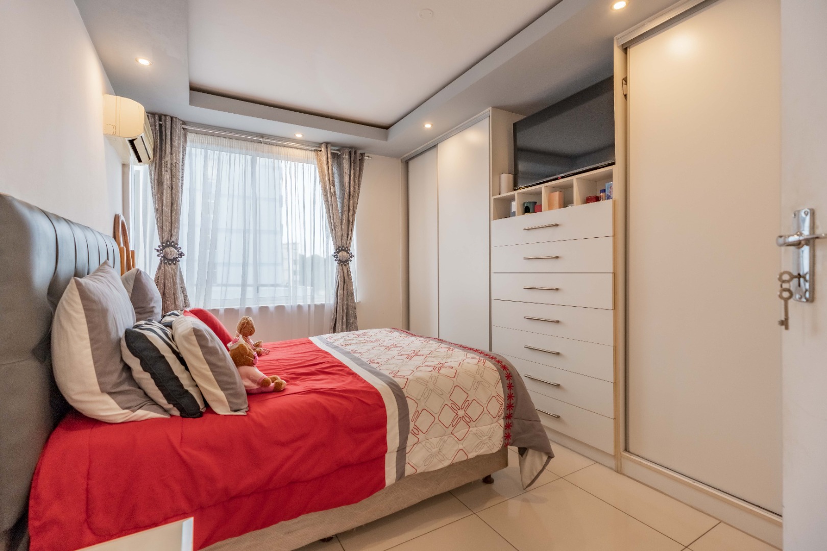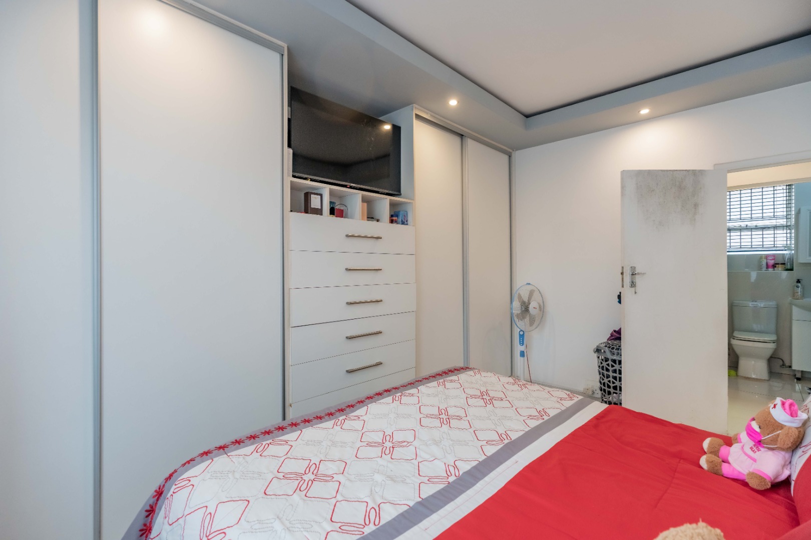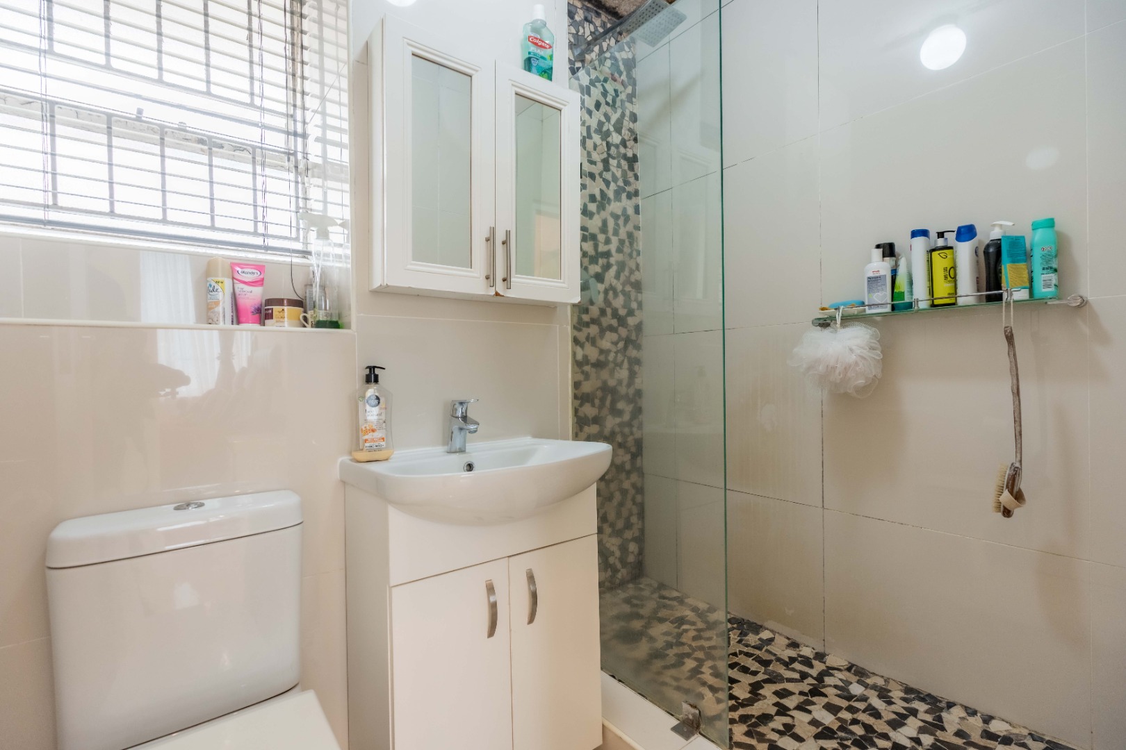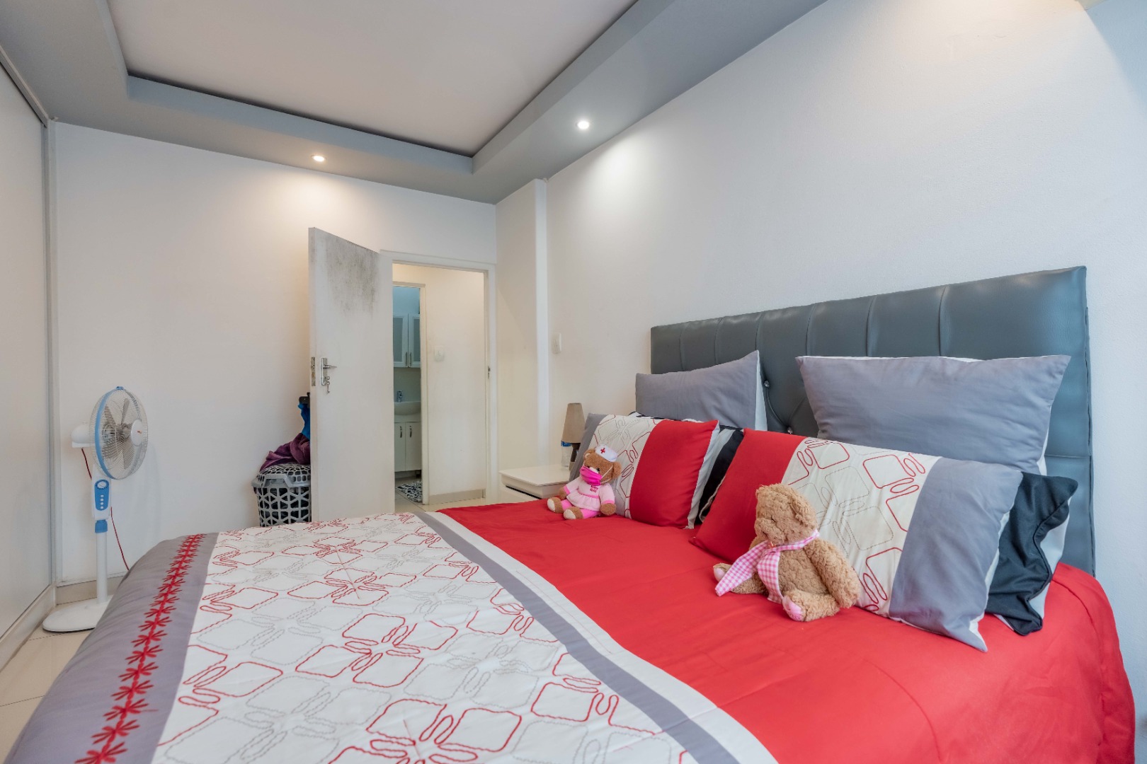 Two allocated parking bays. One being an open bay parking and one being an undercover parking. The block has a night security guard, security gate access and electric fencing. The communal gardens are meticulously maintained. The property is just a stone's throw away from all essential amenities.