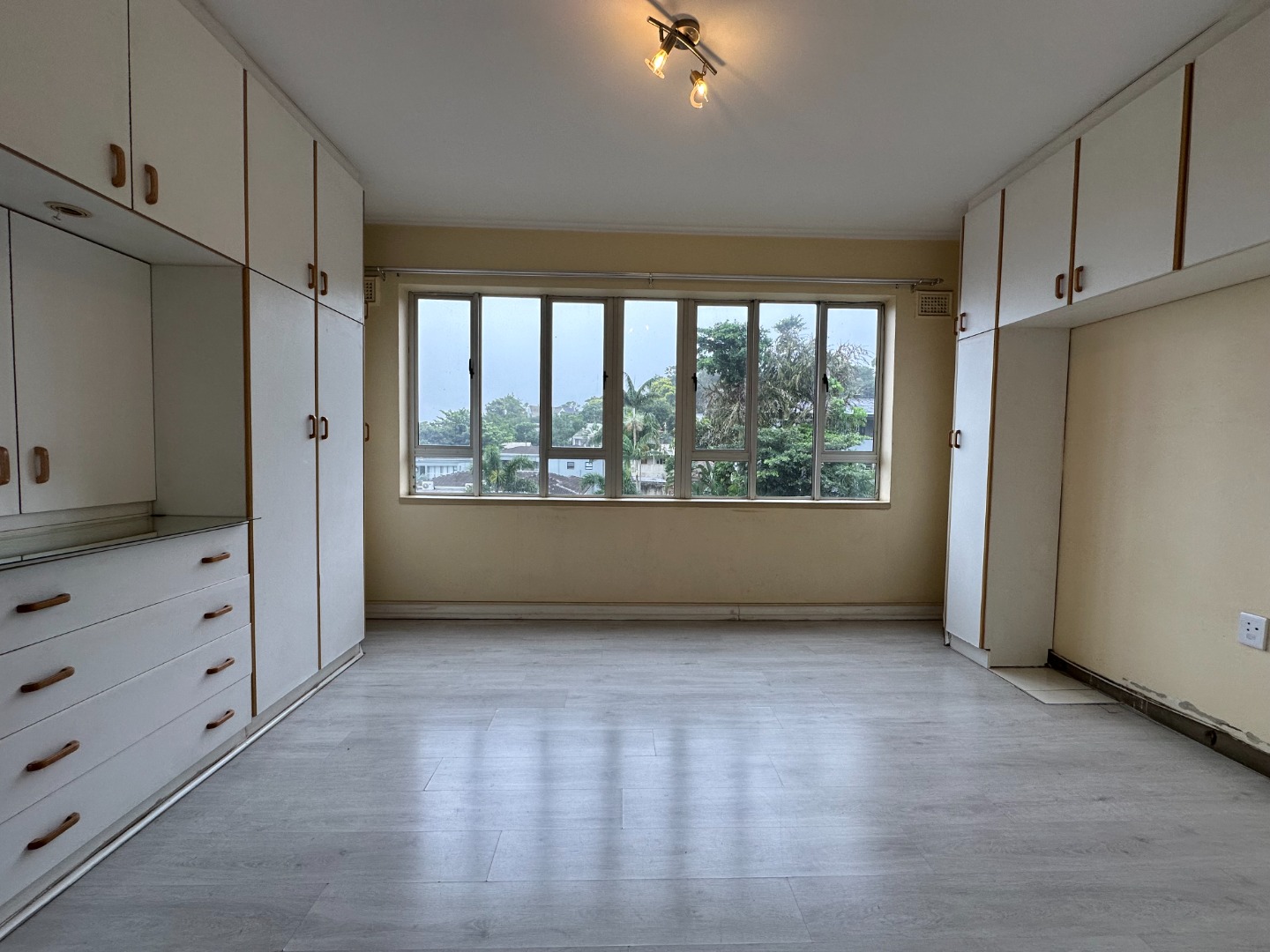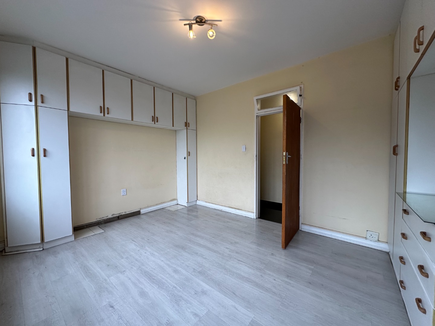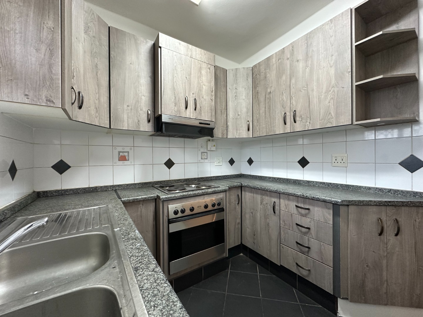 This stunning unit is fully tiled throughout, with high-quality vinyl wooden flooring in the main bedroom. It offers ample cupboard space and features a separate half bedroom. The granite kitchen boasts excellent cupboard space, an oven, and a hob, seamlessly flowing into the open-plan lounge and dining area, which leads to the half bedroom. The bathroom is equipped with a shower. The unit is fitted with aluminum windows throughout, ensuring durability and modern appeal.