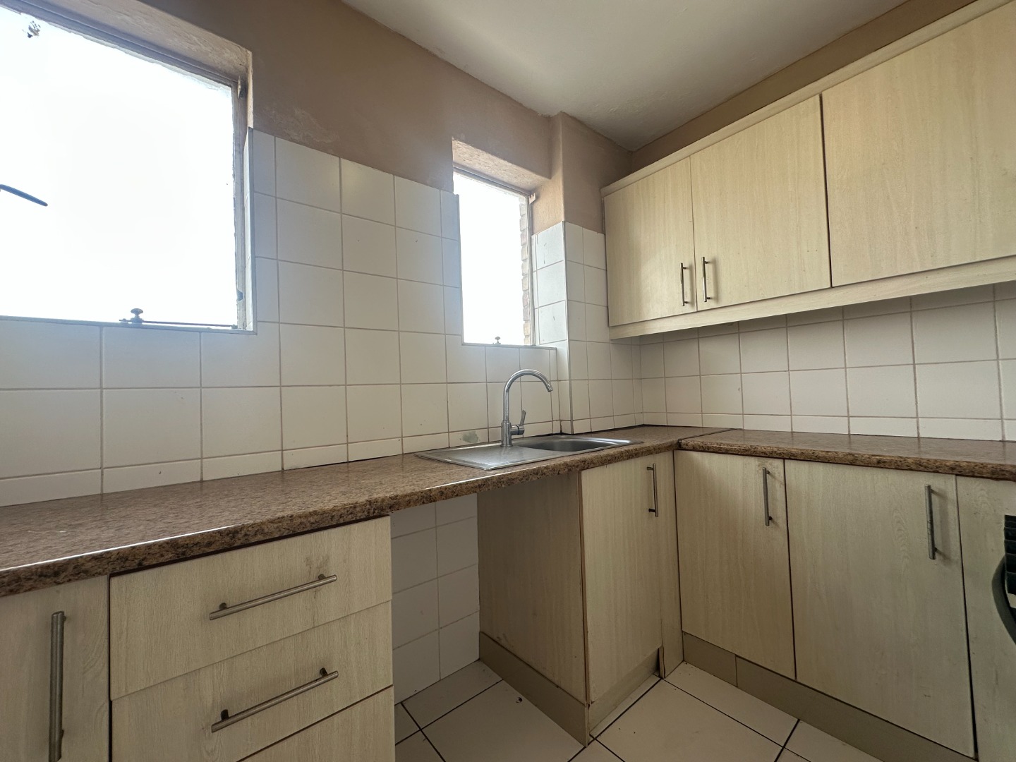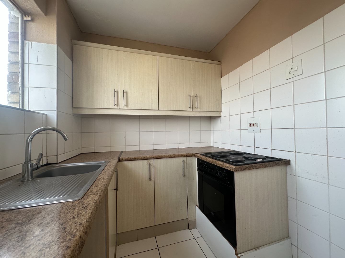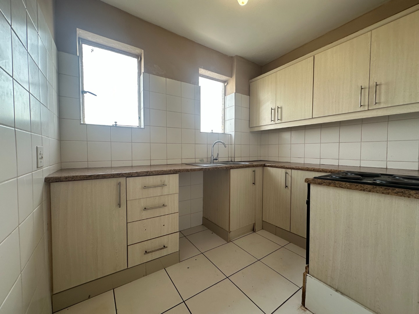 Step inside to a spacious, light-filled open-plan lounge and dining area, tiled throughout and fitted with a ceiling fan to keep the space cool and comfortable. The kitchen features a built-in oven and hob, along with generous cupboard space. The main bedroom includes built-in cupboards, while the enclosed balcony—accessed from the living area—can easily serve as a study or additional half bedroom. The bathroom is neatly appointed with a bath, basin, and toilet.
