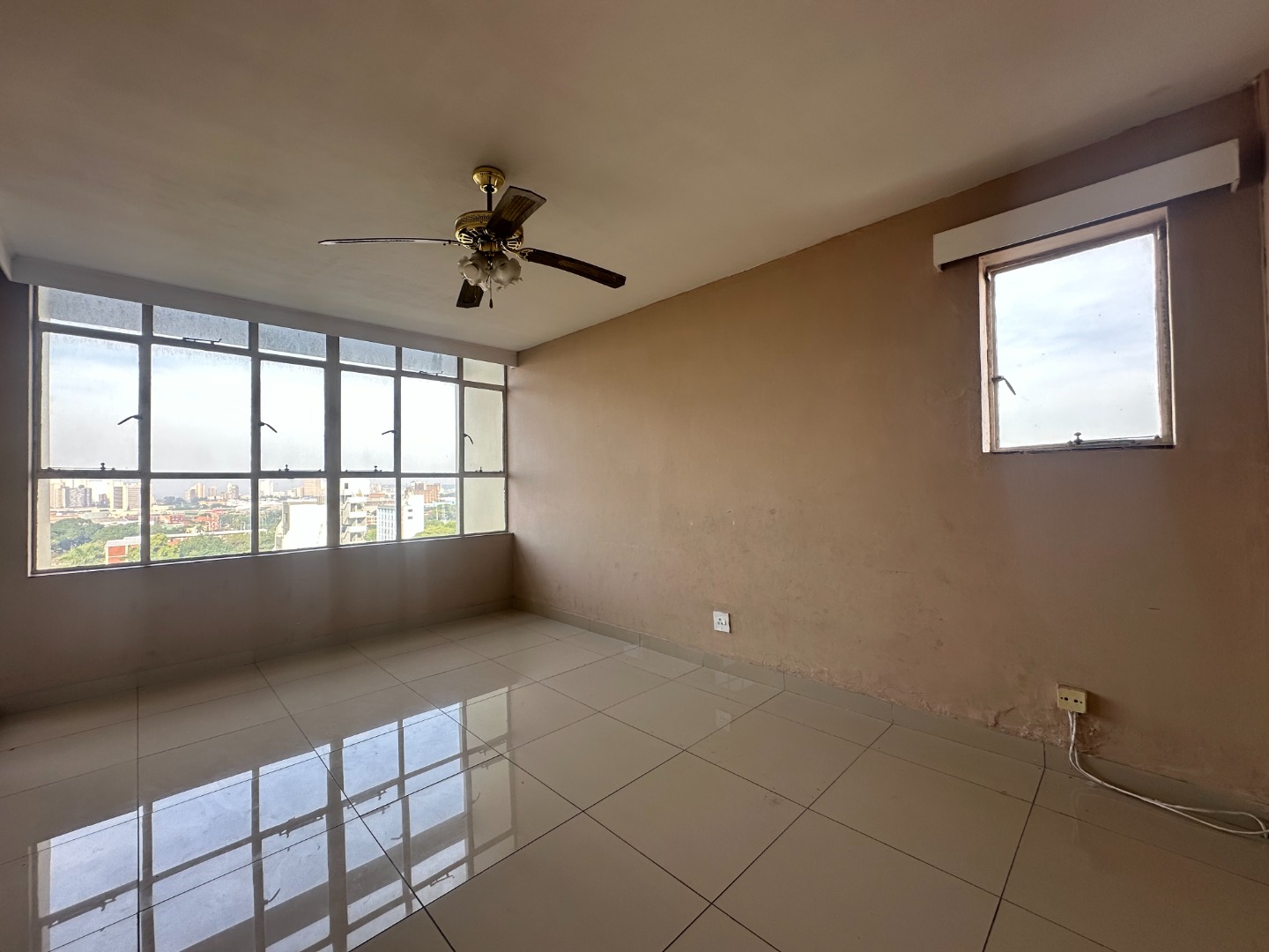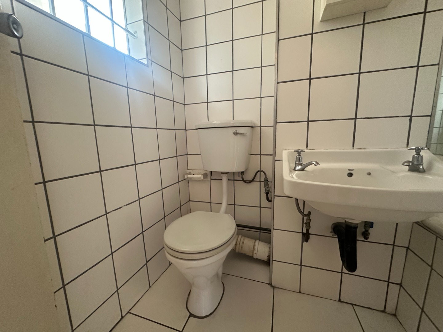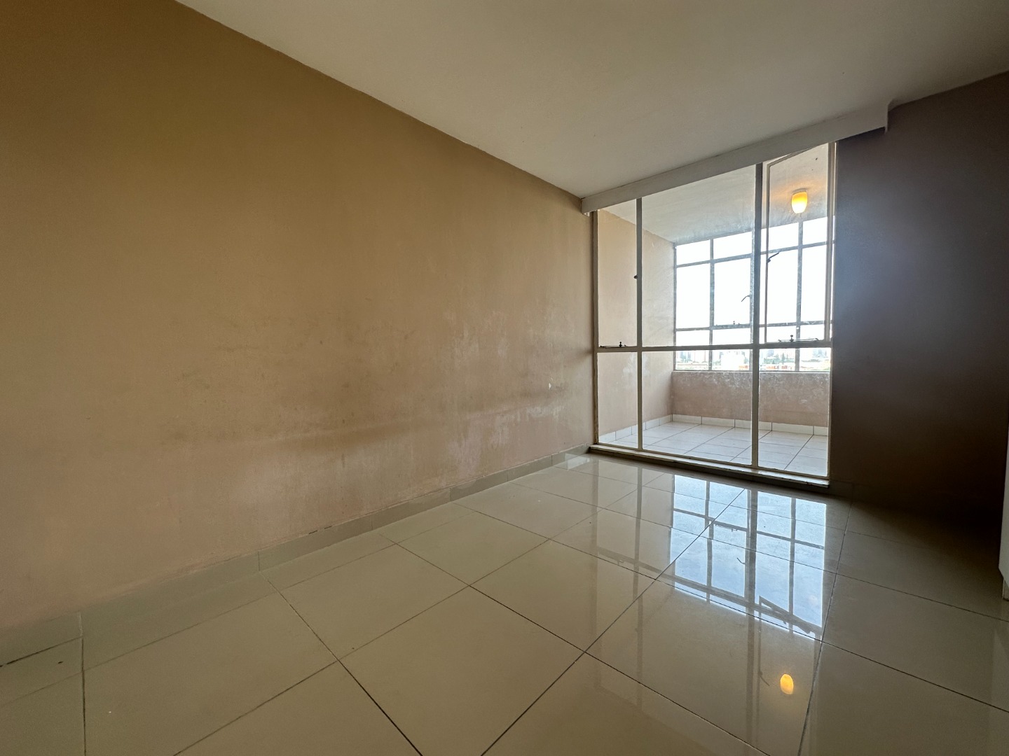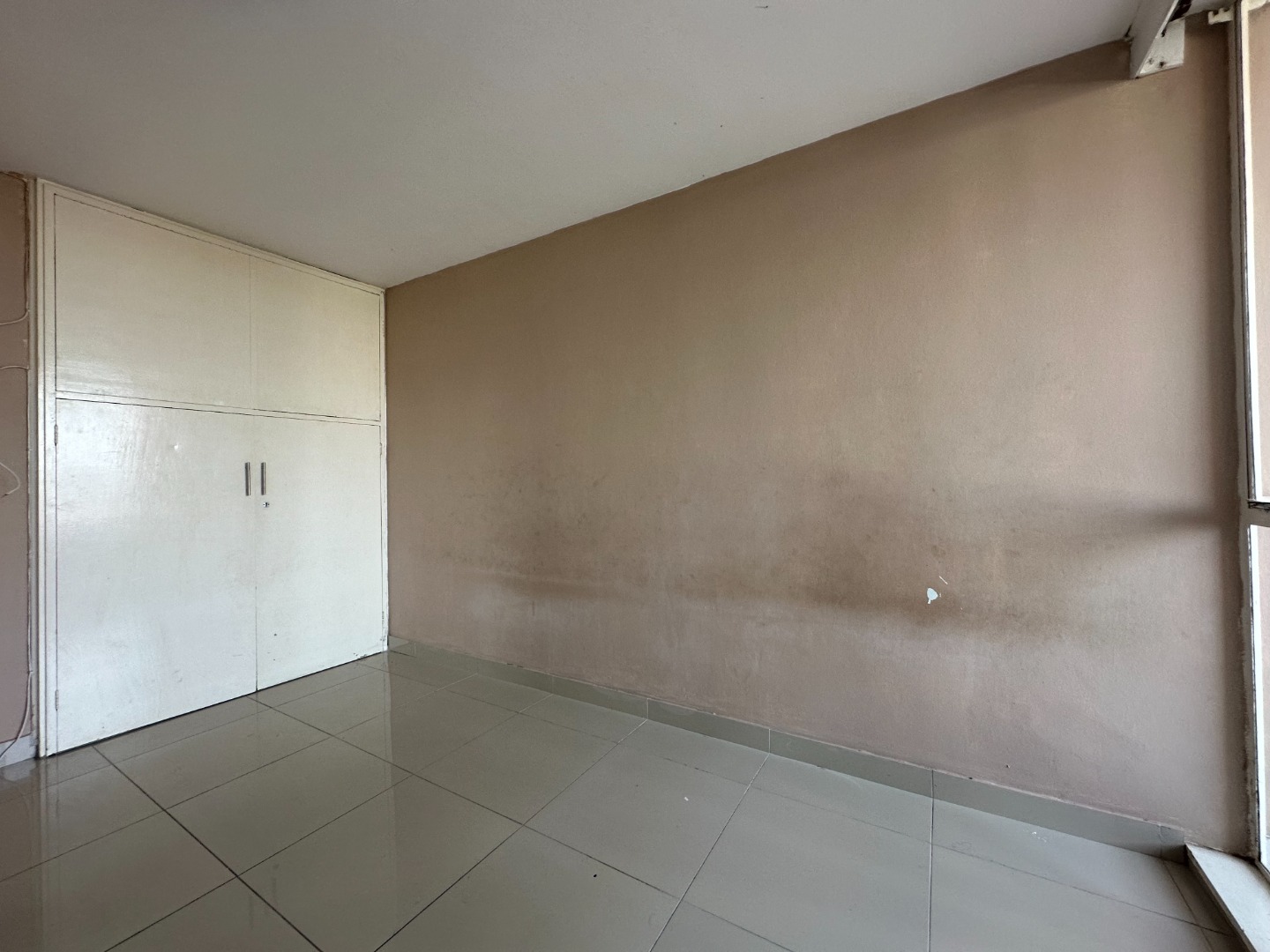 Step inside to a spacious, light-filled open-plan lounge and dining area, tiled throughout and fitted with a ceiling fan to keep the space cool and comfortable. The kitchen features a built-in oven and hob, along with generous cupboard space. The main bedroom includes built-in cupboards, while the enclosed balcony—accessed from the living area—can easily serve as a study or additional half bedroom. The bathroom is neatly appointed with a bath, basin, and toilet.