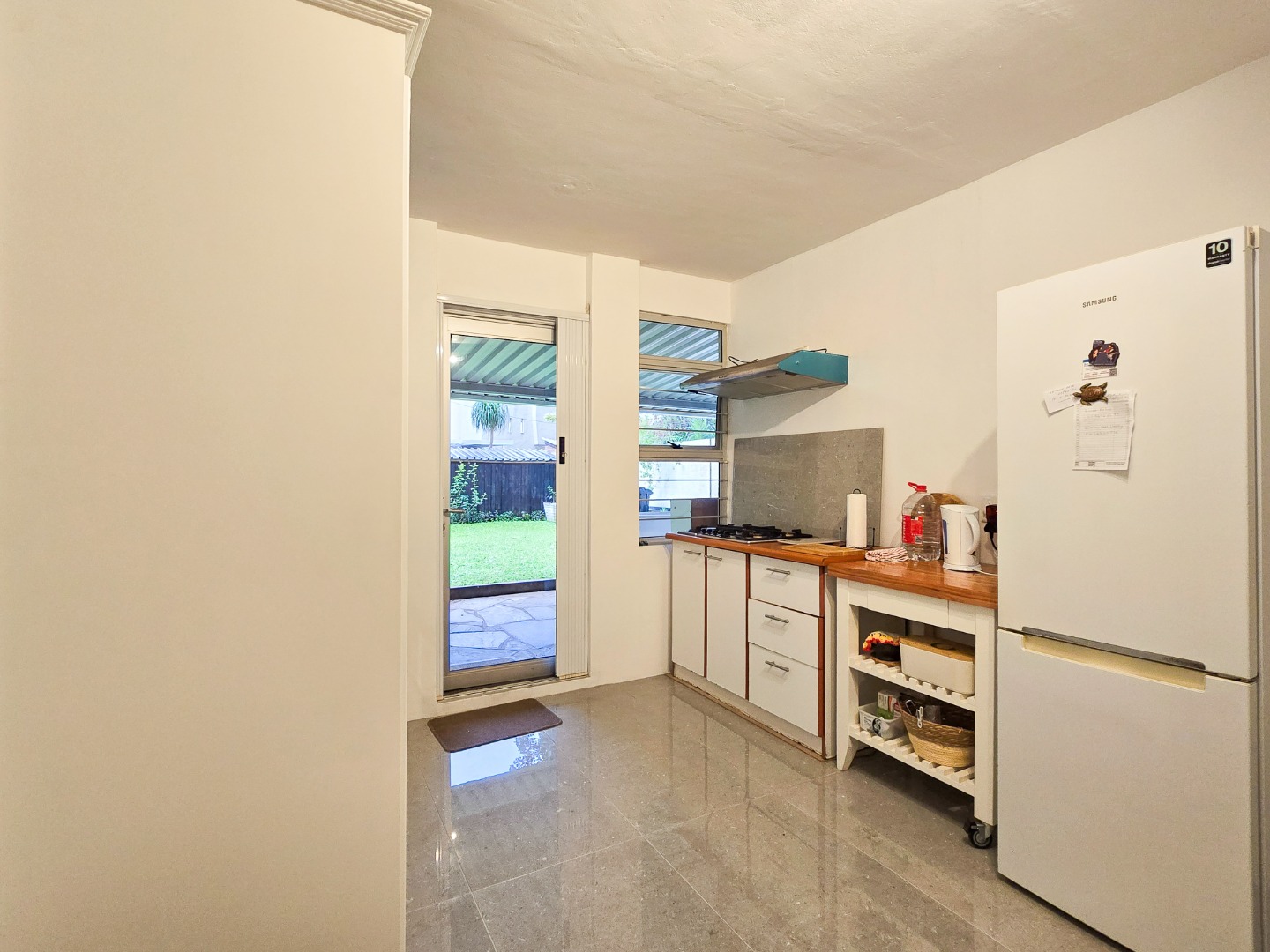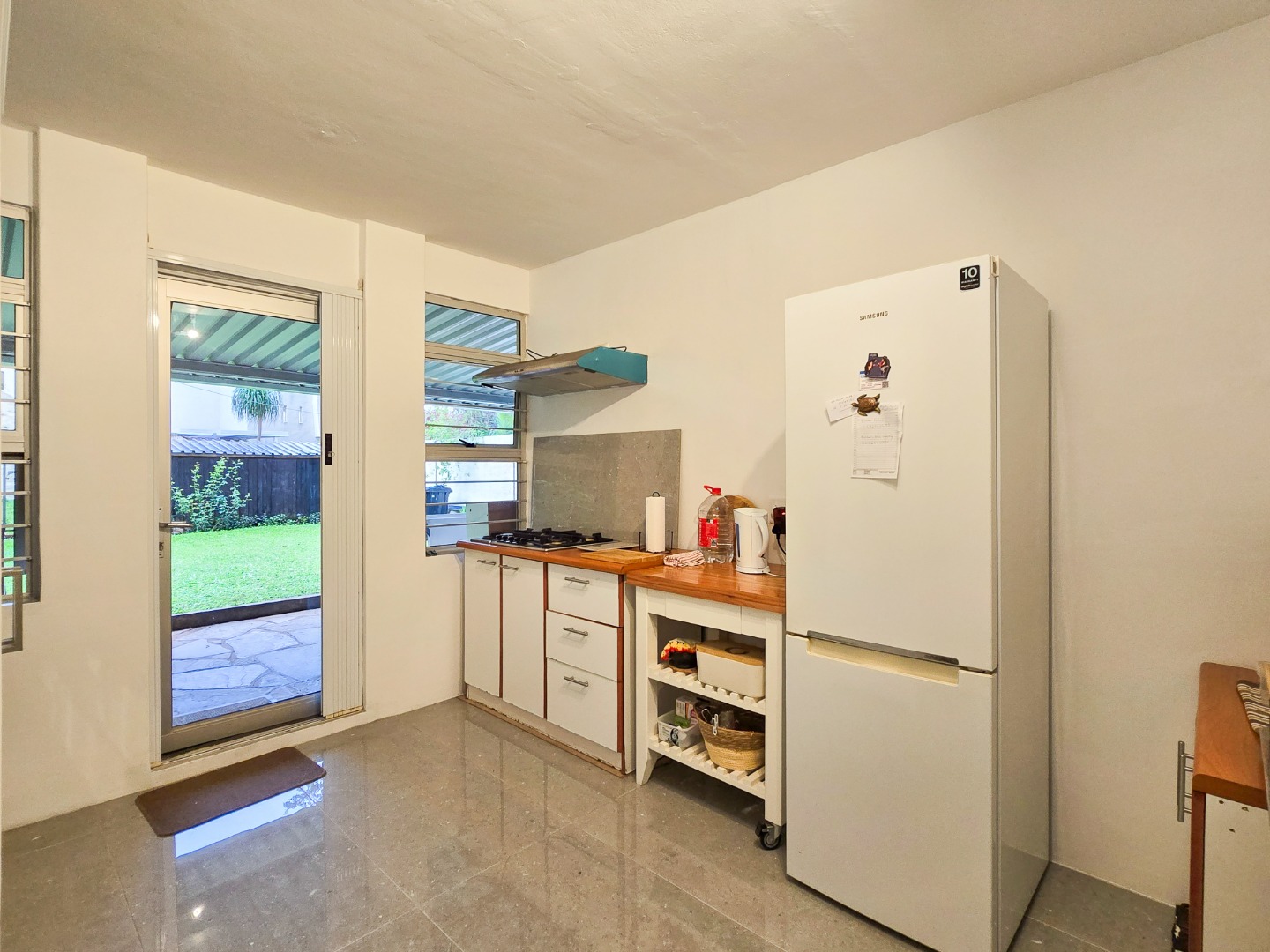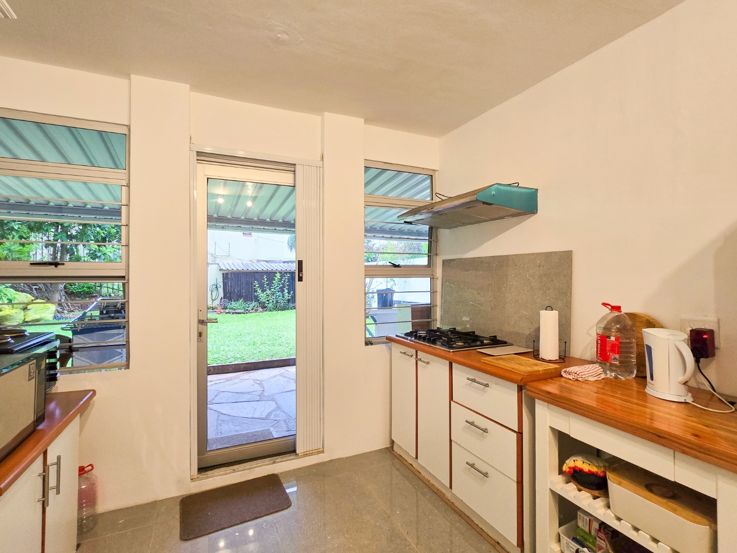 Welcome to this charming and well-maintained simplex apartment, ideally situated on Bellevue Road. The home features a bright and airy open-plan lounge and dining area, flooded with natural light and fitted with beautiful parquet flooring. The lounge is air-conditioned, offering comfort all year round. The kitchen has built-in cupboards, wooden countertops, a gas hob, and tiled flooring. It leads out to a semi-covered exclusive-use patio and garden area—perfect for entertaining guests or a safe play space for children.