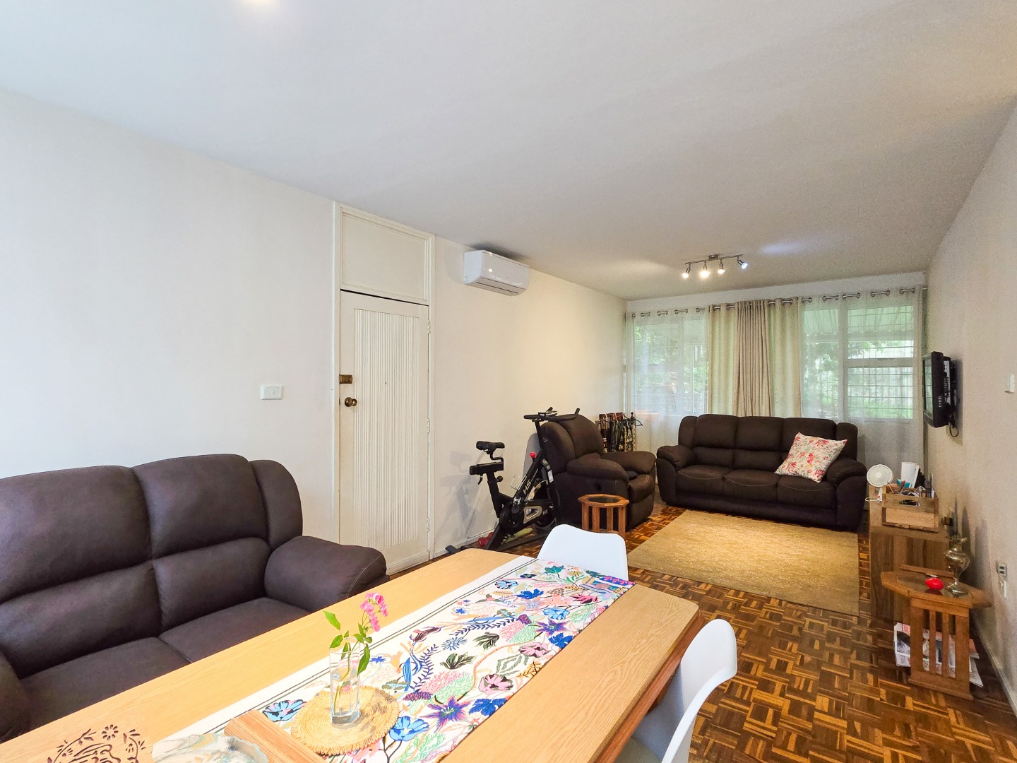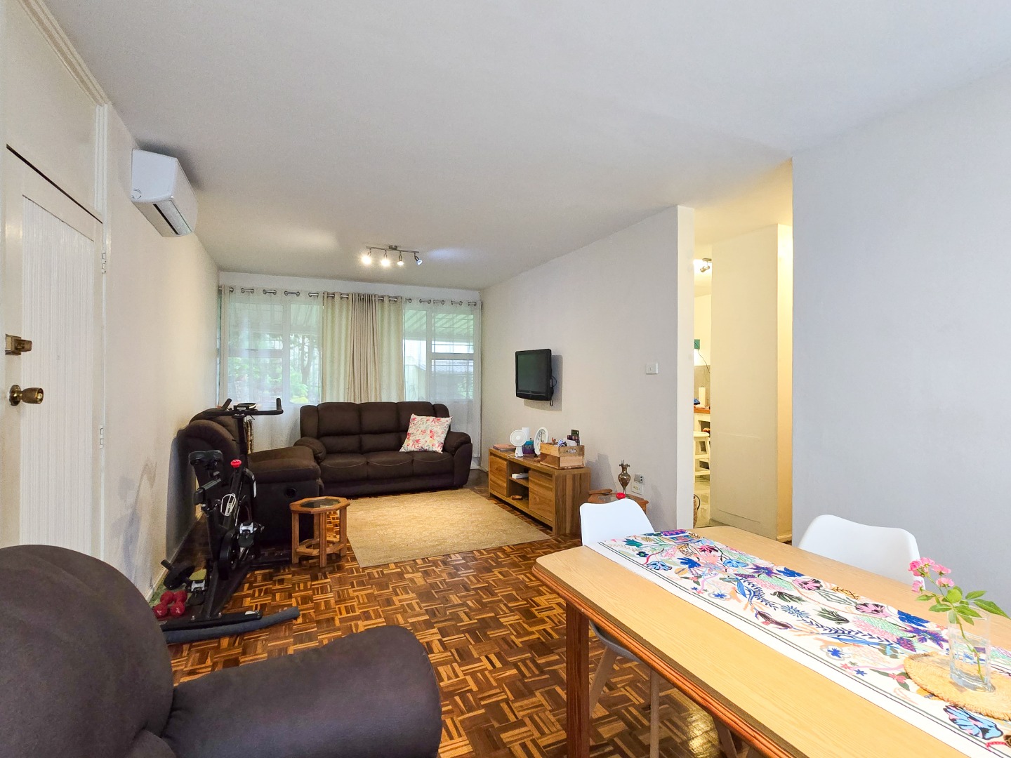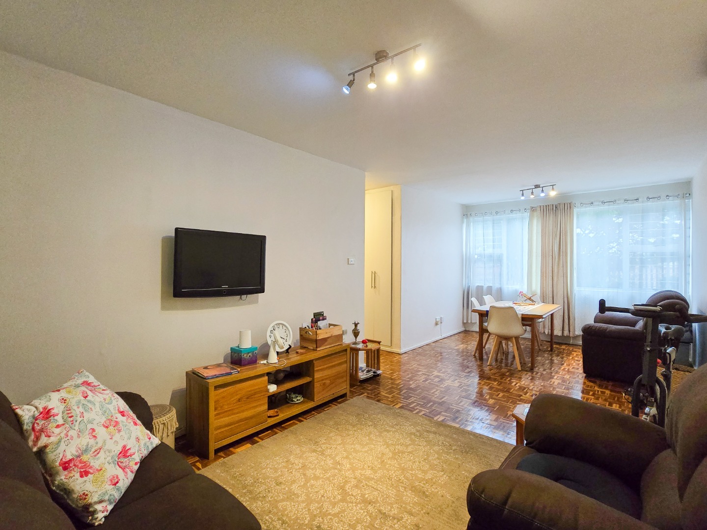 Welcome to this charming and well-maintained simplex apartment, ideally situated on Bellevue Road. The home features a bright and airy open-plan lounge and dining area, flooded with natural light and fitted with beautiful parquet flooring. The lounge is air-conditioned, offering comfort all year round. The kitchen has built-in cupboards, wooden countertops, a gas hob, and tiled flooring. It leads out to a semi-covered exclusive-use patio and garden area—perfect for entertaining guests or a safe play space for children.