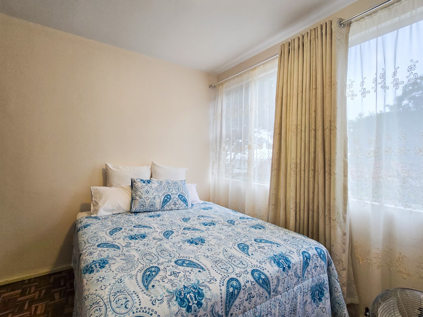 This apartment offers two spacious bedrooms, a separate toilet and bathroom, a fully tiled shower, and a basin for convenience. Additional features include: Remote-controlled access gates, One covered parking bay and a second open parking space. Visitors' parking available on a first-come, first-served basis and Security doors for added peace of mind. Residents also have access to a communal braai area—ideal for socializing and enjoying outdoor meals—as well as a small play area for children. Conveniently located close to Musgrave Centre, within 5 minutes of public transport stops, and near The Atrium Berea (Overport) for all your shopping needs.