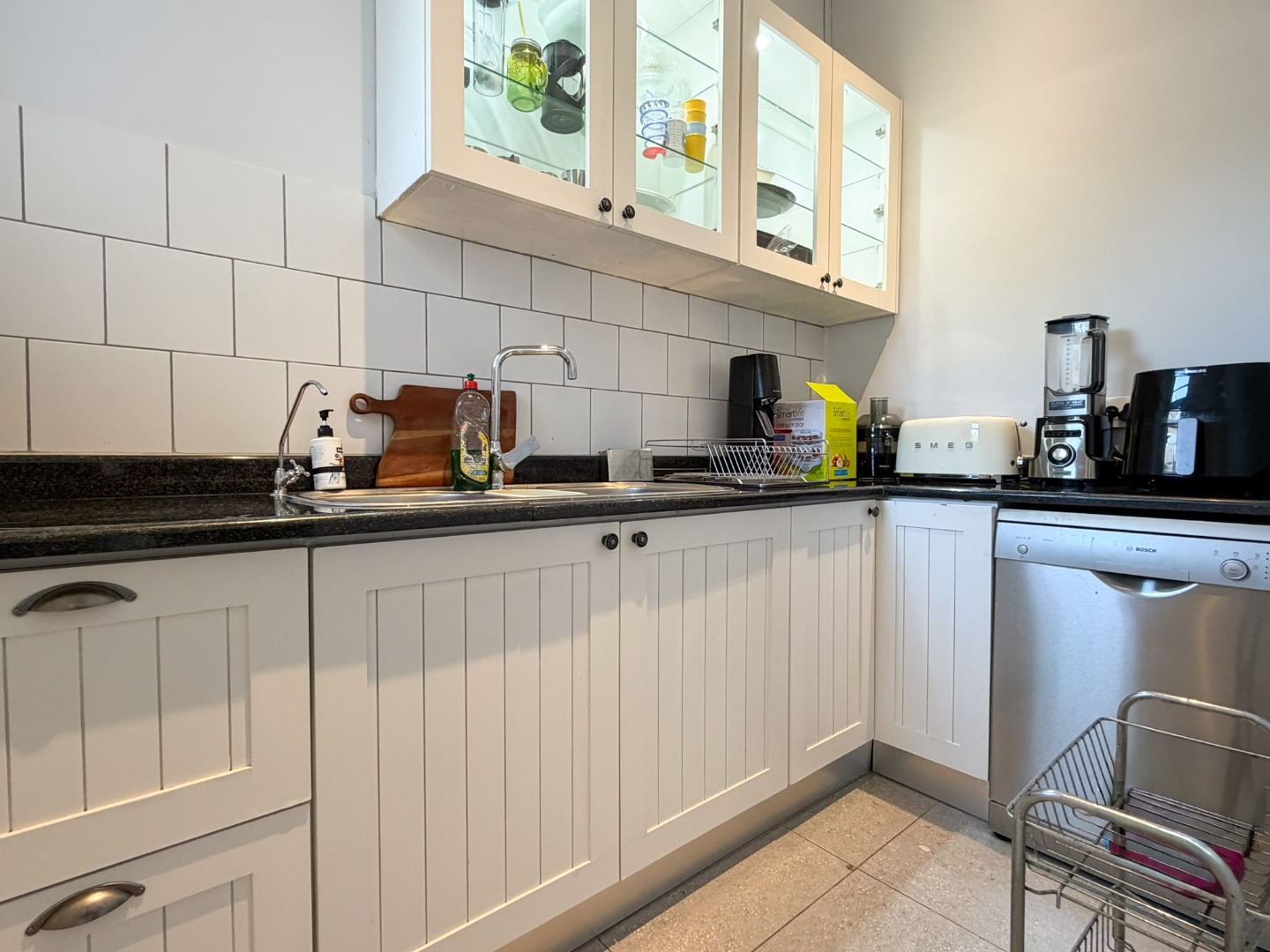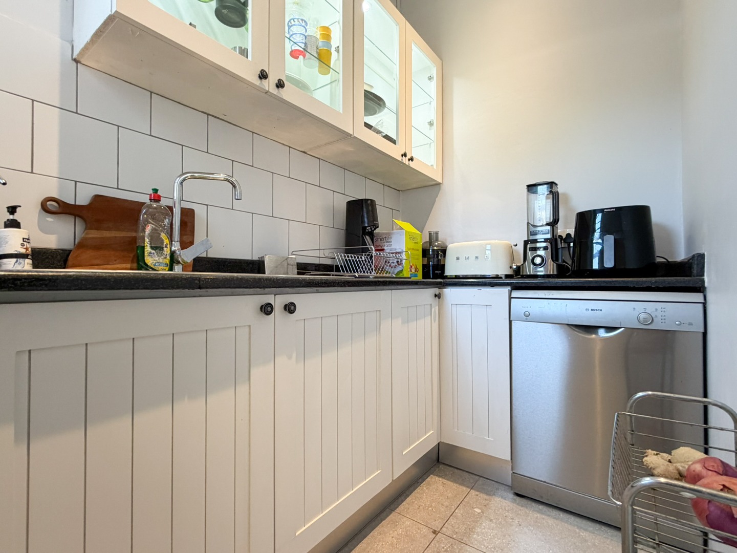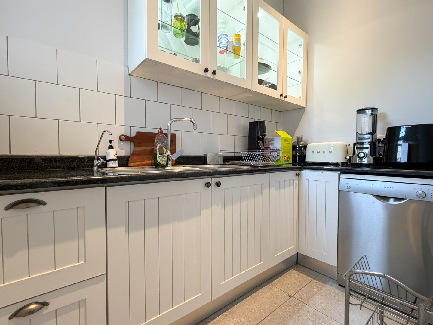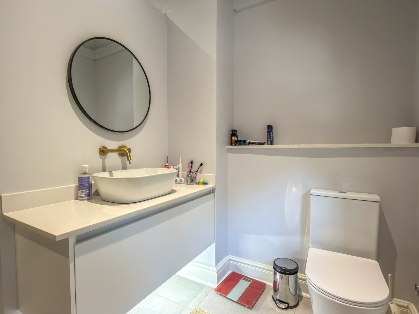 The kitchen flows effortlessly into the dining area, where double doors open onto a deck and garden space—perfect for entertaining and ideal for children to play. Behind the kitchen is a well-appointed scullery, plumbed for a dishwasher and offering additional cupboard space and a sink.