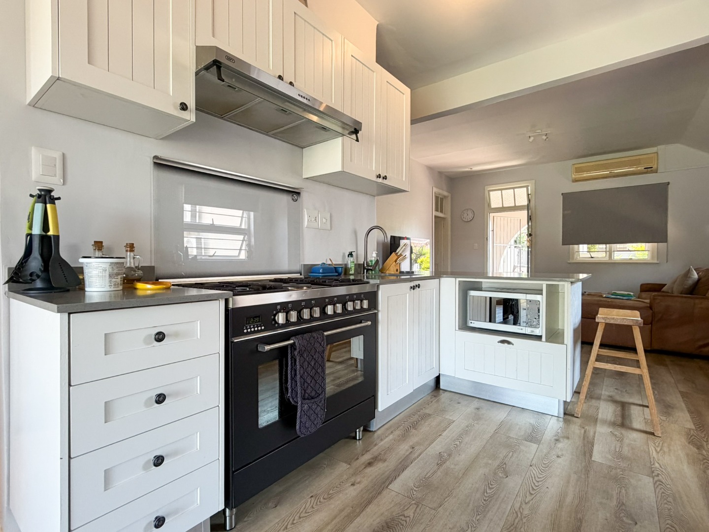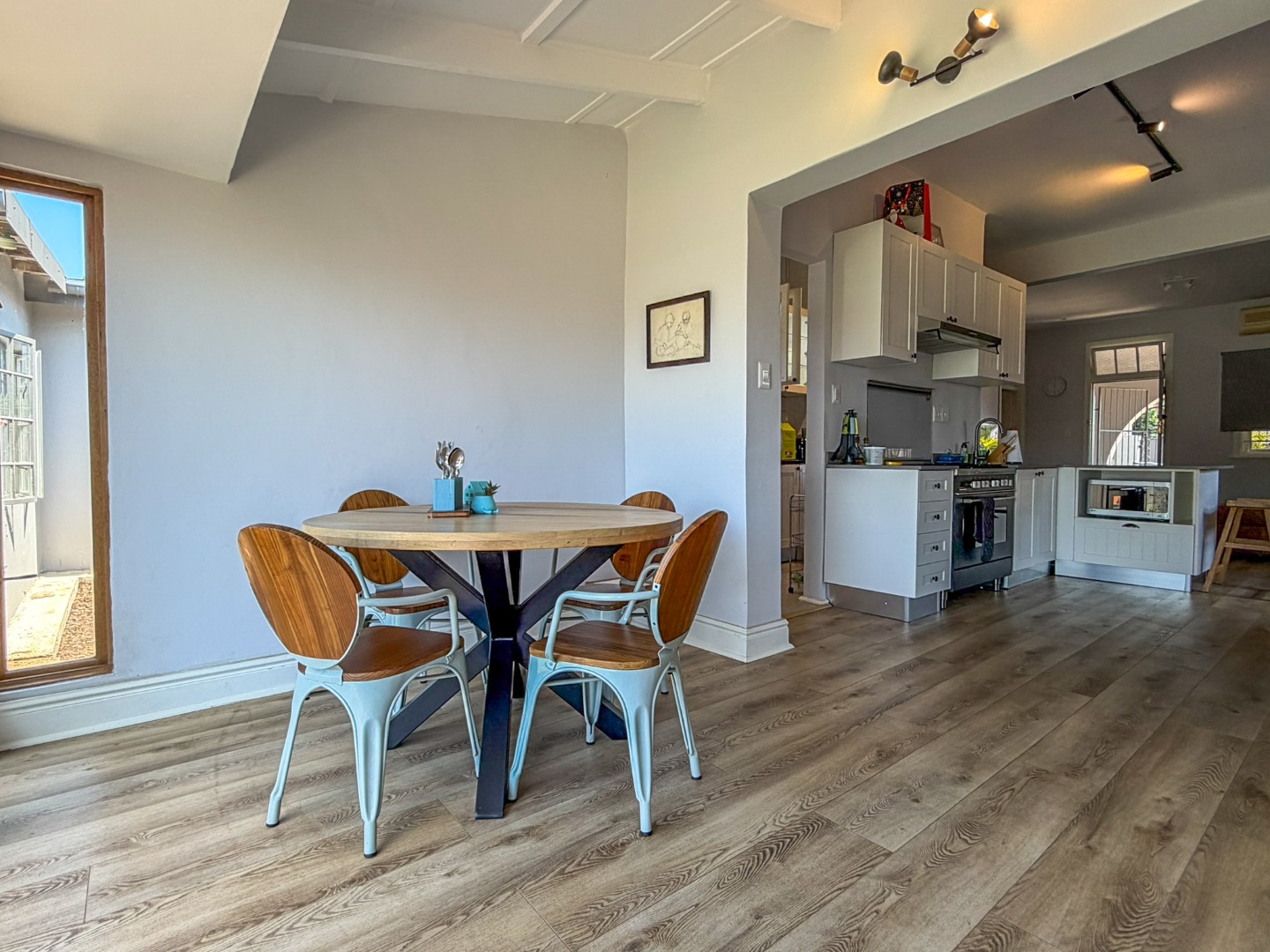 Set in a well-known and sought-after area, this stunning single-storey home offers modern living with excellent indoor and outdoor flow. The home welcomes you into an open-plan lounge with laminate flooring, seamlessly leading into a beautifully renovated, modern kitchen. The kitchen features Caesarstone countertops, farm-style built-in cupboards, an extractor, a breakfast nook, and a movable gas stove (which may not be included in the sale).