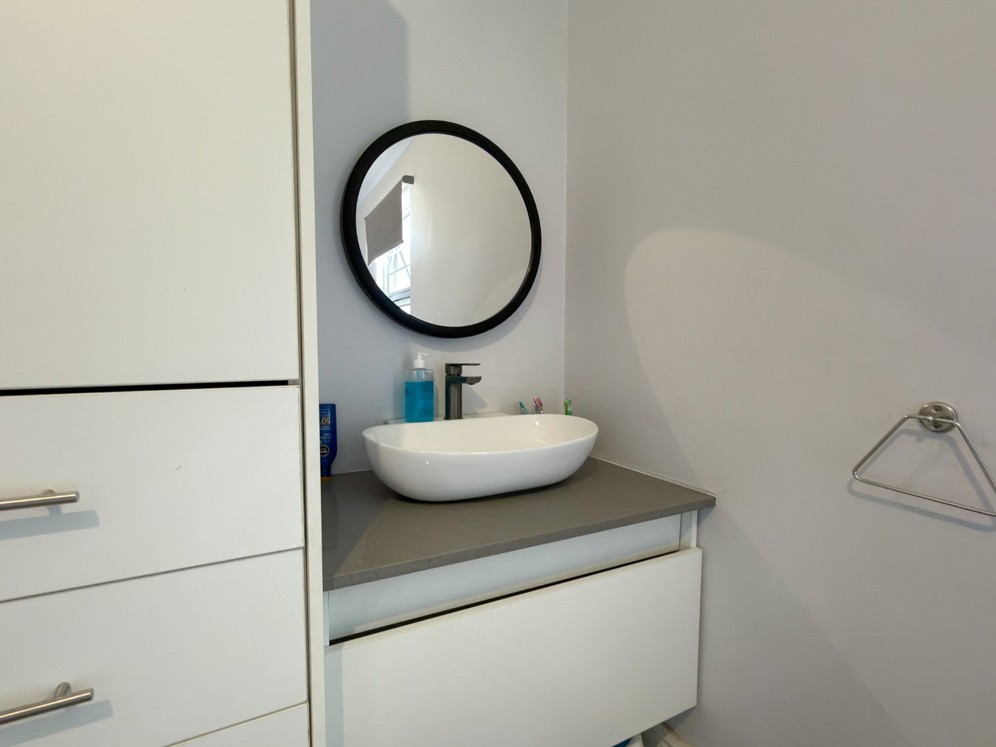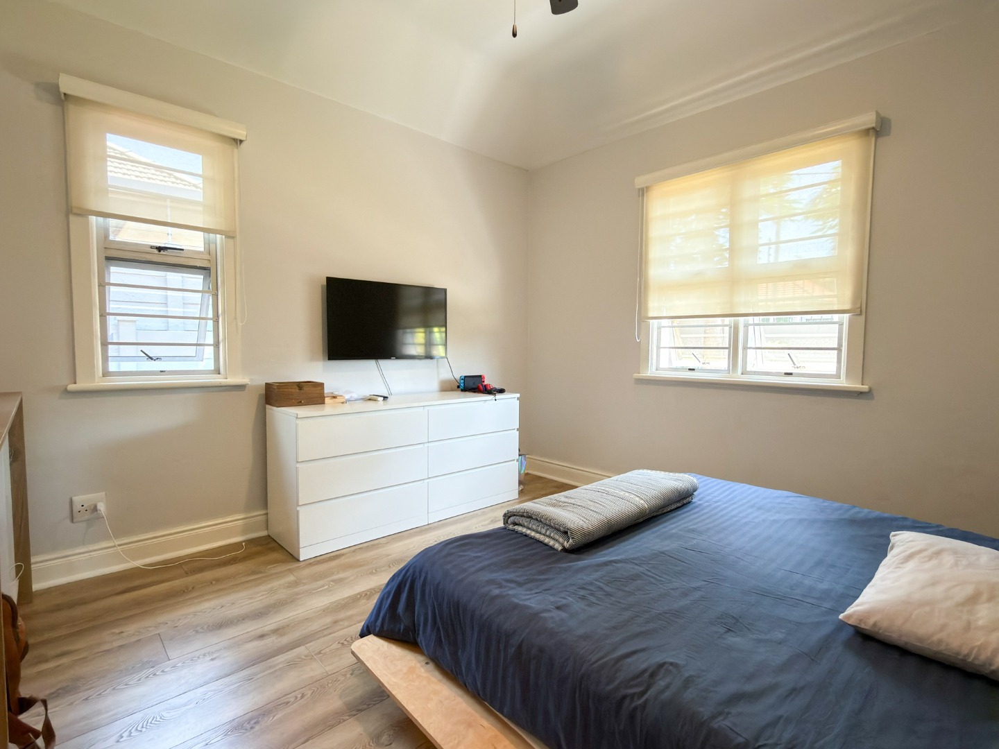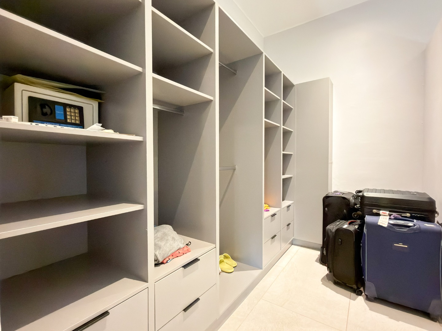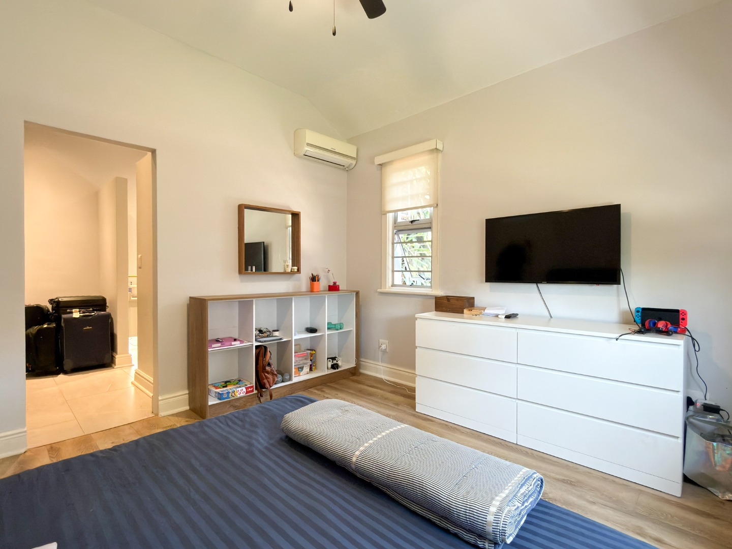 The home offers two spacious bedrooms, both with en-suite bathrooms. The main bedroom includes a walk-in closet. The property is air-conditioned throughout and also offers the potential to create a third bedroom if needed.