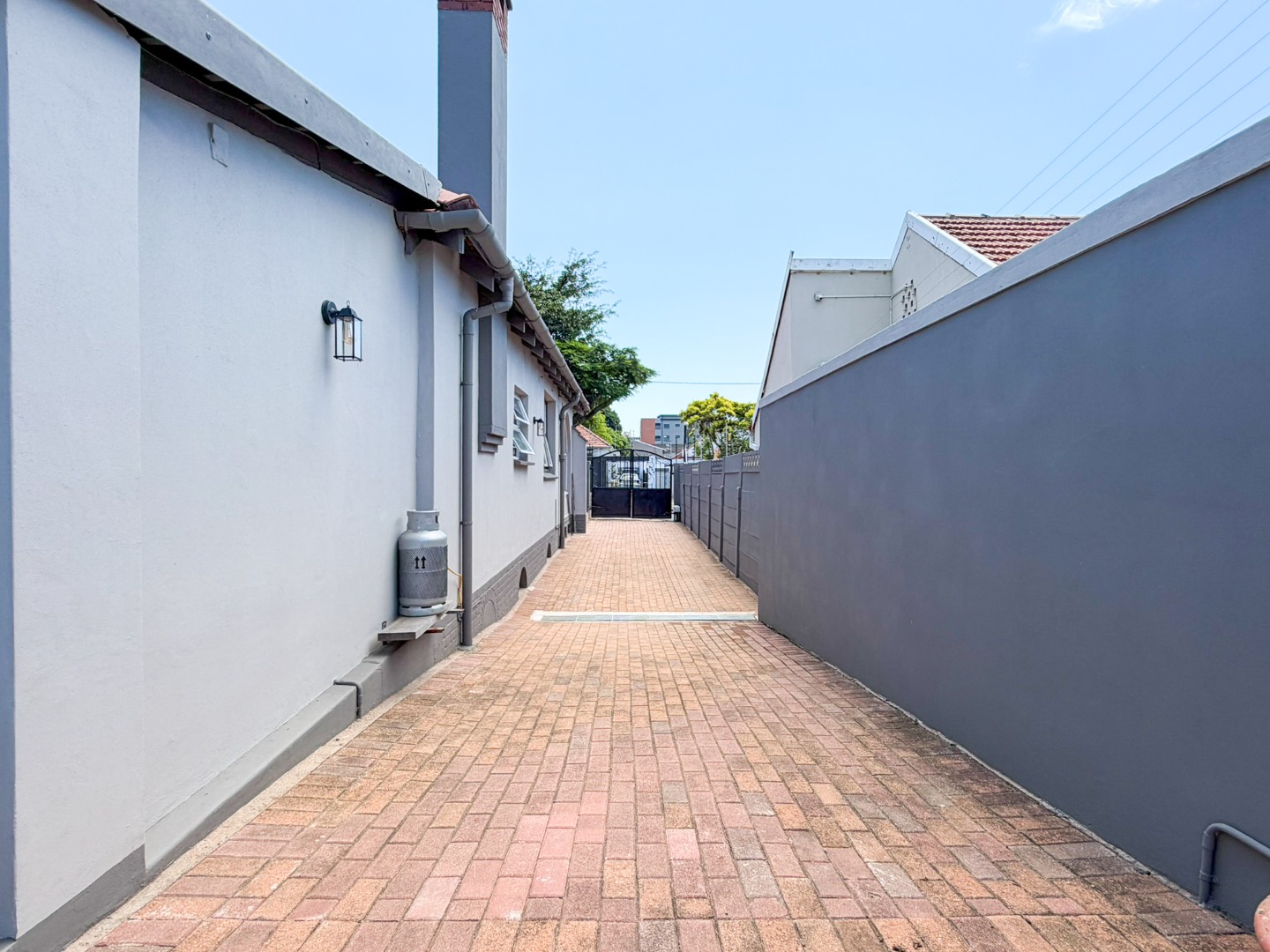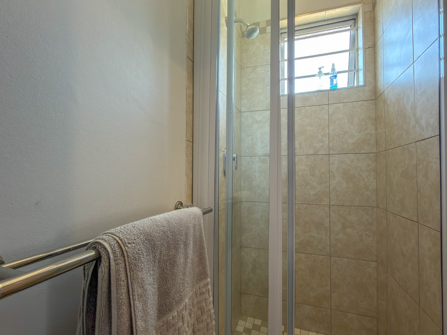 Outside, the property features a self-contained granny flat with its own kitchen and toilet, as well as an additional room with a separate bathroom. An outdoor braai area enhances the entertainment appeal of the home. Further features include a remote-controlled access gate and direct access to a park with 24-hour security.