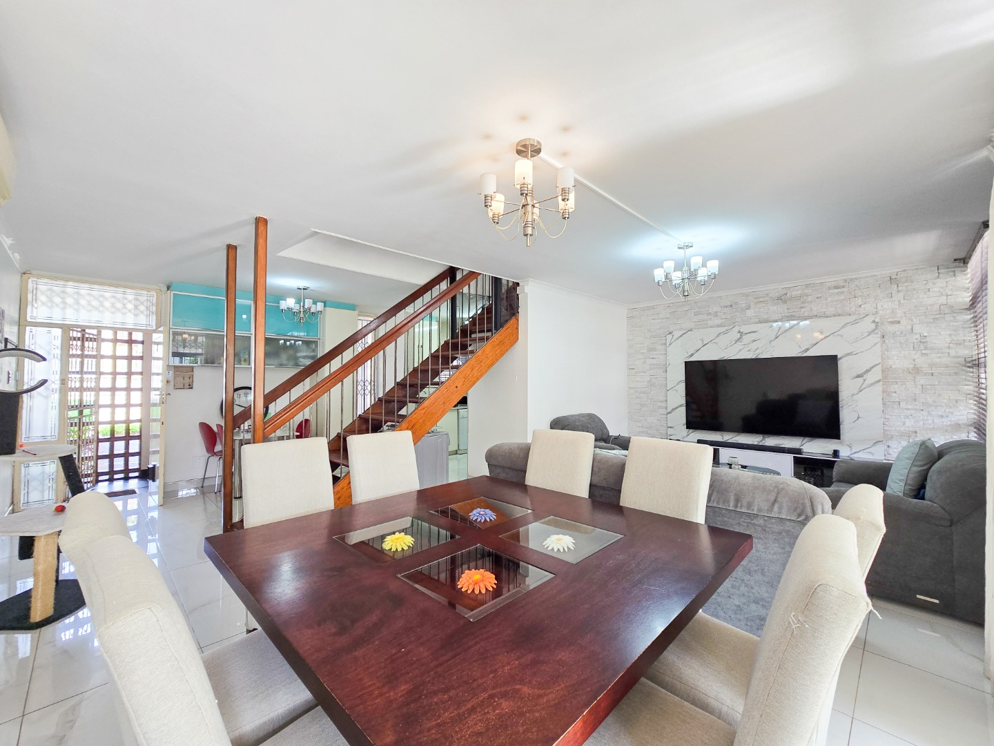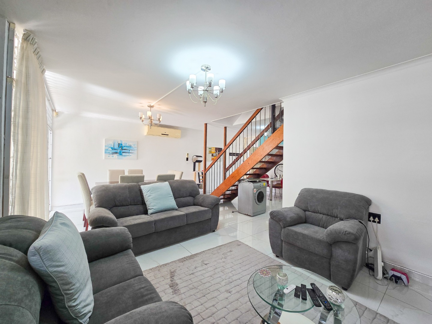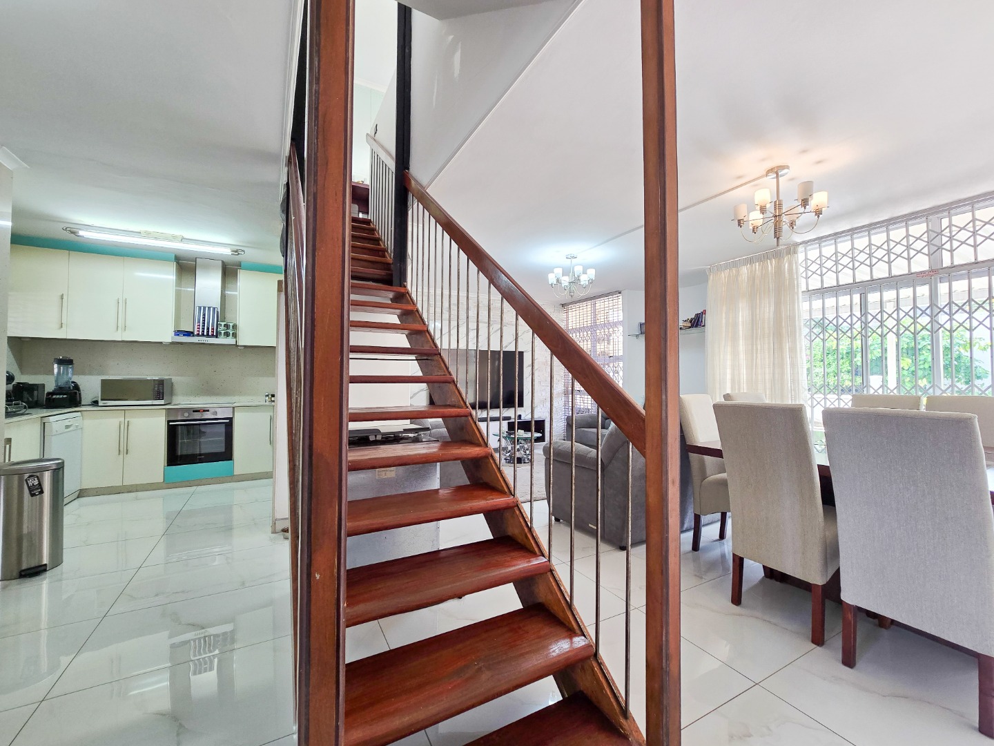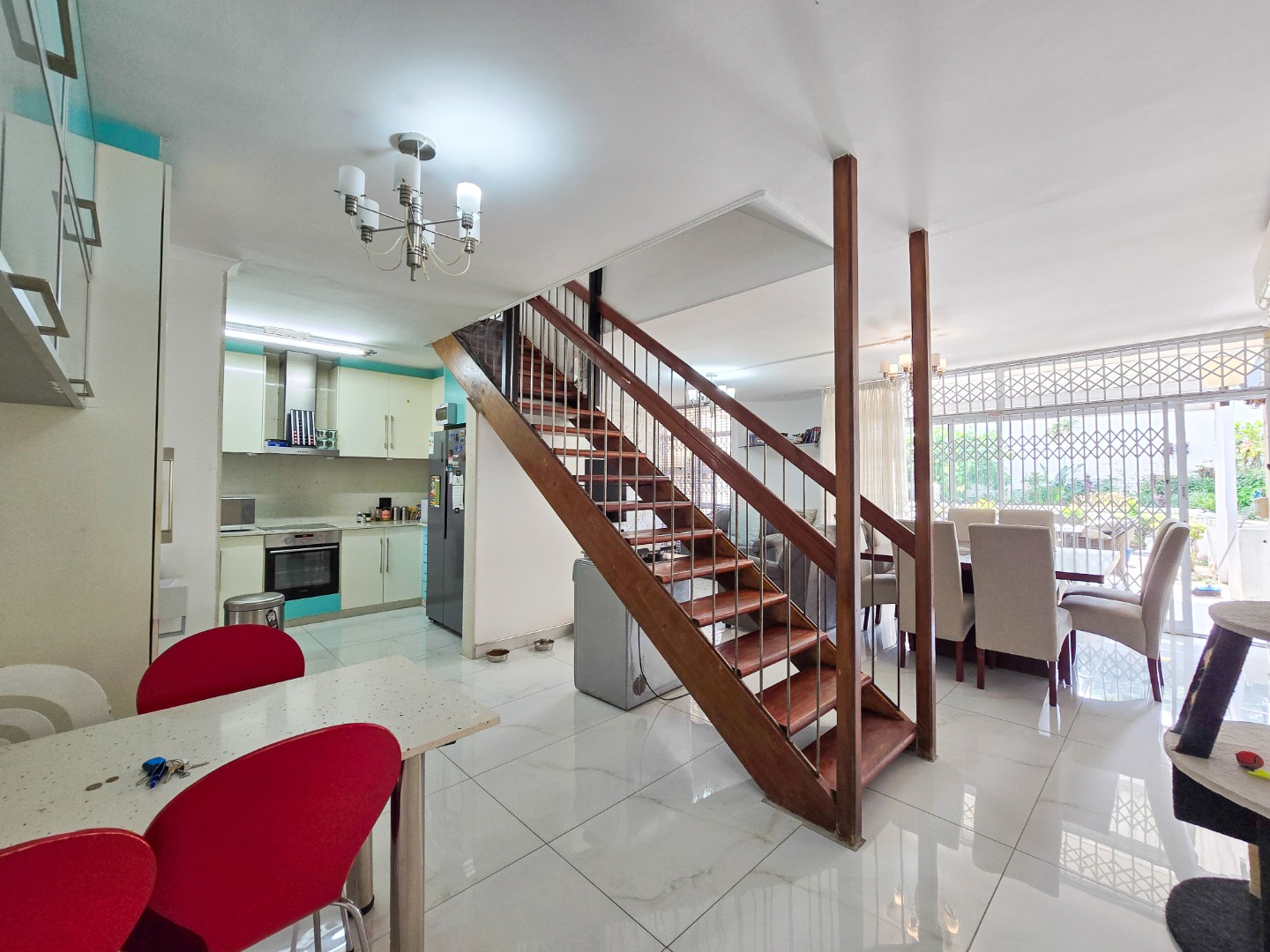 Upstairs, you'll find a luxurious main bedroom with ample built-in cupboards and a beautifully finished en-suite bathroom. The en-suite includes a walk-in shower and a modern wall-hung toilet, all designed with contemporary fittings. The second bedroom is also well-sized and features plenty of cupboard space. Both bedrooms are equipped with air conditioning for year-round comfort. A second, stylish bathroom serves the home. Outside, enjoy a spacious exclusive-use area—ideal for creating your personal oasis, unwinding after a long day, or soaking in the crisp morning air. This gem of a unit also includes two tandem parking bays (one undercover) and offers incredible value for those seeking comfort, style, and convenience. Walking distance to ST Thomas Mosque. Stone throw away from Musgrave Center. A beautiful place to call home—perfectly priced and ready to move in.