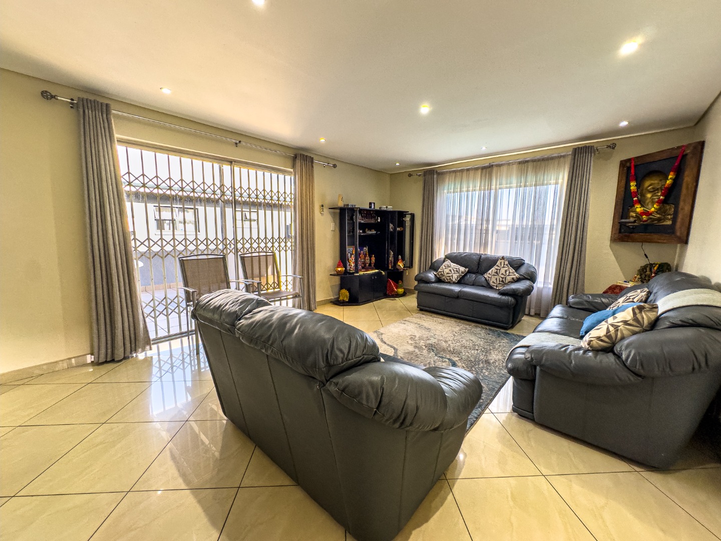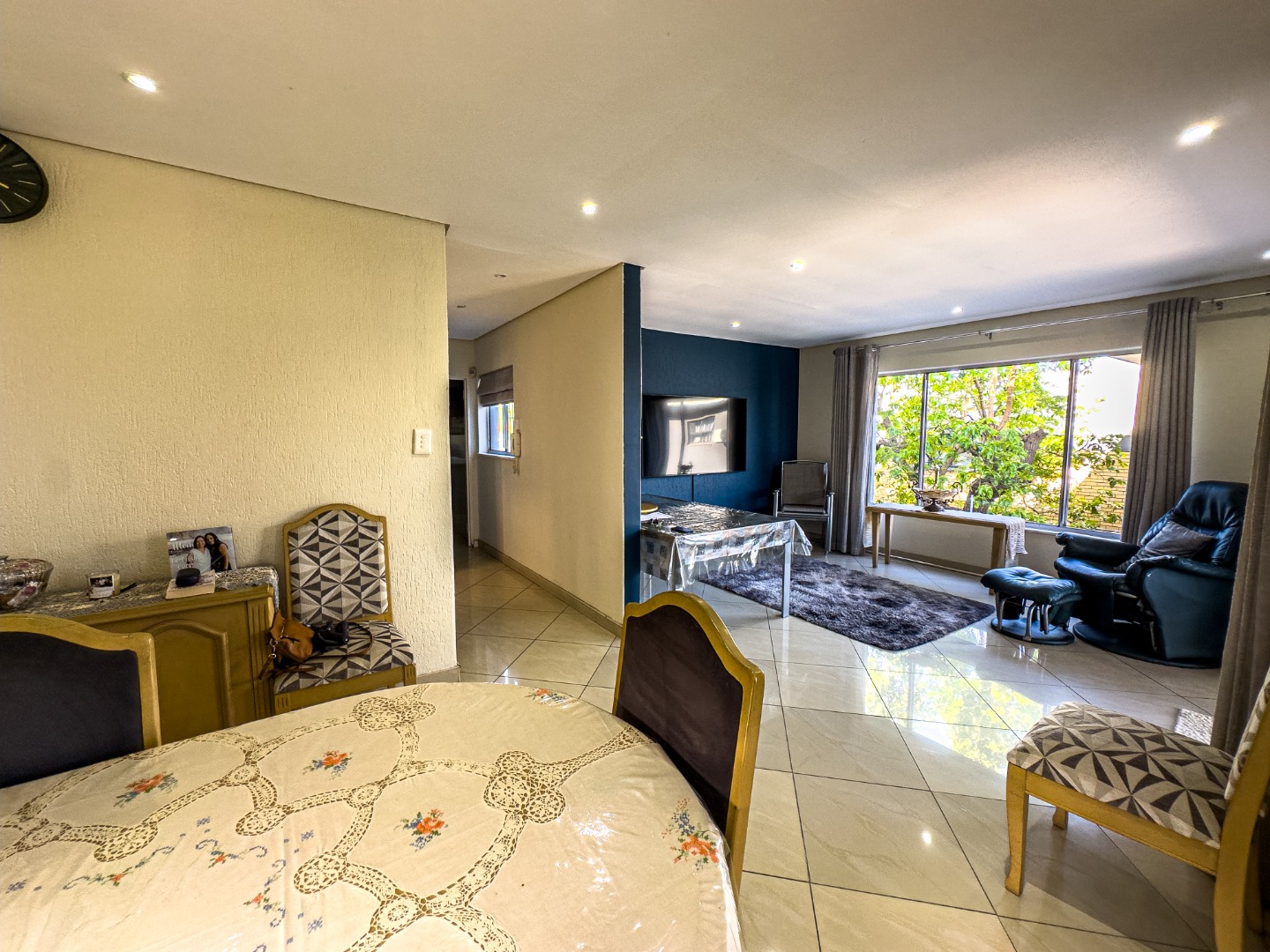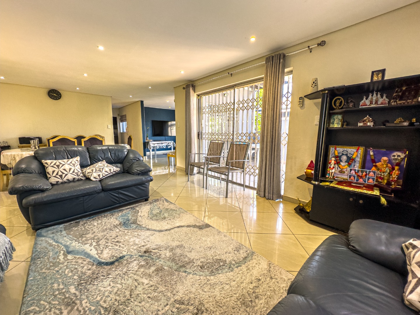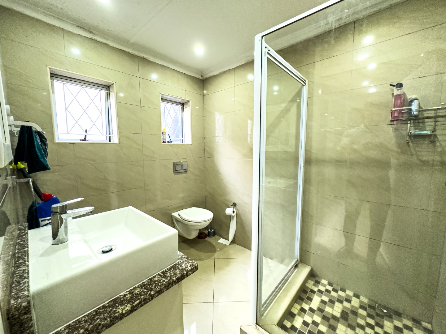 This distinguished residential property, situated in the desirable Essenwood suburb of Durban, presents an exceptional opportunity for discerning buyers. Spanning a generous 279 square metres, this home features an intelligently designed open-plan living and dining area, characterised by contemporary tiled flooring and sophisticated recessed lighting. The modern kitchen is a focal point, equipped with sleek dark wood cabinetry, light countertops, and integrated stainless steel appliances including an oven and hob with extractor fan. The seamless flow between these spaces is enhanced by the presence of air conditioning, ensuring comfort throughout.