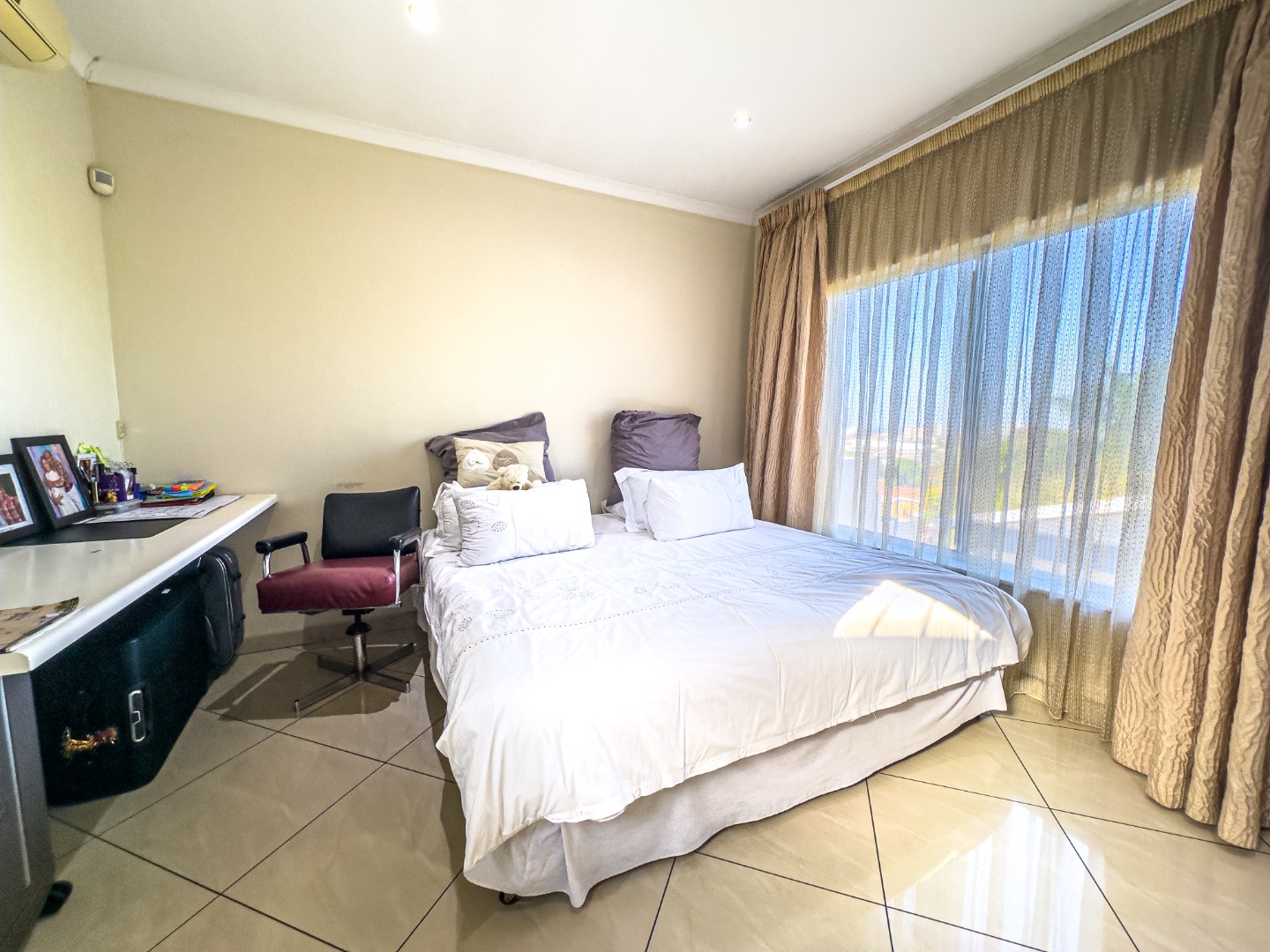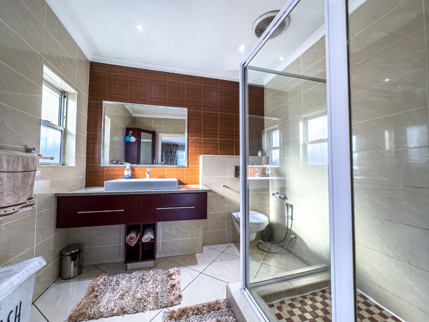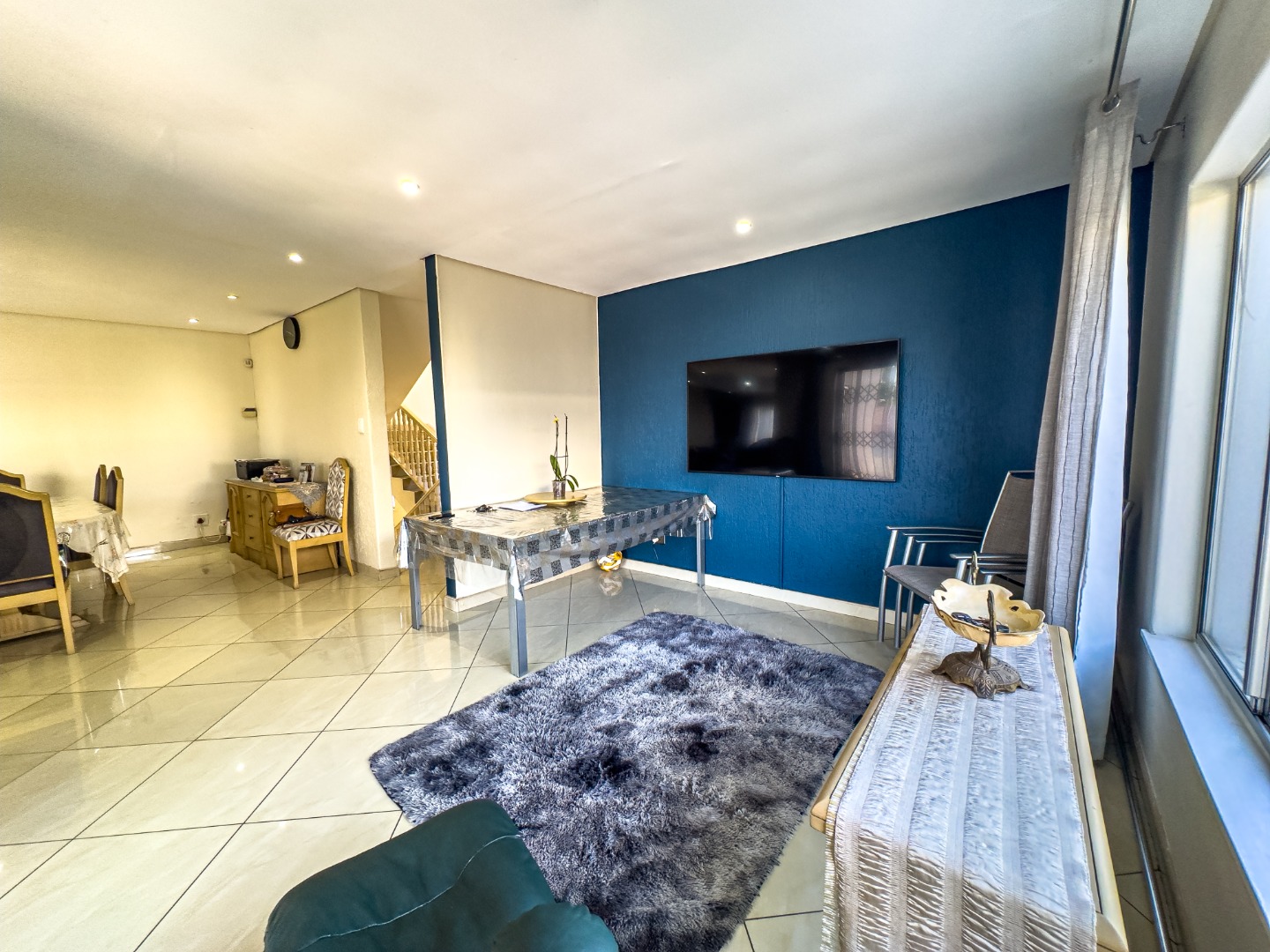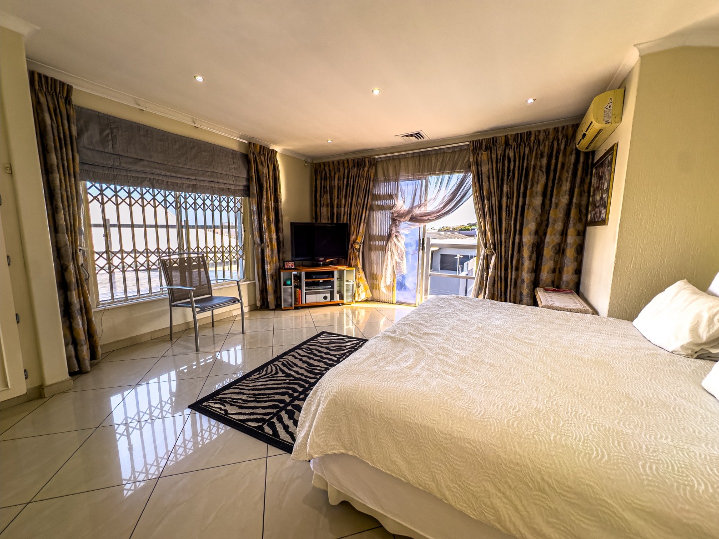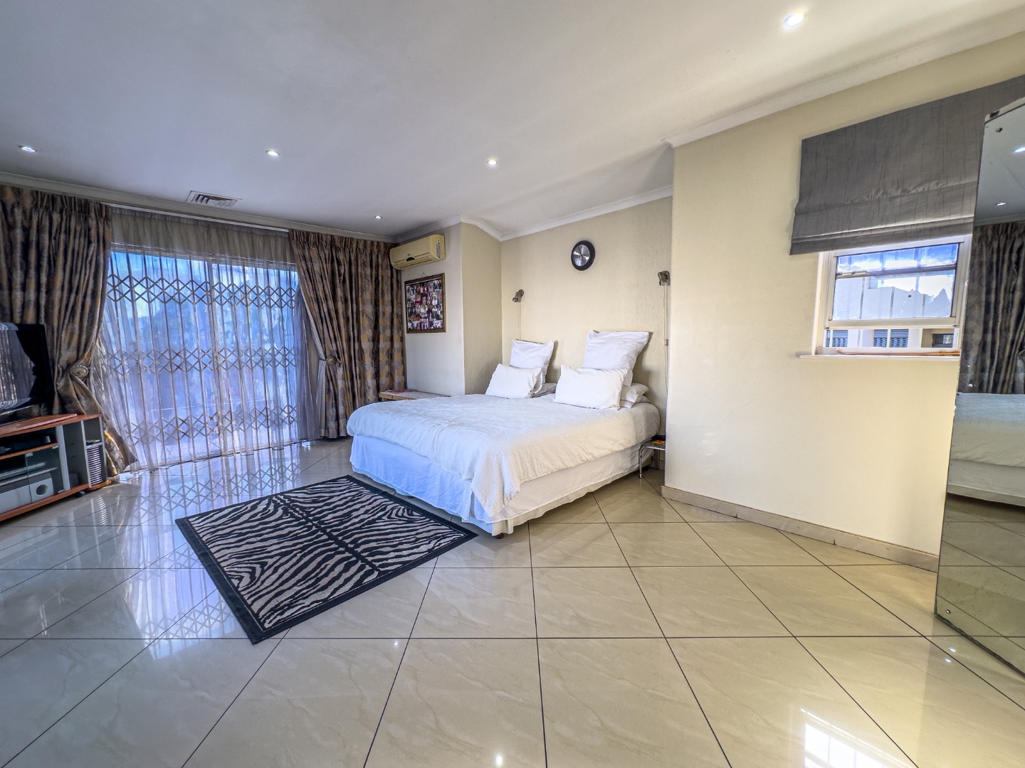 This distinguished residential property, situated in the desirable Essenwood suburb of Durban, presents an exceptional opportunity for discerning buyers. Spanning a generous 279 square metres, this home features an intelligently designed open-plan living and dining area, characterised by contemporary tiled flooring and sophisticated recessed lighting. The modern kitchen is a focal point, equipped with sleek dark wood cabinetry, light countertops, and integrated stainless steel appliances including an oven and hob with extractor fan. The seamless flow between these spaces is enhanced by the presence of air conditioning, ensuring comfort throughout.