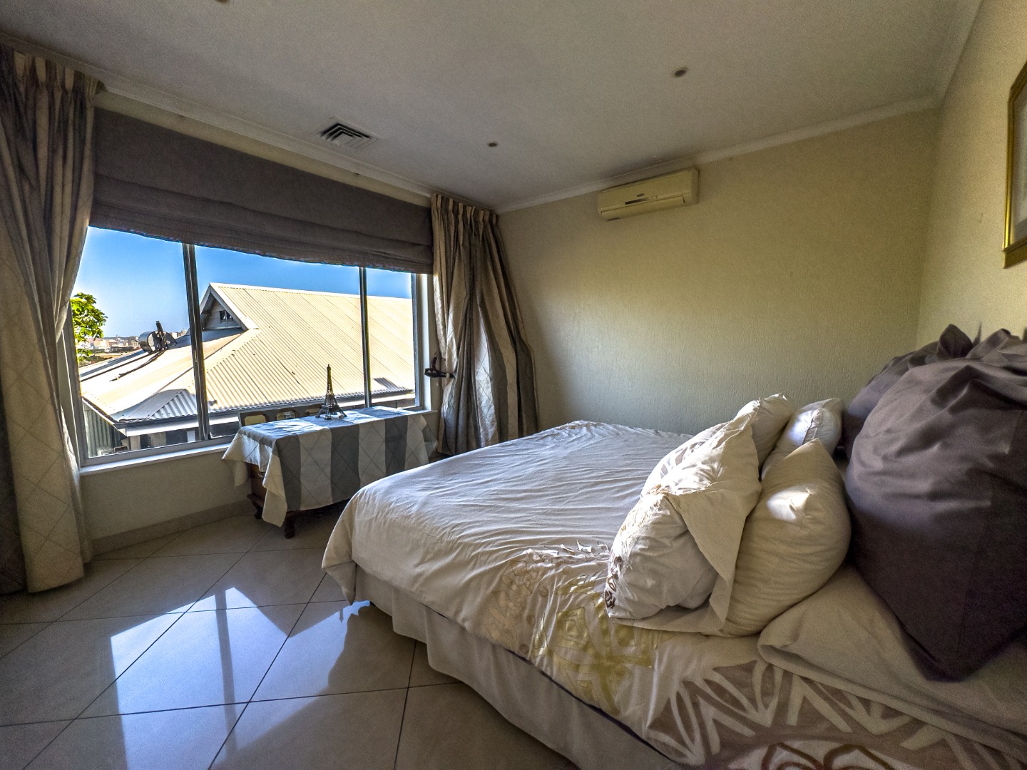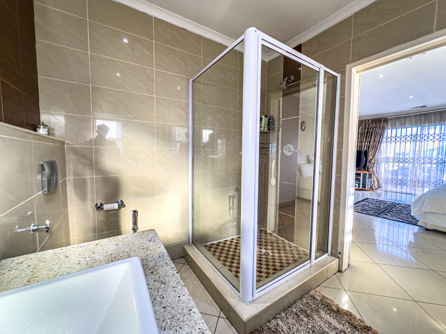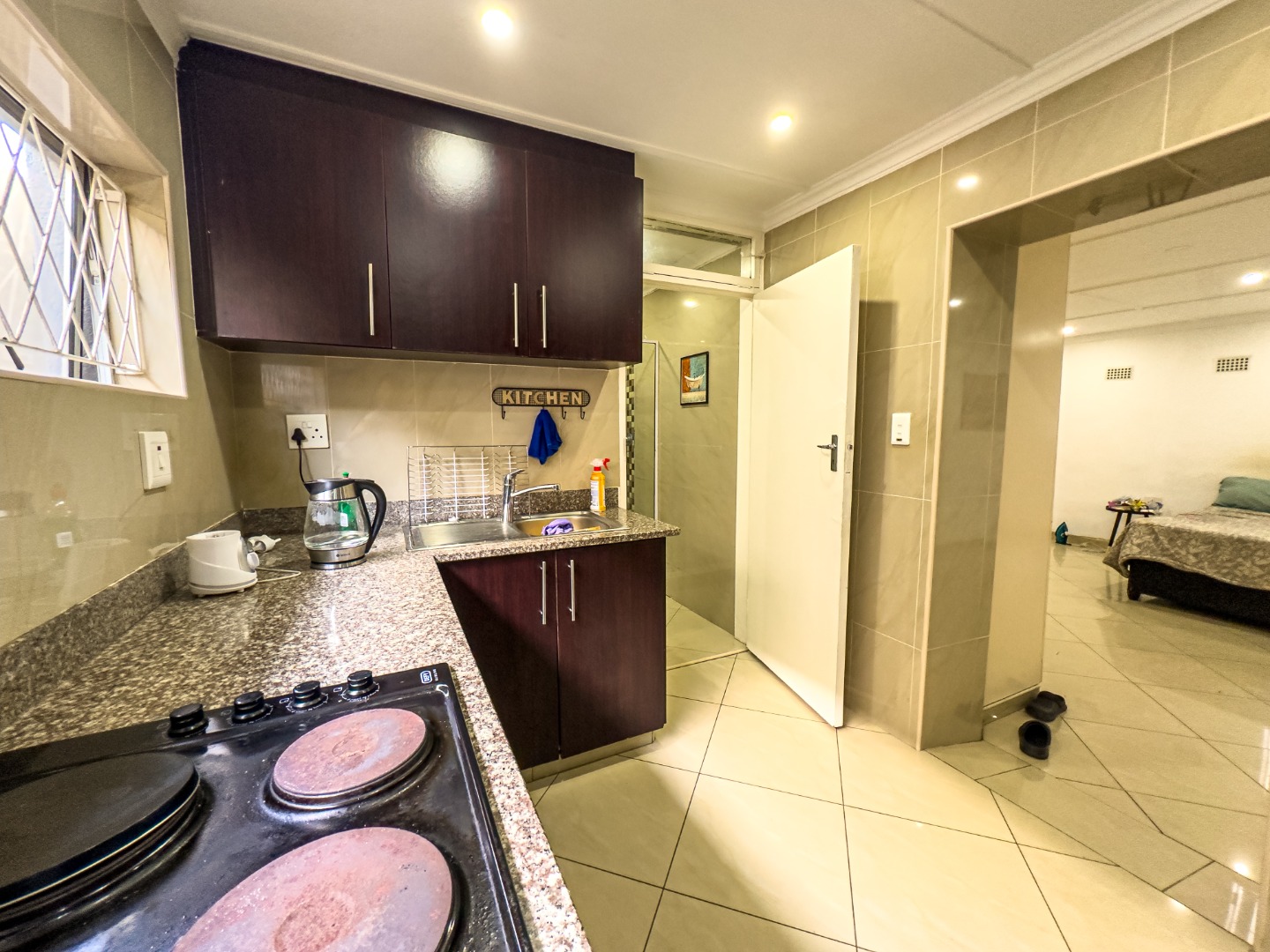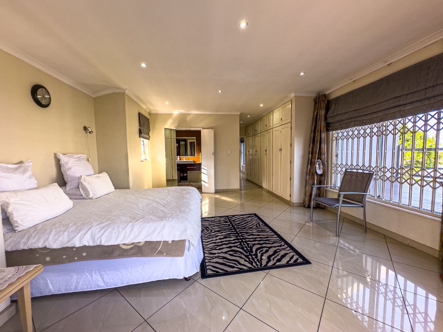 This distinguished residential property, situated in the desirable Essenwood suburb of Durban, presents an exceptional opportunity for discerning buyers. Spanning a generous 279 square metres, this home features an intelligently designed open-plan living and dining area, characterised by contemporary tiled flooring and sophisticated recessed lighting. The modern kitchen is a focal point, equipped with sleek dark wood cabinetry, light countertops, and integrated stainless steel appliances including an oven and hob with extractor fan. The seamless flow between these spaces is enhanced by the presence of air conditioning, ensuring comfort throughout.
