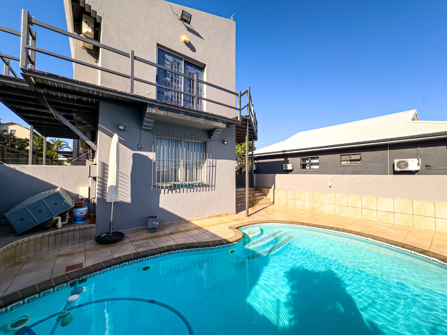 Security is paramount, with features such as an alarm system, electric fencing, intercom access, and burglar bars providing comprehensive peace of mind. Located within a suburban setting, this residence offers a harmonious blend of convenience and tranquility, making it an ideal family home in Durban.