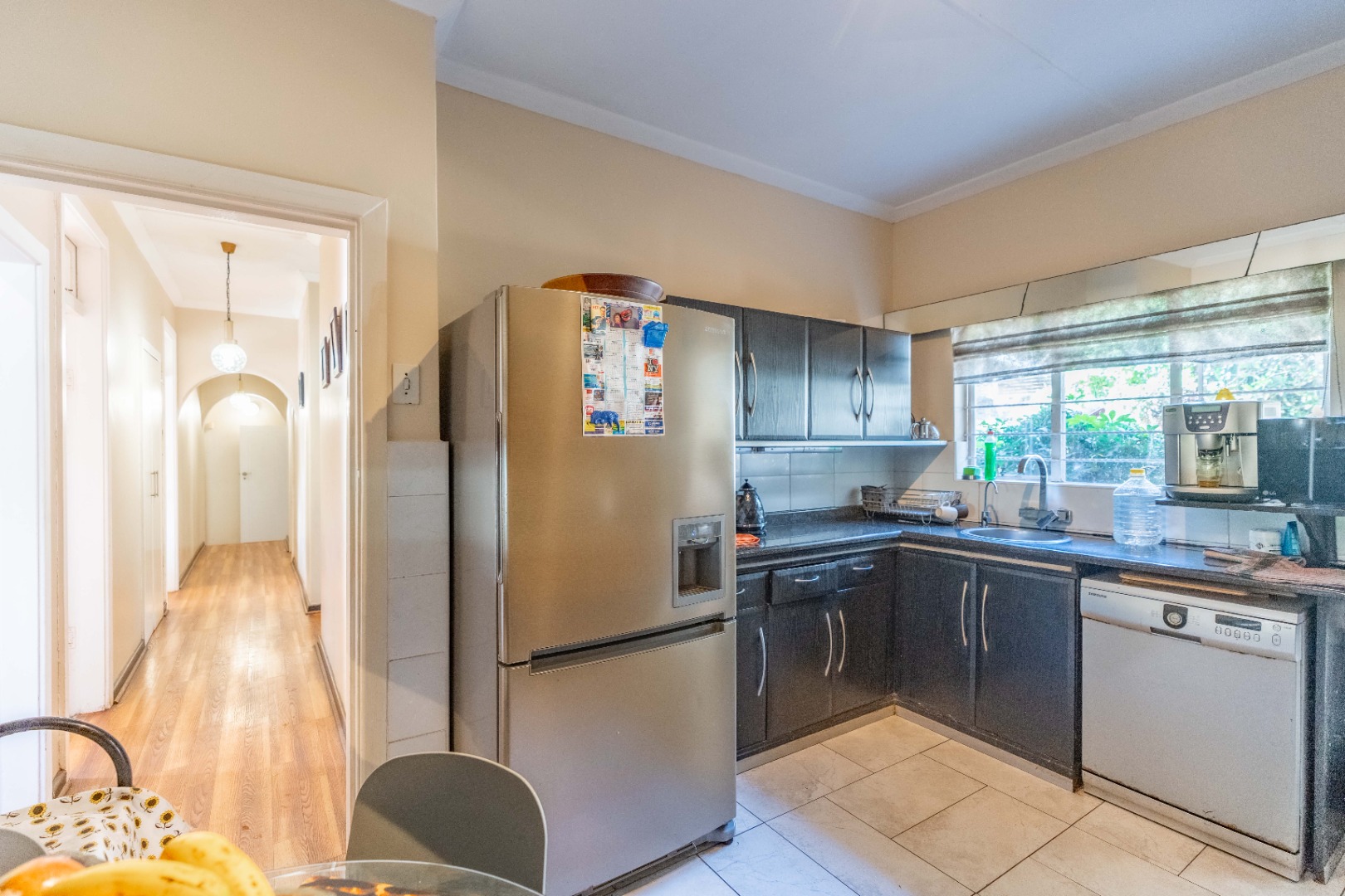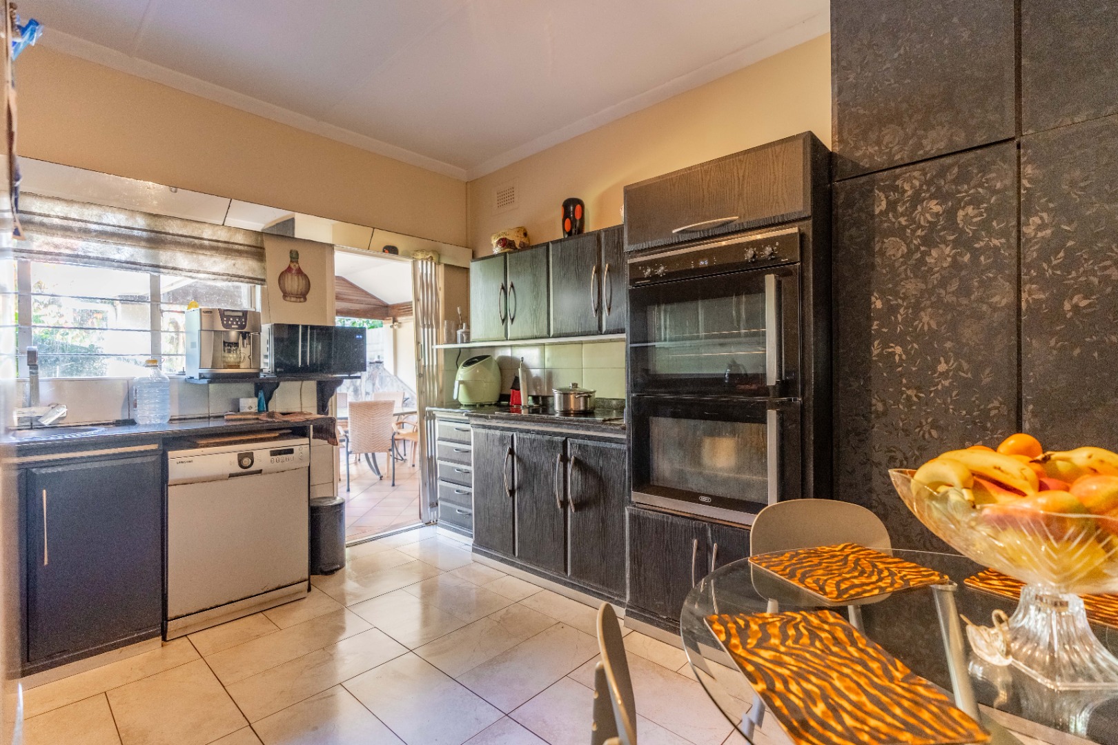 The modern kitchen is equipped with ample cupboard space and seamlessly connects to a beautifully paved entertainment area, complete with a sparkling pool. This setup makes hosting effortless and enjoyable.