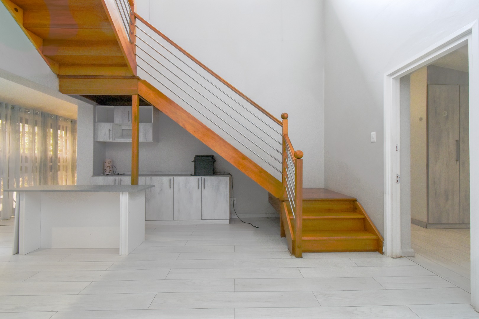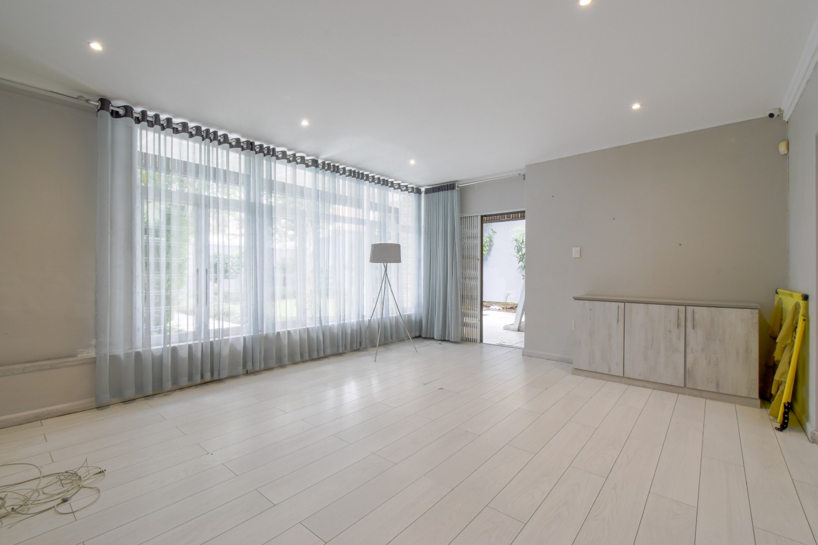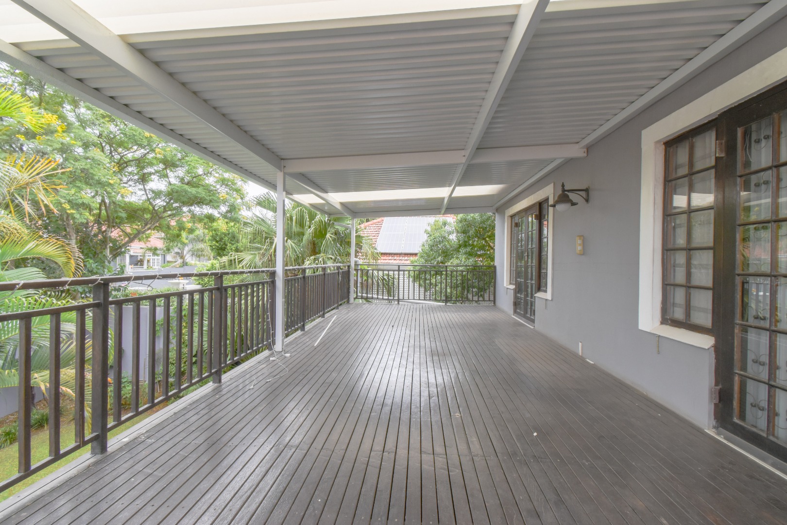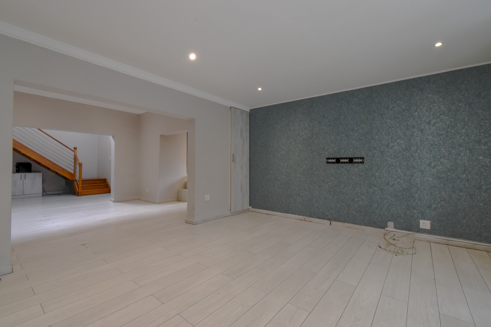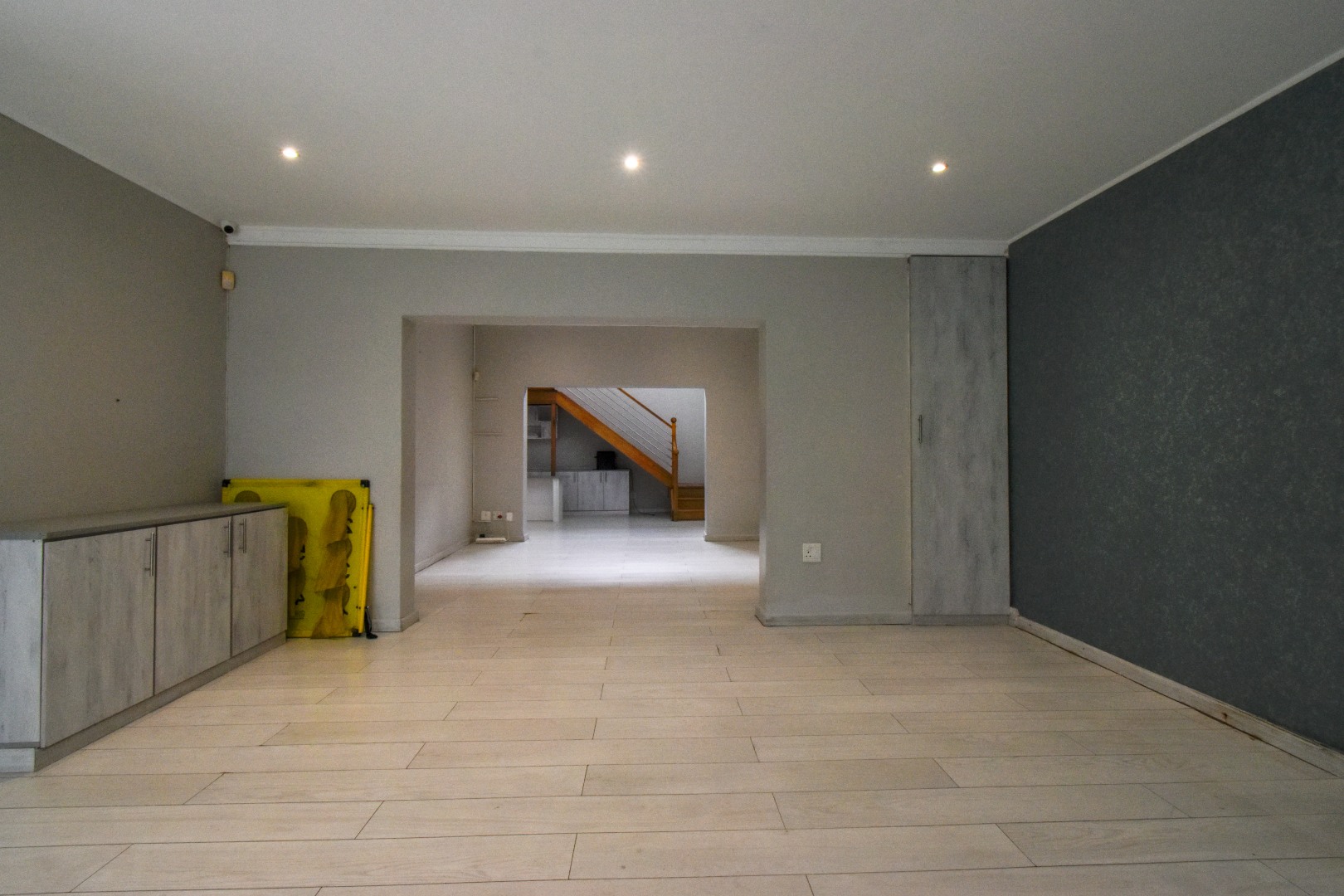 Discover a sophisticated modern home set in a quiet cul-de-sac in the sought-after Essenwood suburb of Durban. This striking double-storey residence features contemporary architecture with stone cladding, dark accents, and a statement balcony, surrounded by a beautifully maintained tropical garden with paved walkways and a children’s play area. Inside, spacious open-plan living areas are enhanced by light-toned flooring, recessed lighting, crown molding, and textured feature walls. A sleek wooden staircase leads to four luxurious bedrooms, two en suite, plus a full family bathroom and guest toilet. The home also offers three lounges, a dining area, a covered patio for outdoor entertaining, air conditioning, and two garages. Comprehensive security includes electric fencing, CCTV, an alarm system, 24-hour security, and controlled access, ensuring stylish, secure, and comfortable living in a prime location.