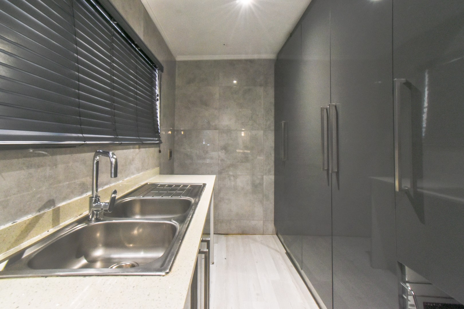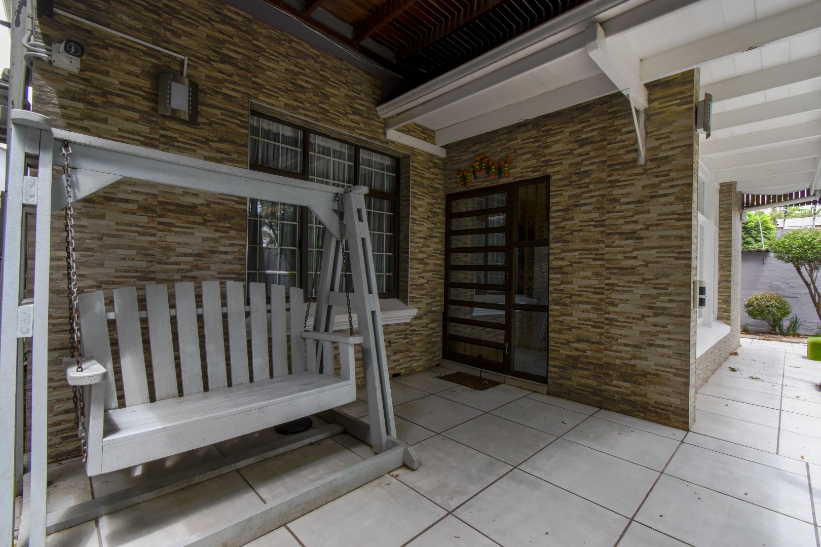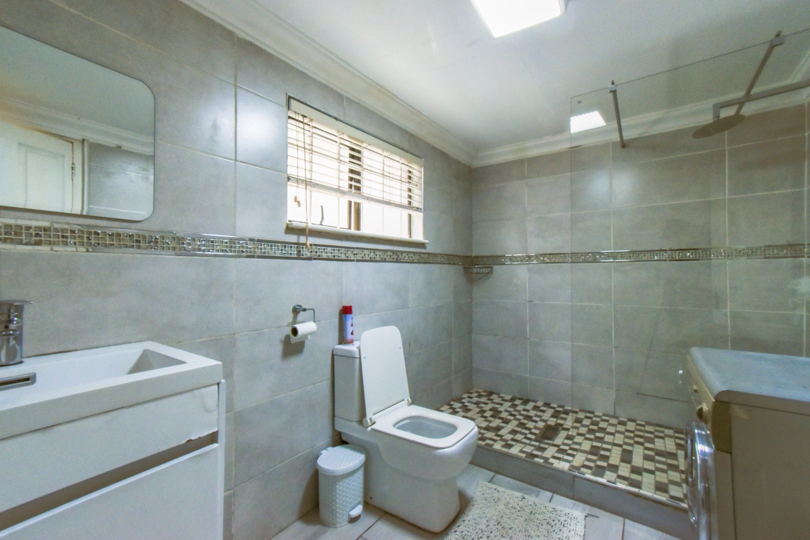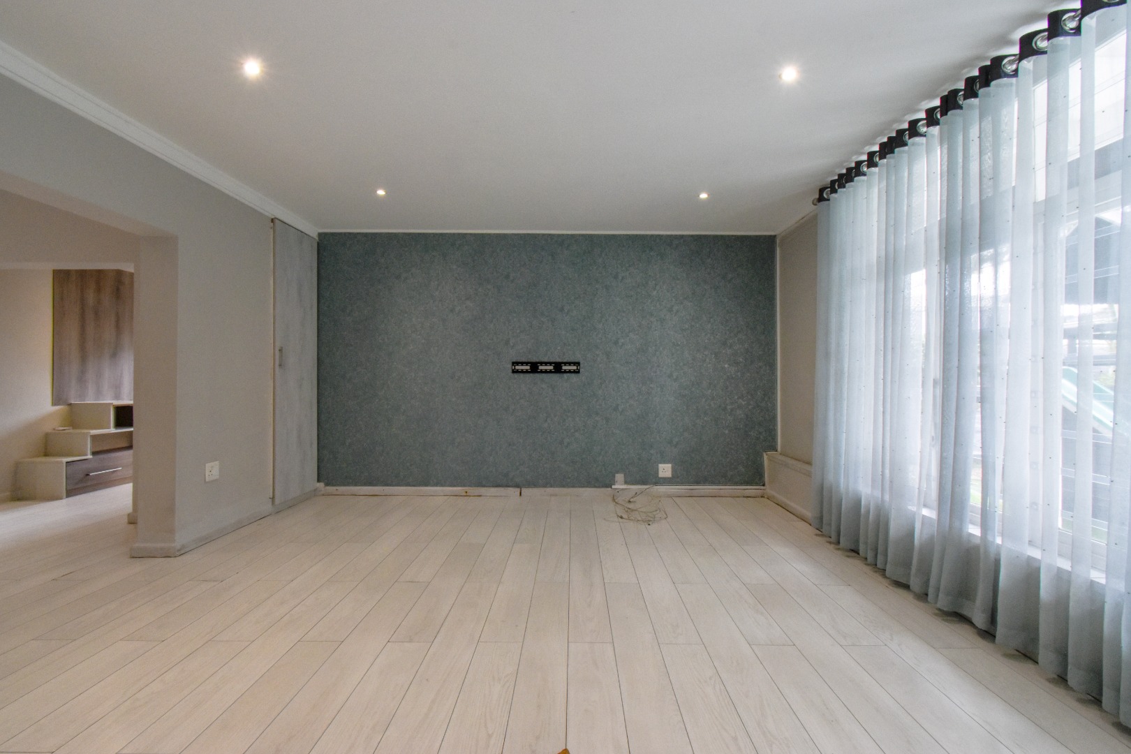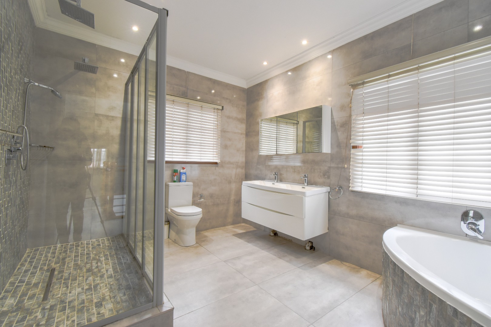 Discover a sophisticated modern home set in a quiet cul-de-sac in the sought-after Essenwood suburb of Durban. This striking double-storey residence features contemporary architecture with stone cladding, dark accents, and a statement balcony, surrounded by a beautifully maintained tropical garden with paved walkways and a children’s play area. Inside, spacious open-plan living areas are enhanced by light-toned flooring, recessed lighting, crown molding, and textured feature walls. A sleek wooden staircase leads to four luxurious bedrooms, two en suite, plus a full family bathroom and guest toilet. The home also offers three lounges, a dining area, a covered patio for outdoor entertaining, air conditioning, and two garages. Comprehensive security includes electric fencing, CCTV, an alarm system, 24-hour security, and controlled access, ensuring stylish, secure, and comfortable living in a prime location.