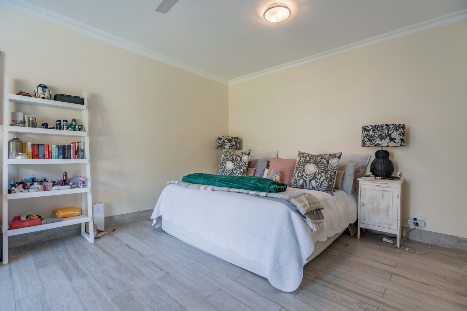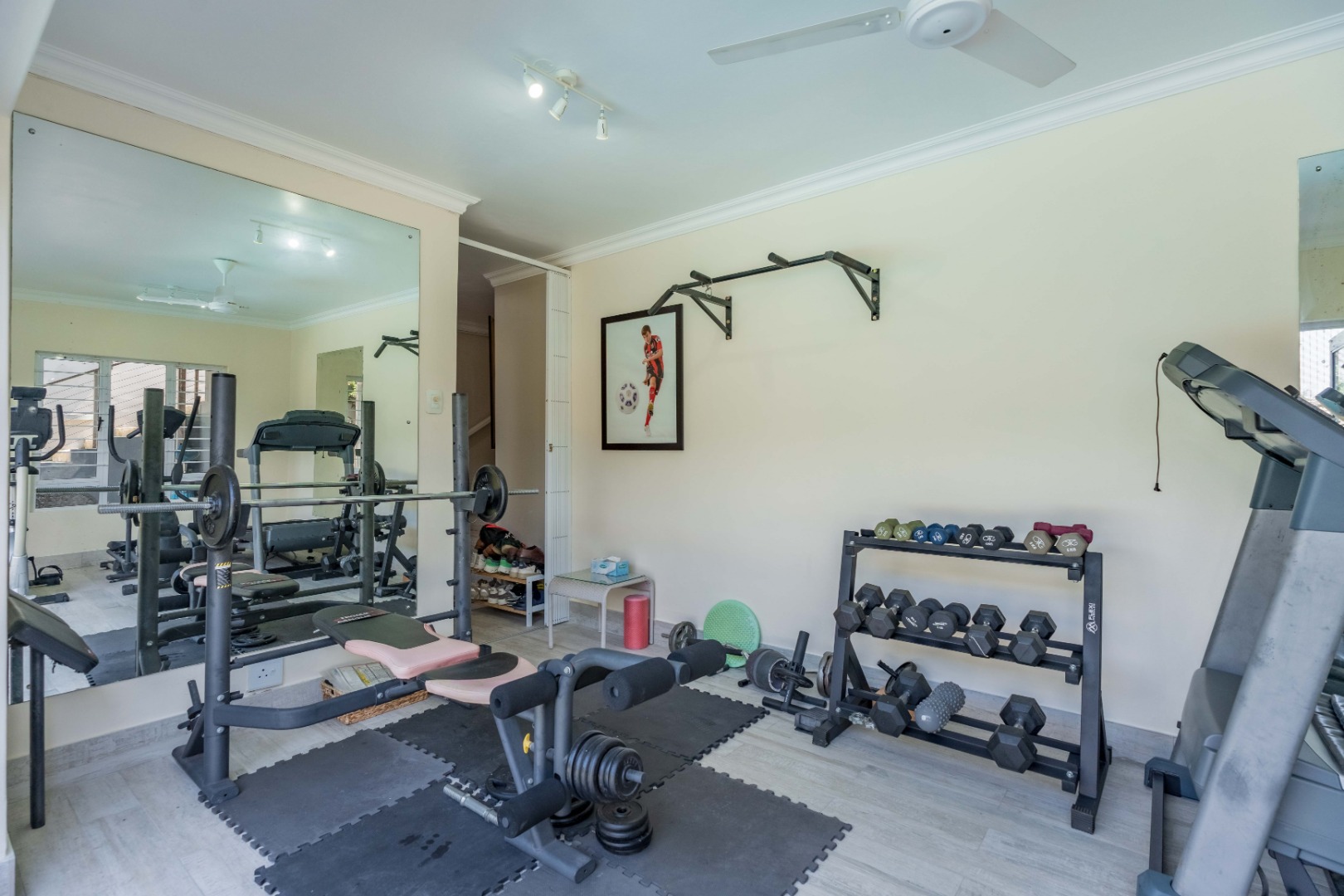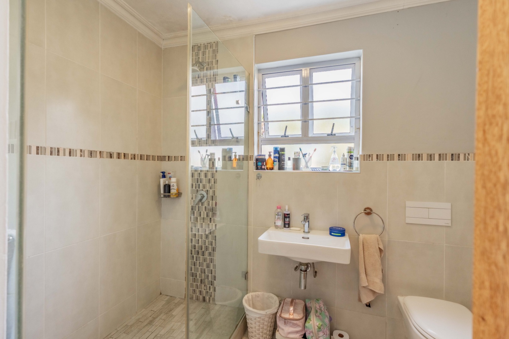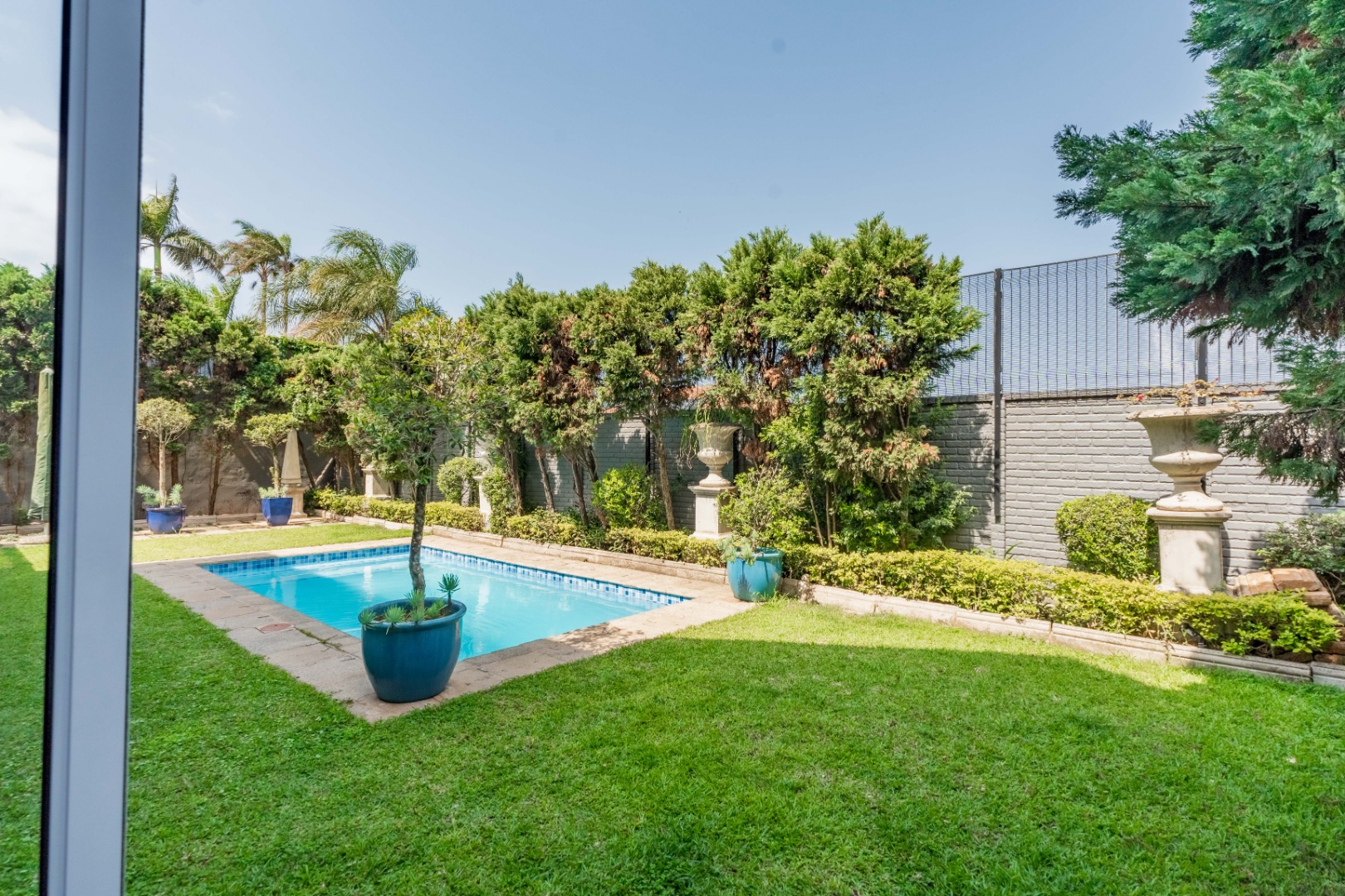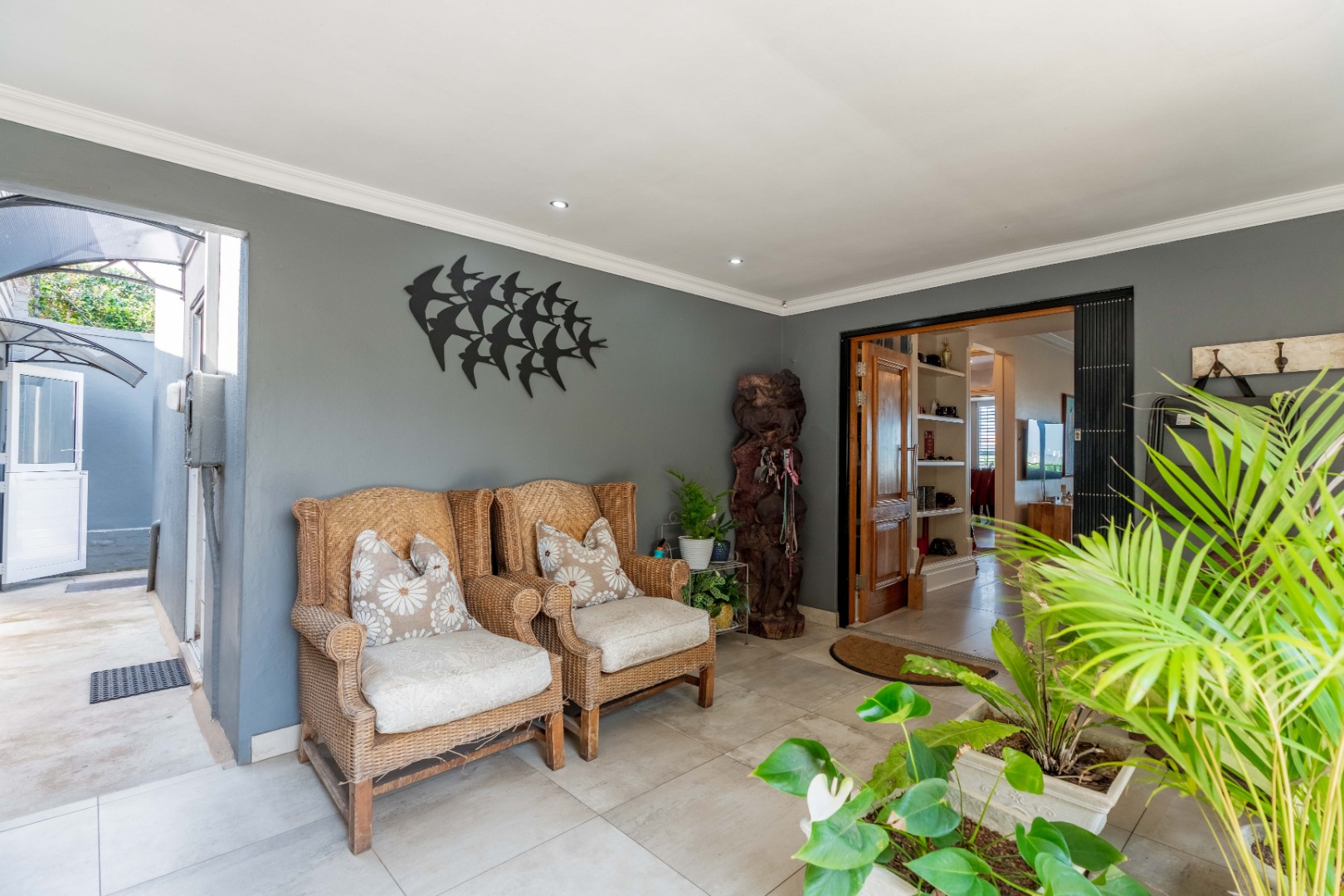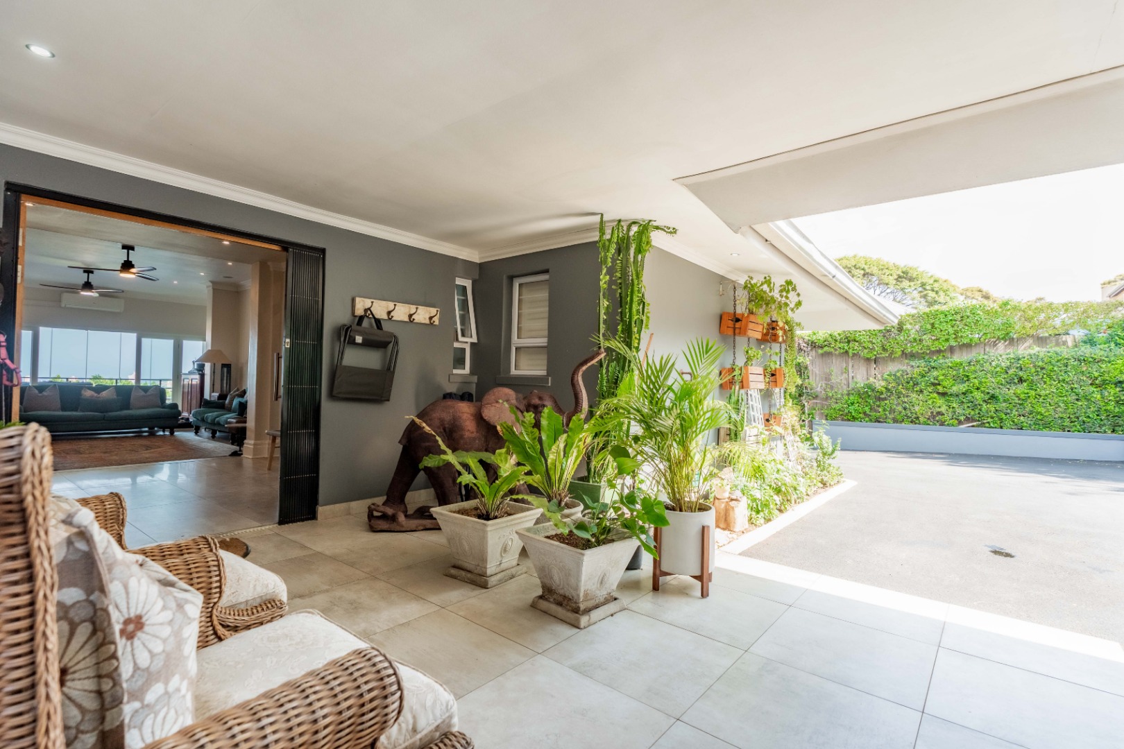 The sun lounge, enclosed with glass sliding doors, opens onto a generous entertainment patio overlooking the newly resurfaced pool, creating an ideal space to unwind and take in Durban’s breath-taking skyline.