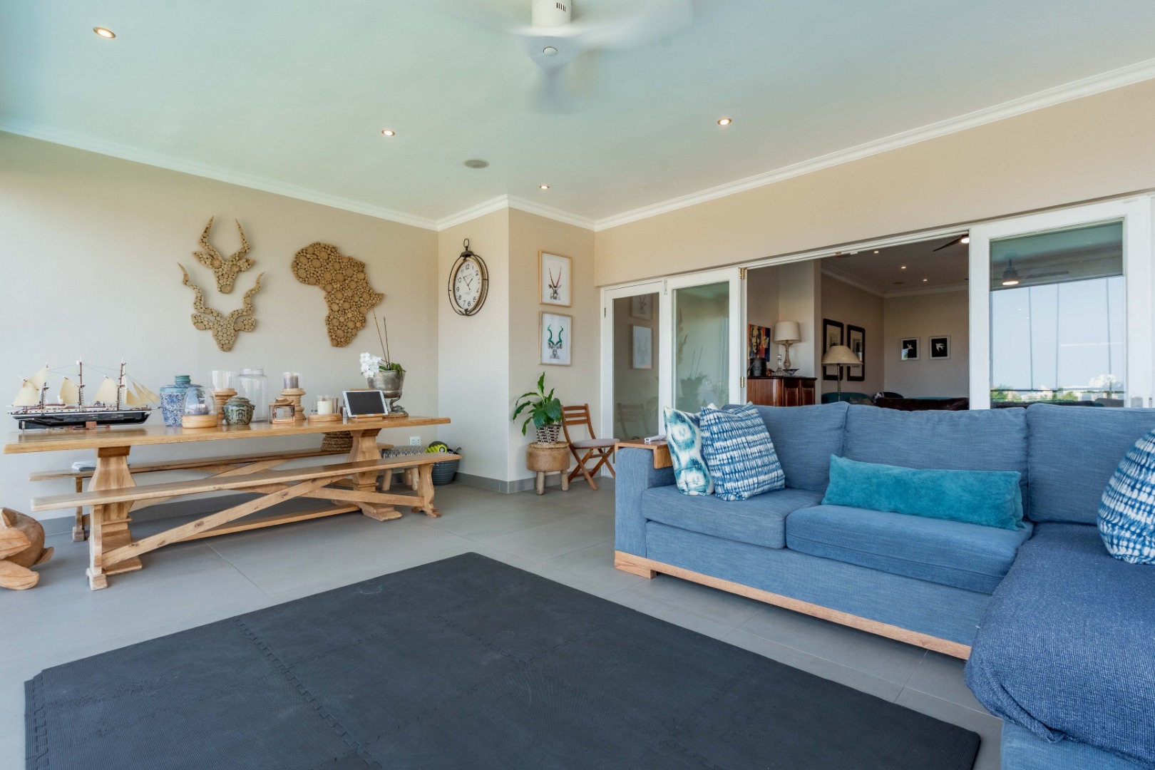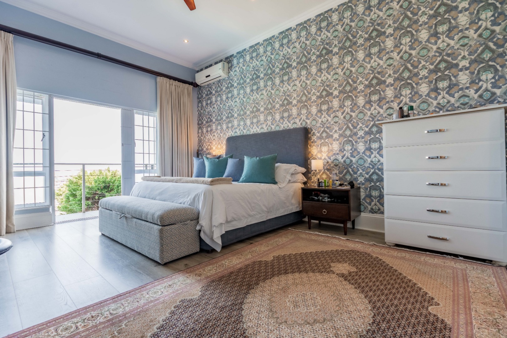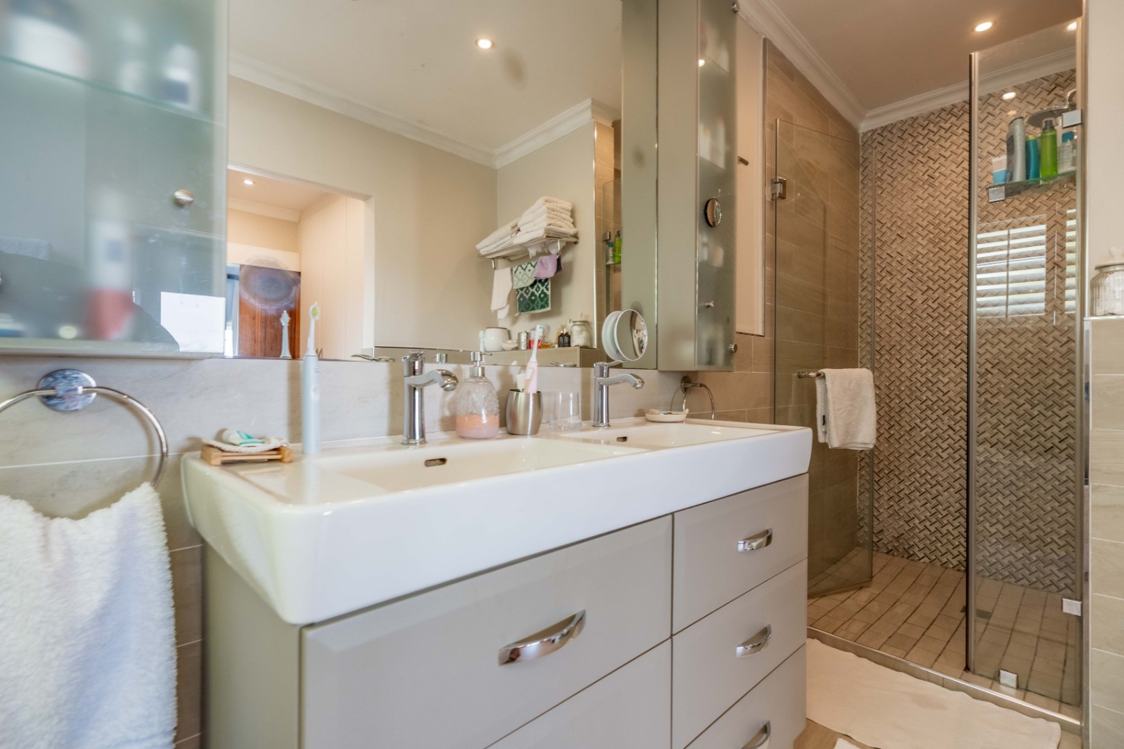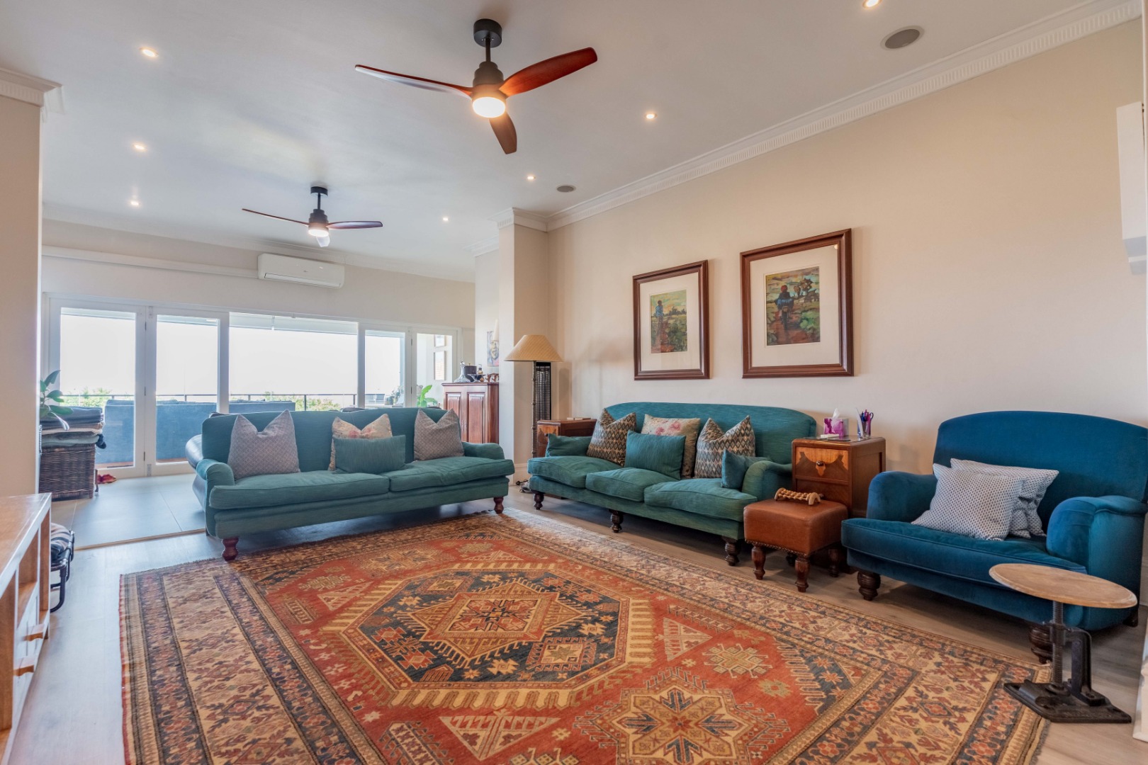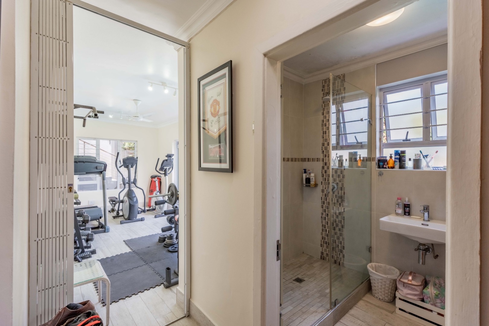 The sun lounge, enclosed with glass sliding doors, opens onto a generous entertainment patio overlooking the newly resurfaced pool, creating an ideal space to unwind and take in Durban’s breath-taking skyline.