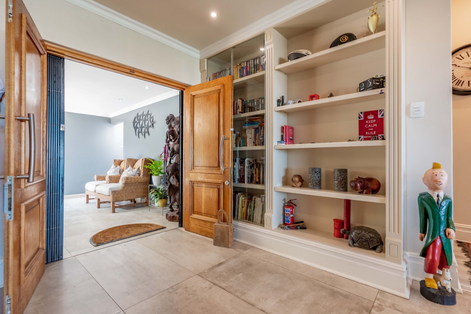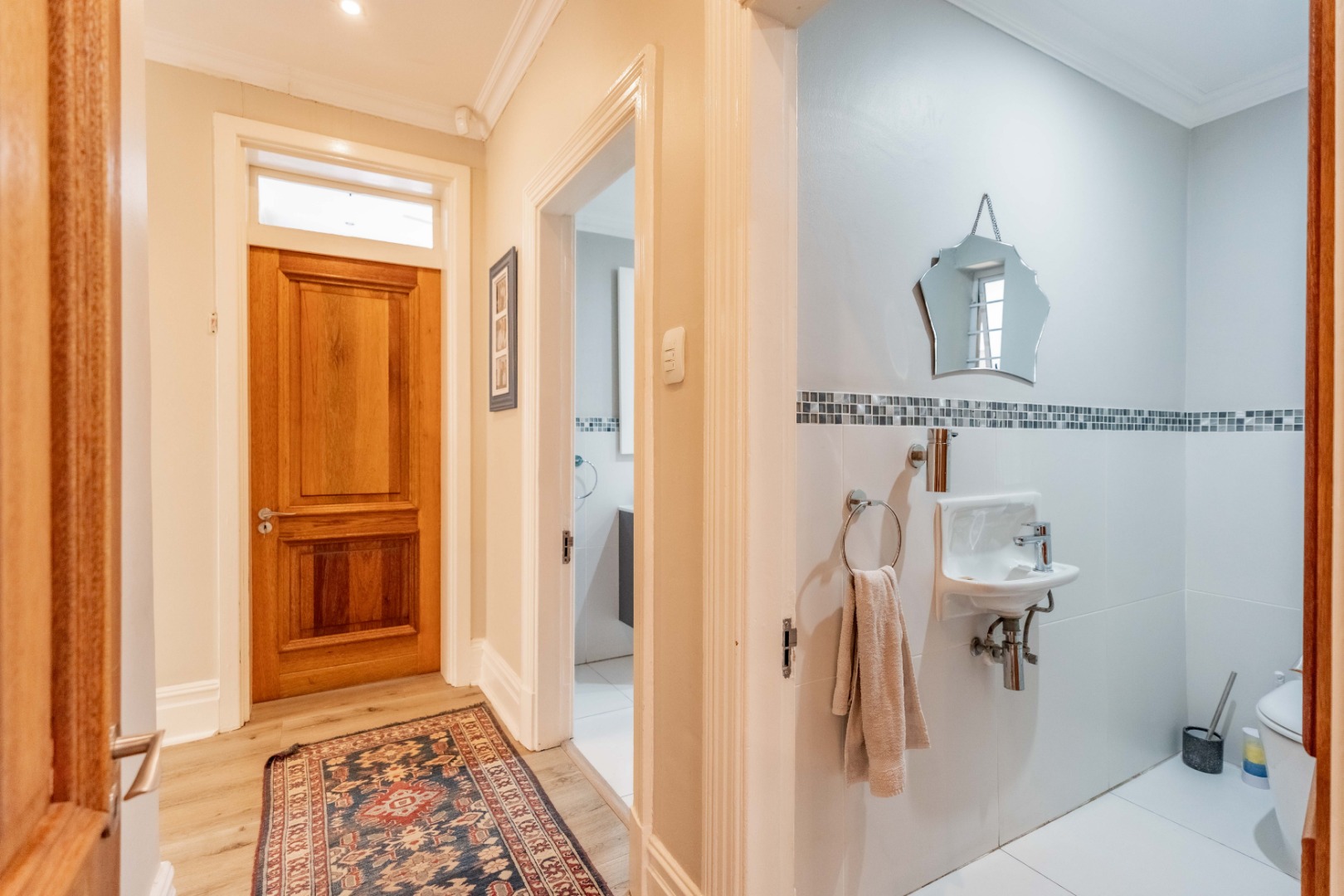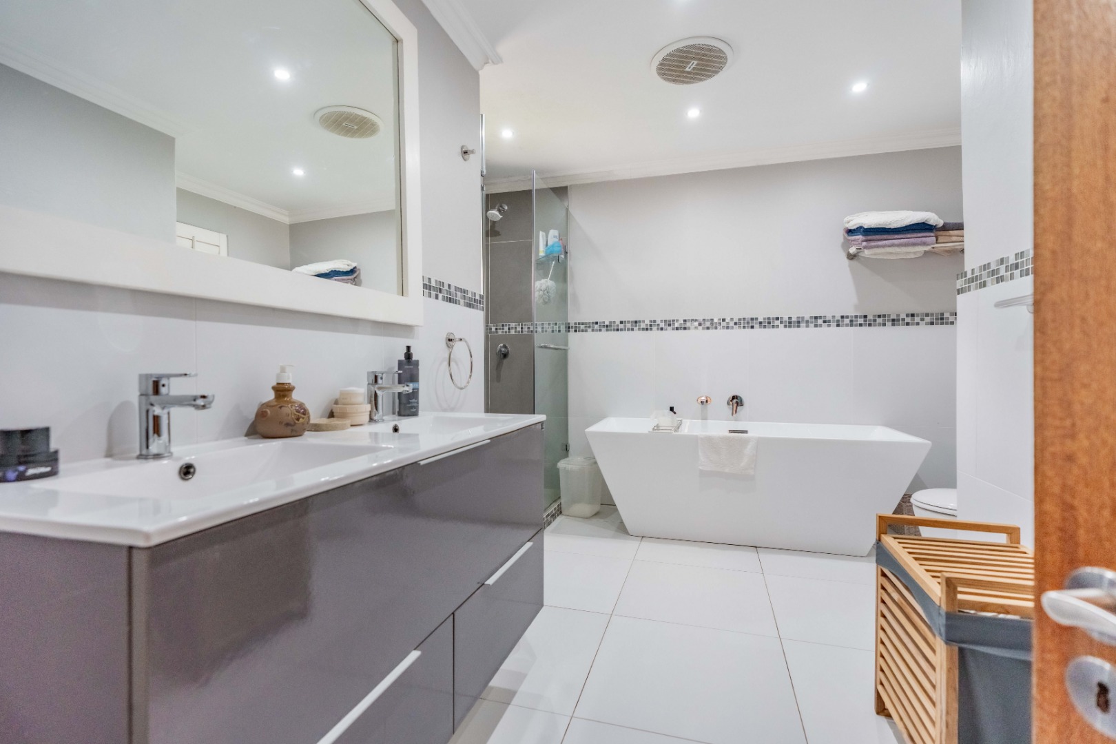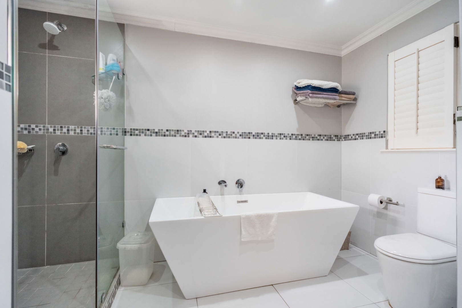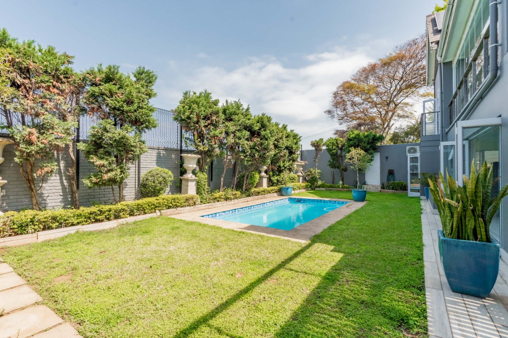 The sun lounge, enclosed with glass sliding doors, opens onto a generous entertainment patio overlooking the newly resurfaced pool, creating an ideal space to unwind and take in Durban’s breath-taking skyline.