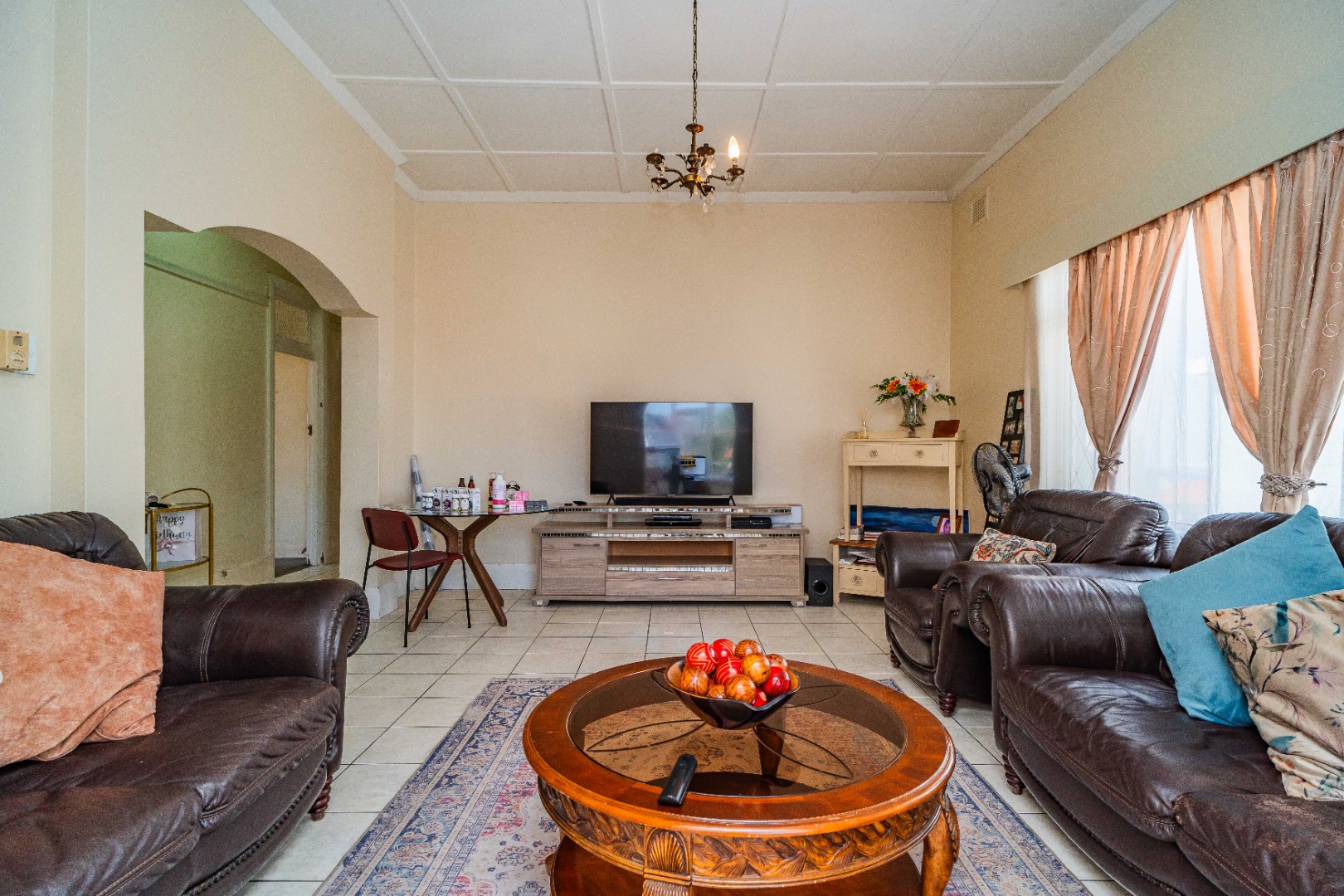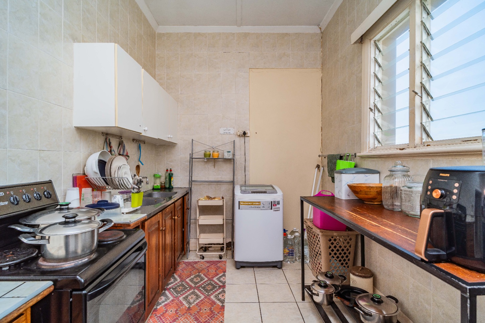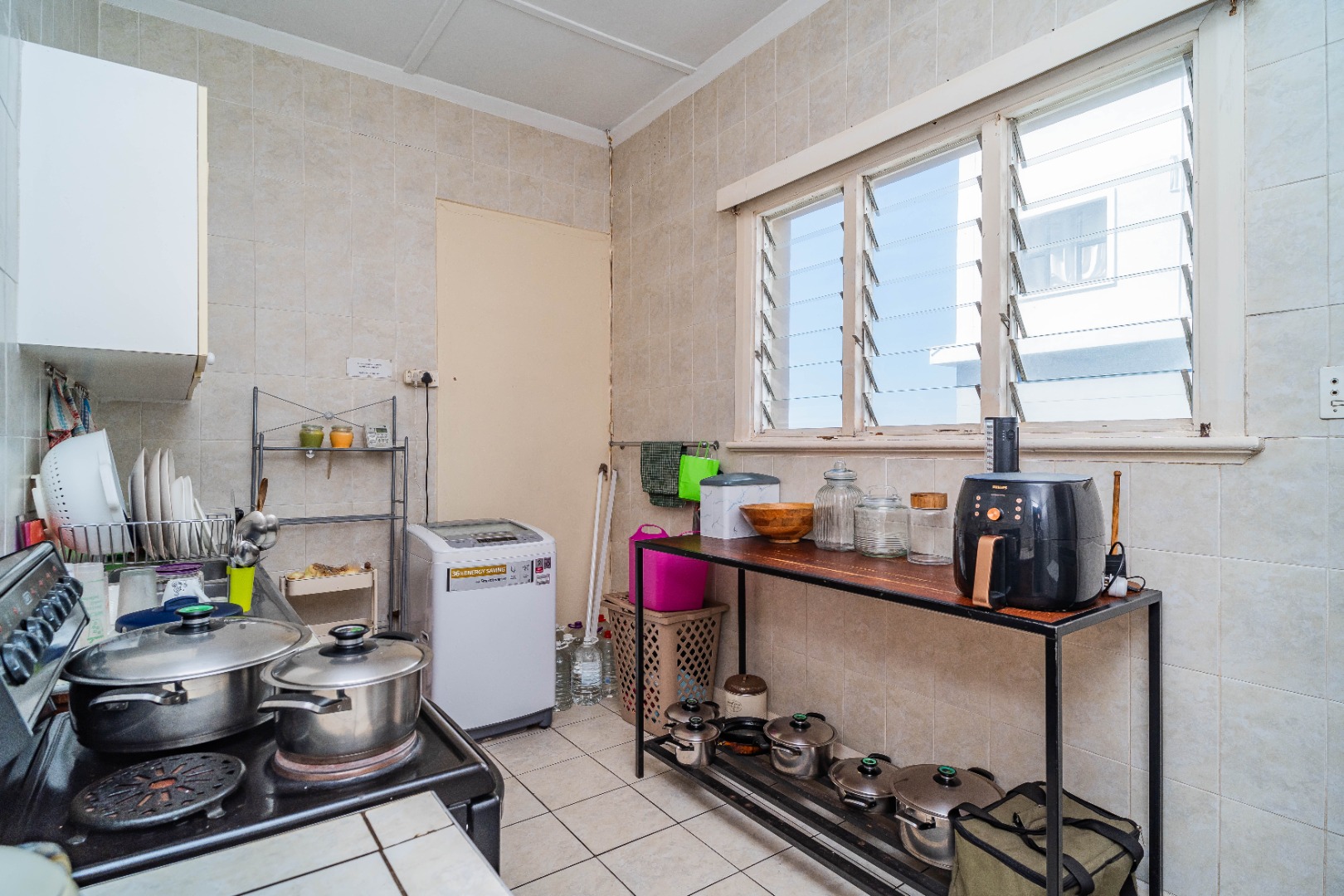 There are 1.5 bathrooms for practicality and comfort. The kitchen is spacious and has all amenities with a separate pantry. There is a spacious lounge area, perfect for relaxation.