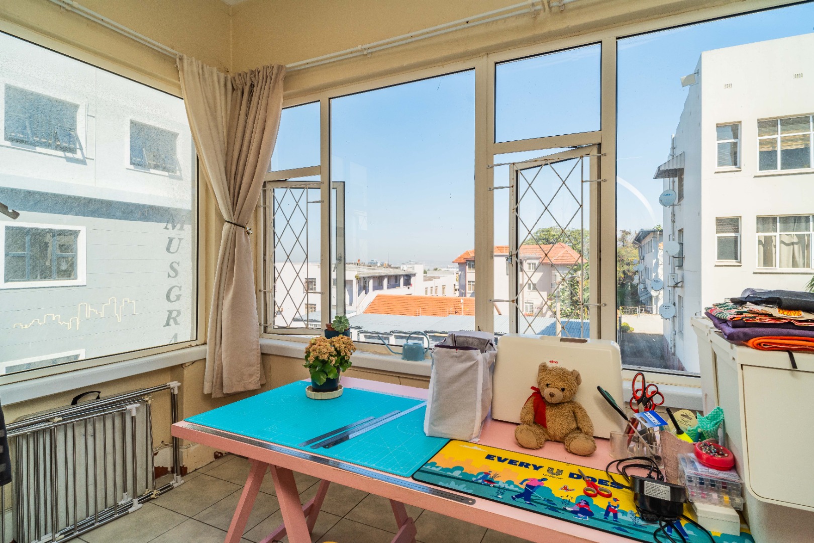 UPSTAIRS – Spacious & Versatile Living space of 141sqm. With stunning city views from multiple vantage points. You will find three generously sized bedrooms, all with built-in cupboards. There is an enclosed balcony, which can serve as a half-bedroom orhome office, or sunroom.