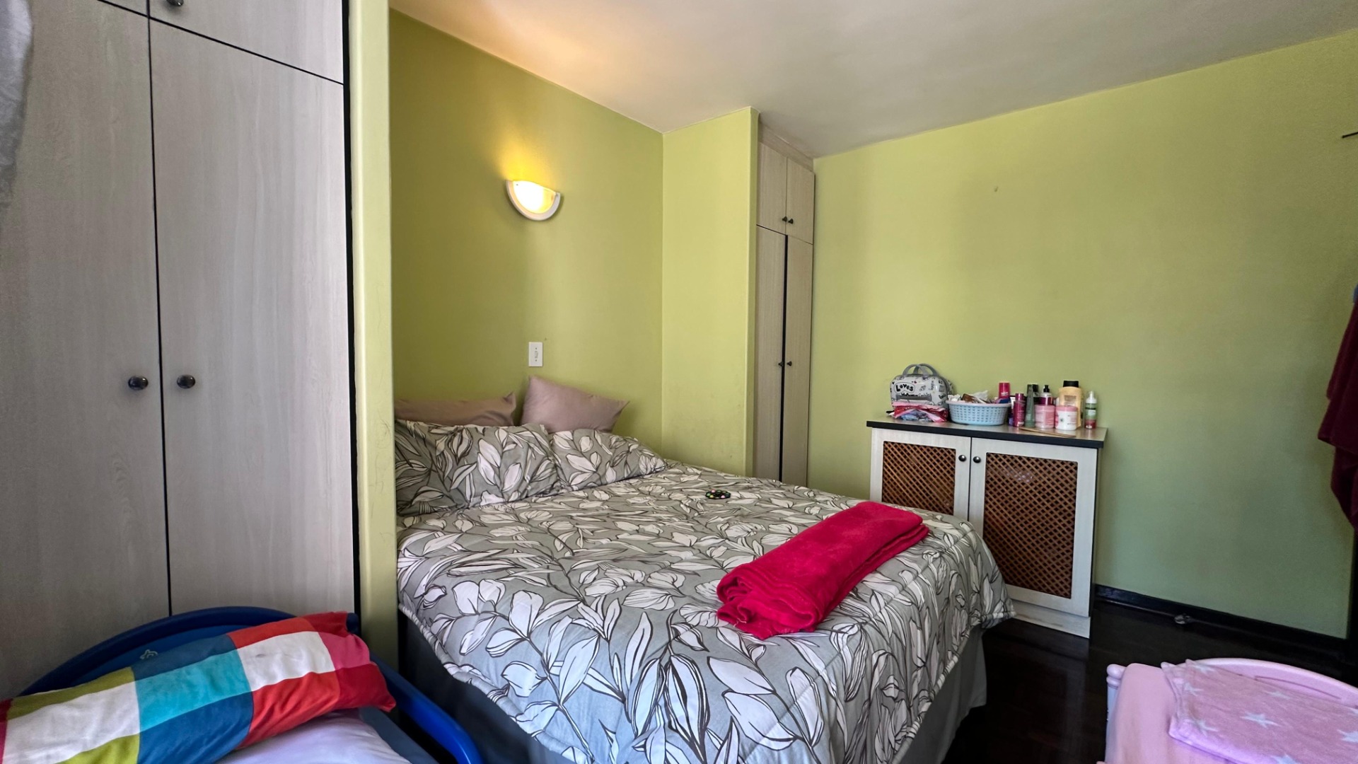 This apartment offers three comfortable bedrooms and two bathrooms, including one ensuite for added privacy and convenience. A guest toilet is also available. The design prioritizes functionality and separate storage room, catering to modern living needs.