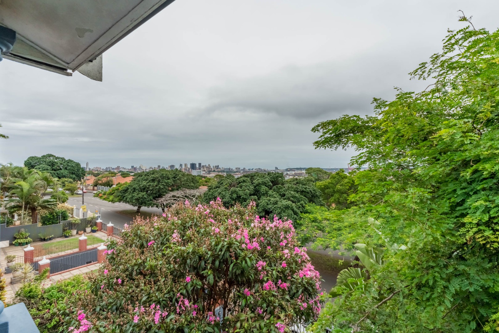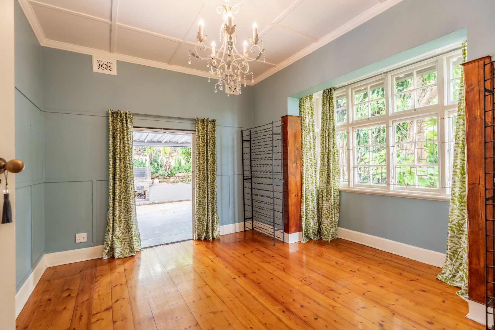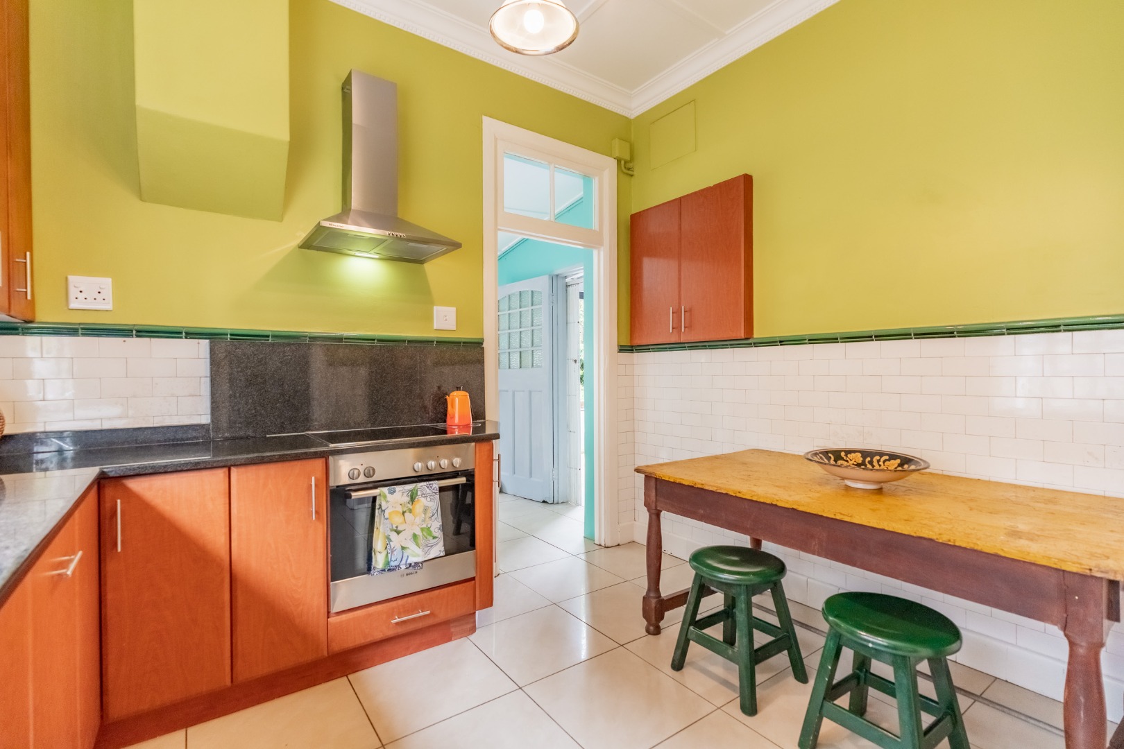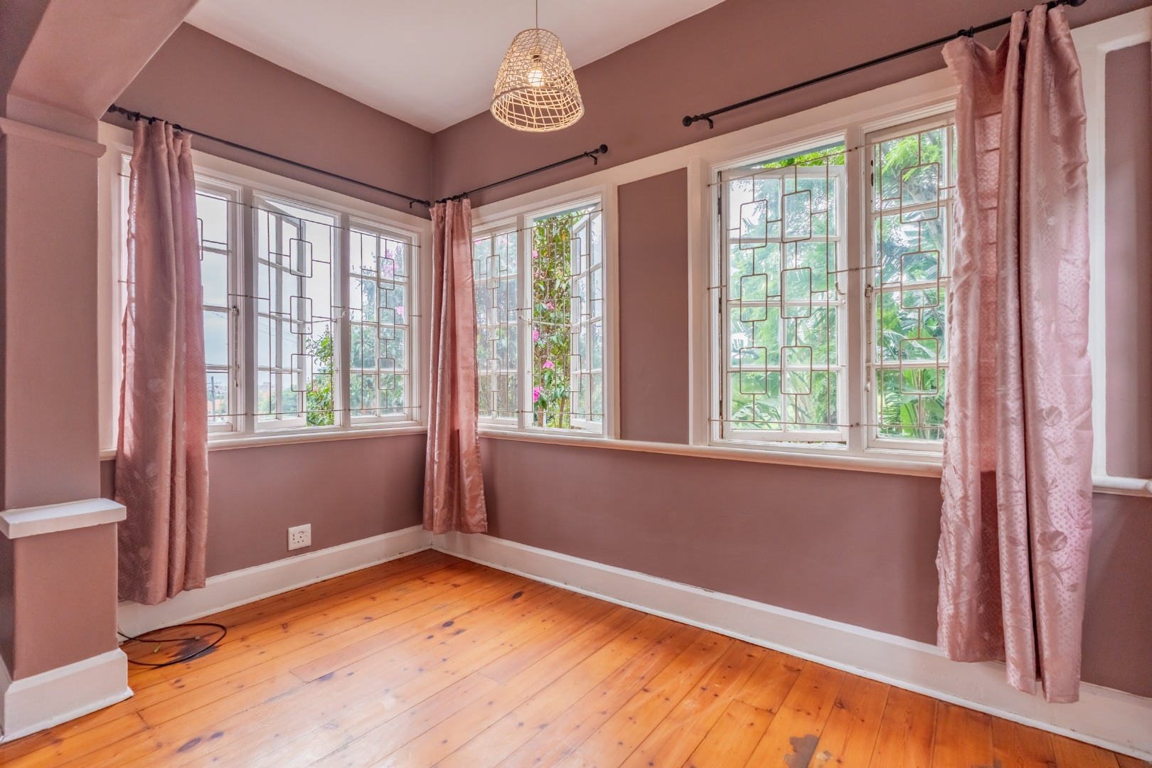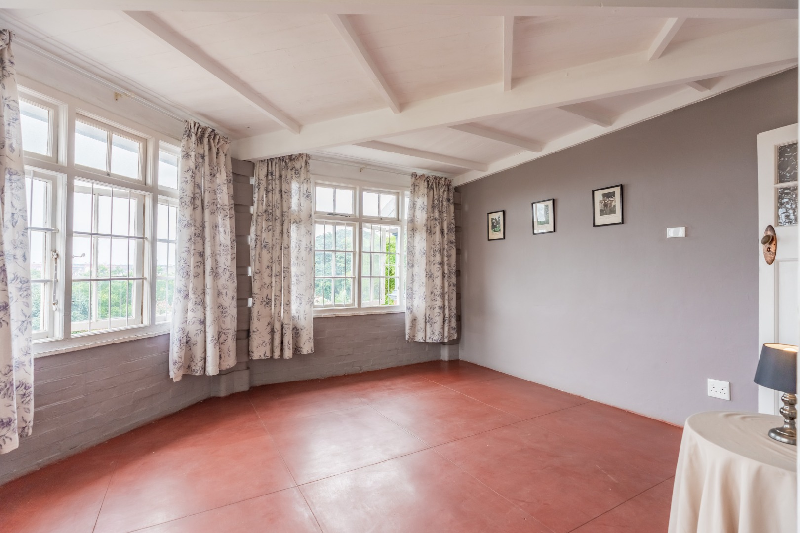 Well-maintained wooden floors run throughout the home, complemented by a grand wooden staircase leading upstairs. The upper level offers three bedrooms and two bathrooms. Two of the bedrooms are air-conditioned and fitted with built-in cupboards. The main bedroom has doors that open to a balcony with a lovely view towards the harbour. One bathroom is very spacious and has a classic ball and claw bath, shower, basin and loo, and the second has a bath, basin and loo. A large linen cupboard is conveniently positioned on the landing upstairs.