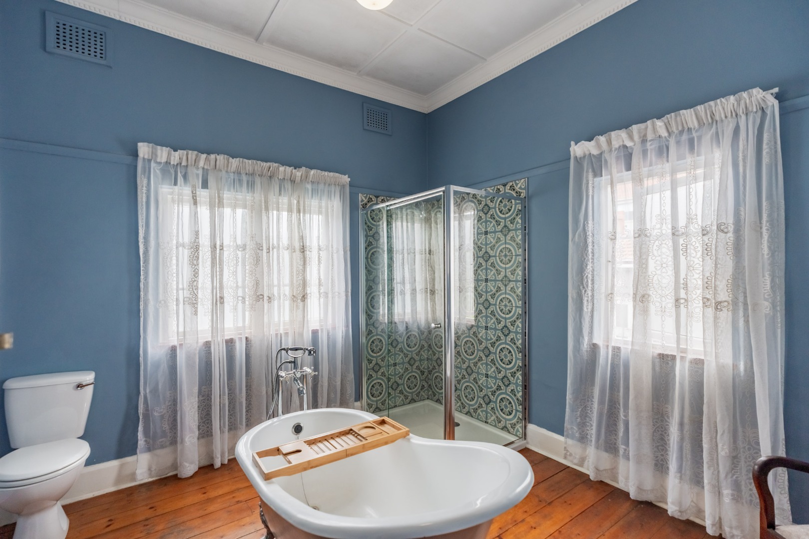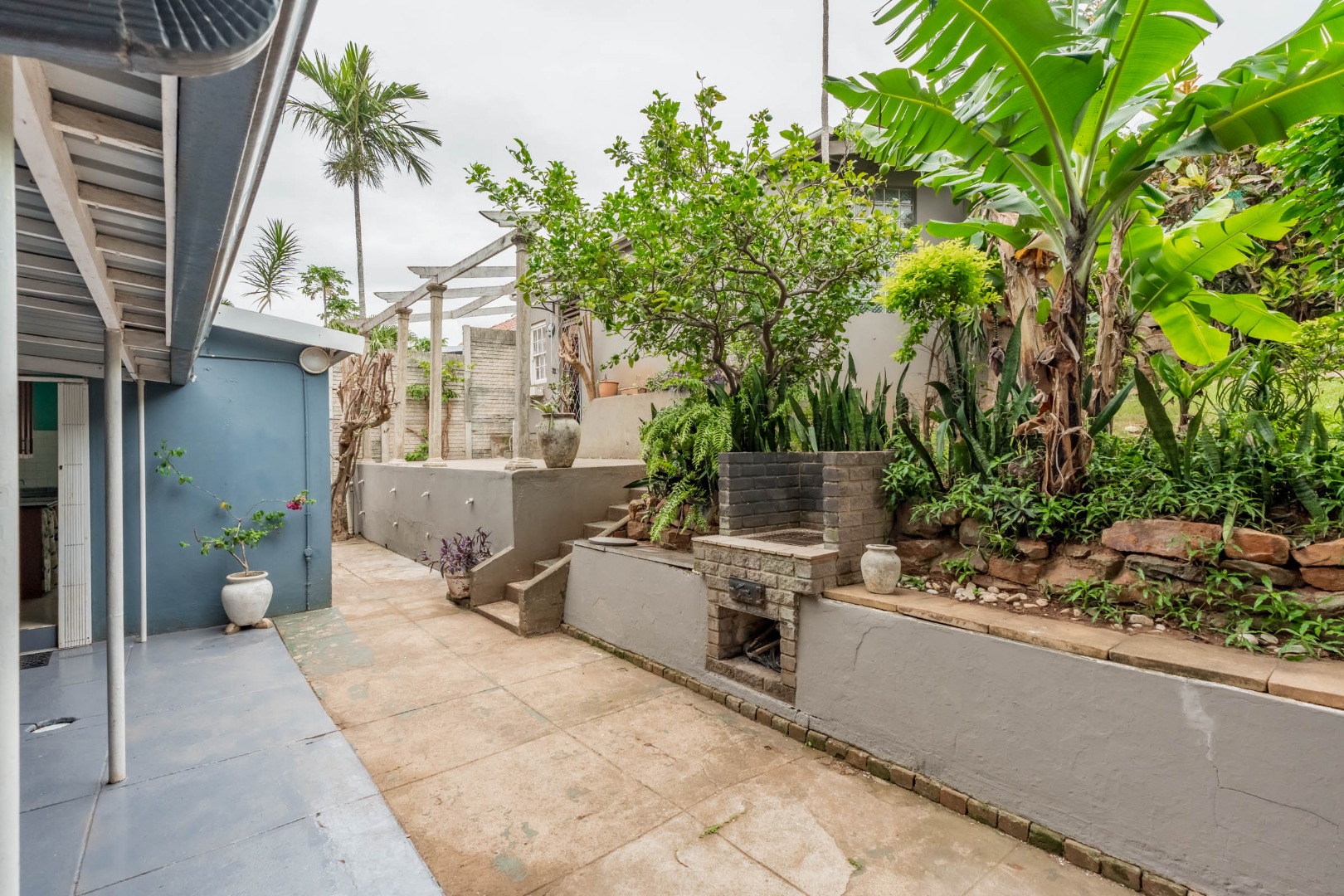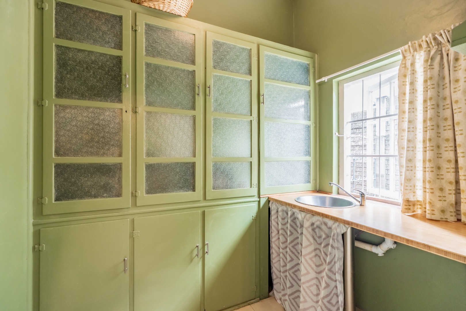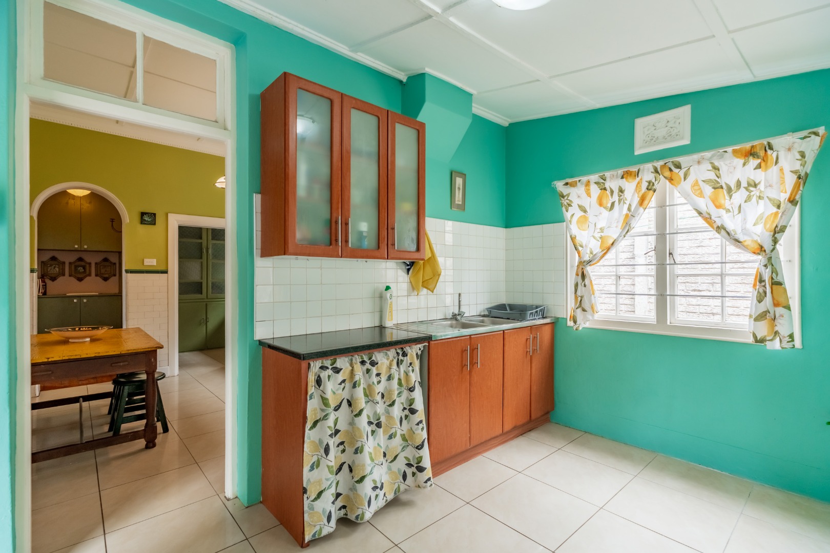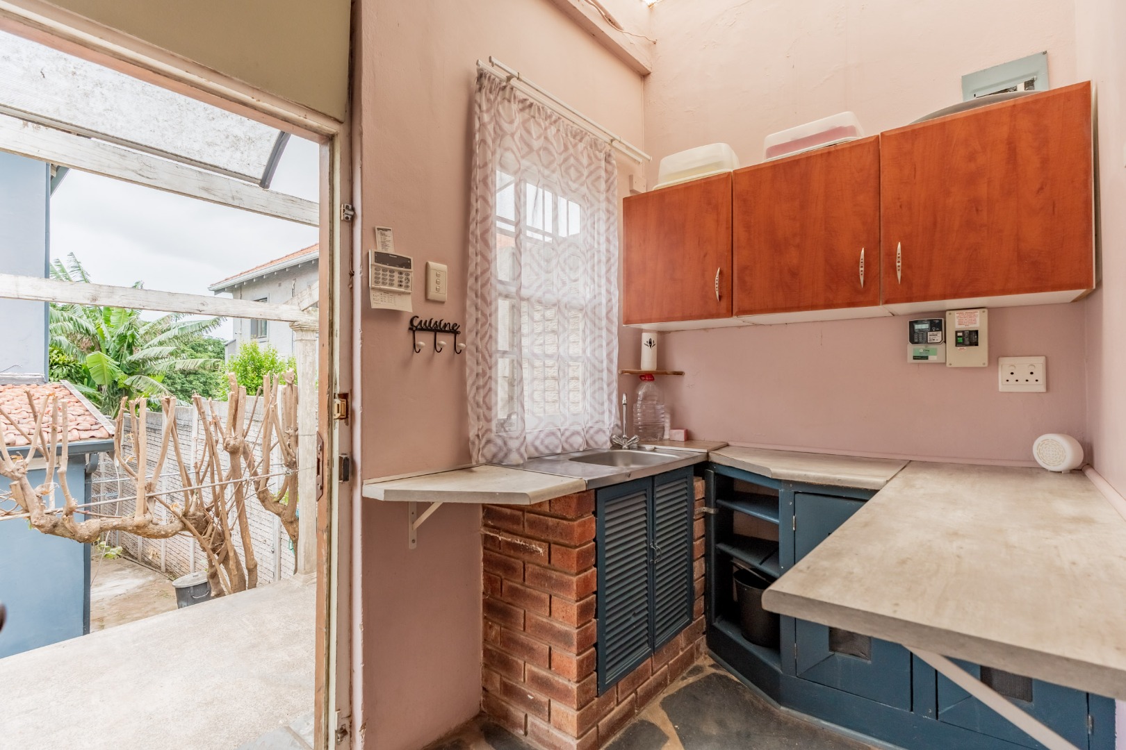 Well-maintained wooden floors run throughout the home, complemented by a grand wooden staircase leading upstairs. The upper level offers three bedrooms and two bathrooms. Two of the bedrooms are air-conditioned and fitted with built-in cupboards. The main bedroom has doors that open to a balcony with a lovely view towards the harbour. One bathroom is very spacious and has a classic ball and claw bath, shower, basin and loo, and the second has a bath, basin and loo. A large linen cupboard is conveniently positioned on the landing upstairs.