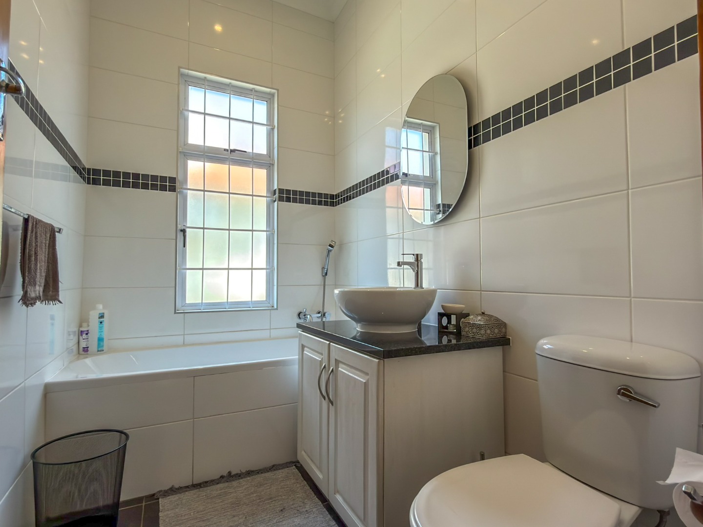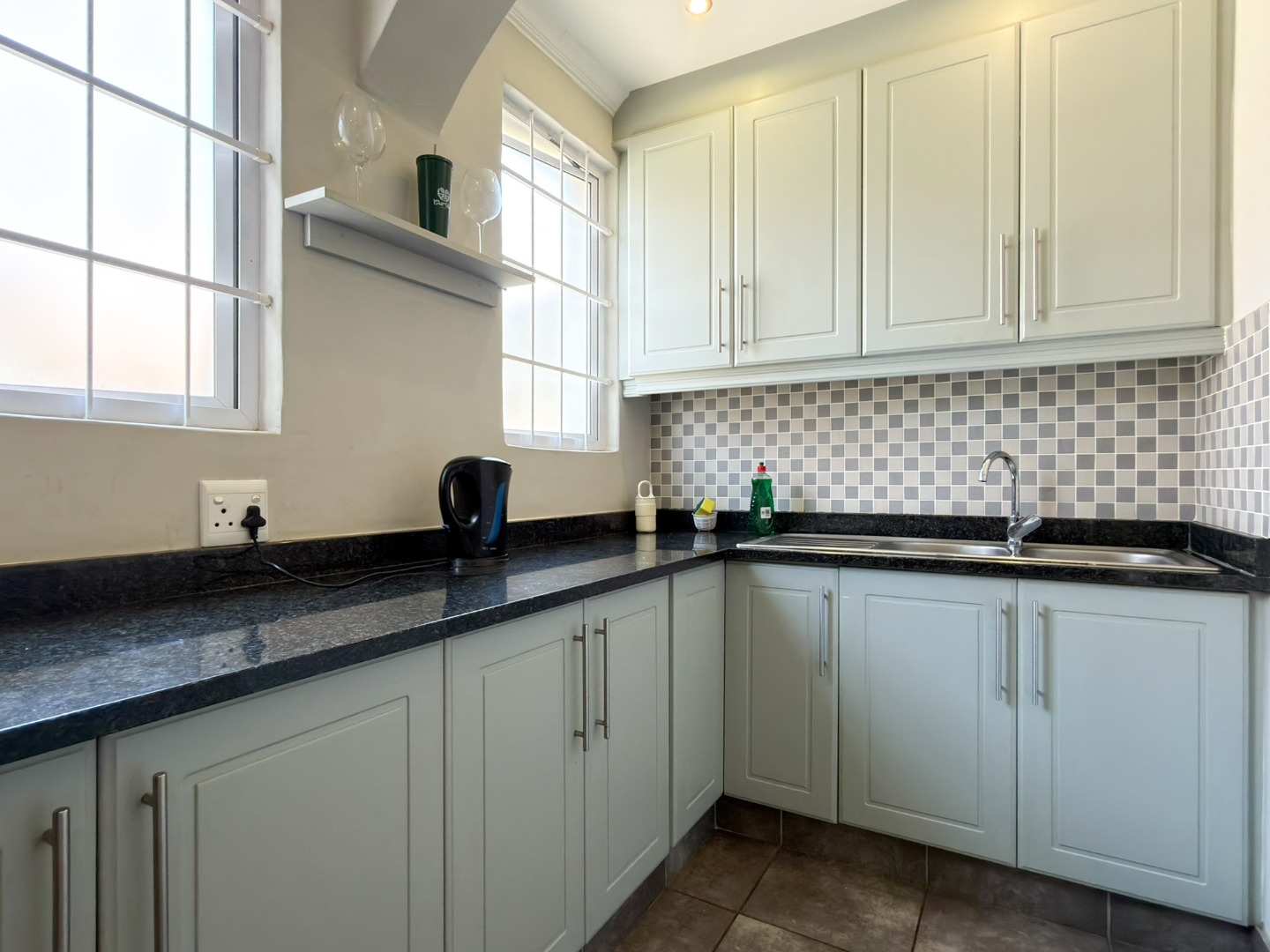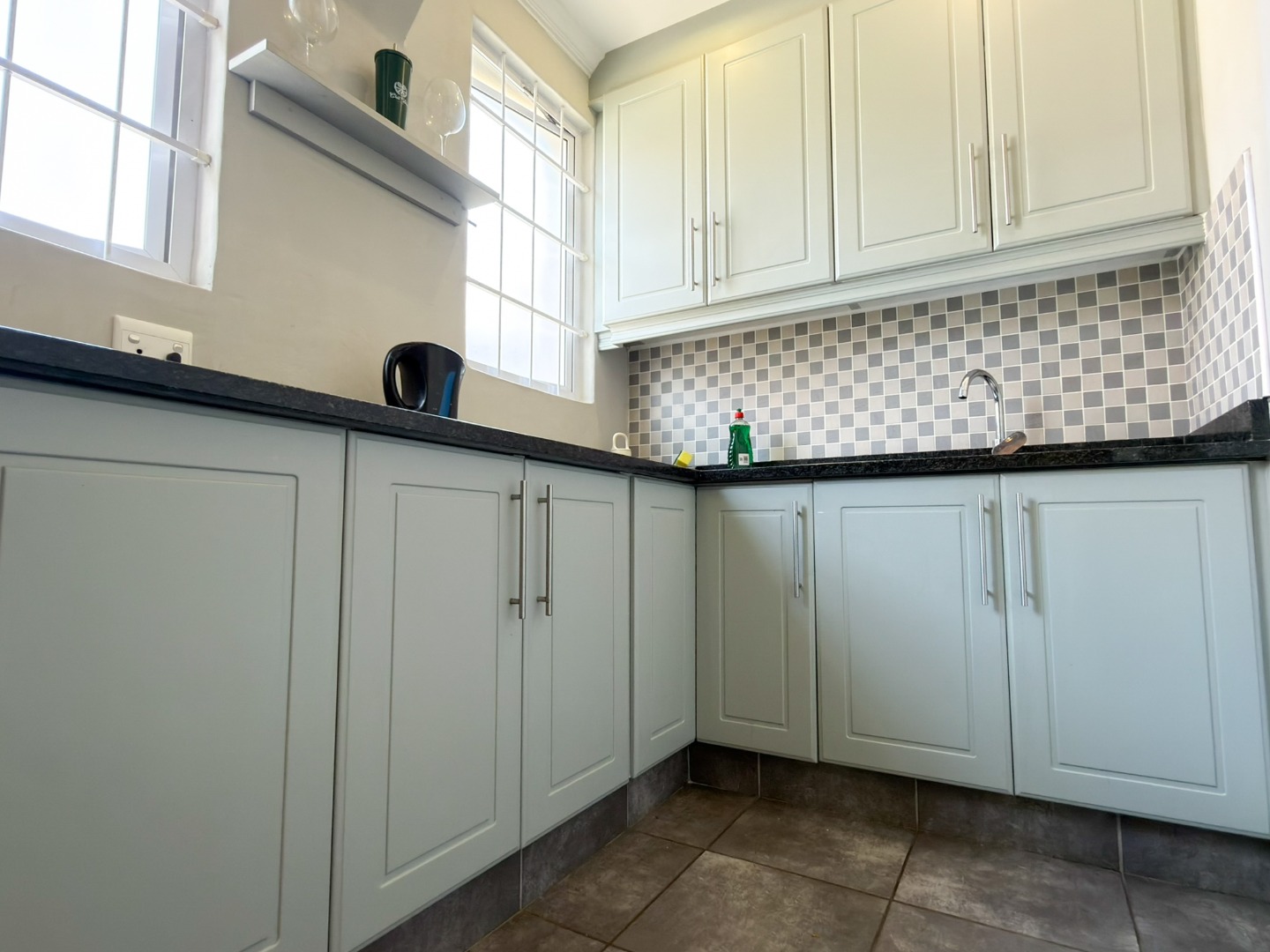 The residence also boasts a well-appointed kitchen with built-in cupboards, an extractor, hob, oven, and granite countertops. Outside, a generous yard provides ample space for entertaining, and a flatlet at the back offers added versatility.