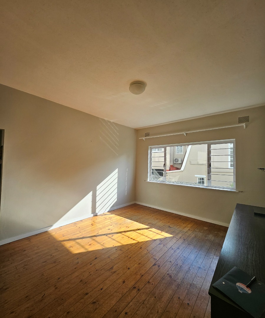 Enter into this ground floor apartment, wooden flooring. Upon entry you will find to the left the kitchen fitted with cupboards and the bathroom which needs some attention, and the large bedroom complete with floor to ceiling cupboards. This apartment waits for you to add your personal touch and turn it into your oasis away from the busy city life. Having large windows allowing for lots of natural light in both lounge and bedroom.