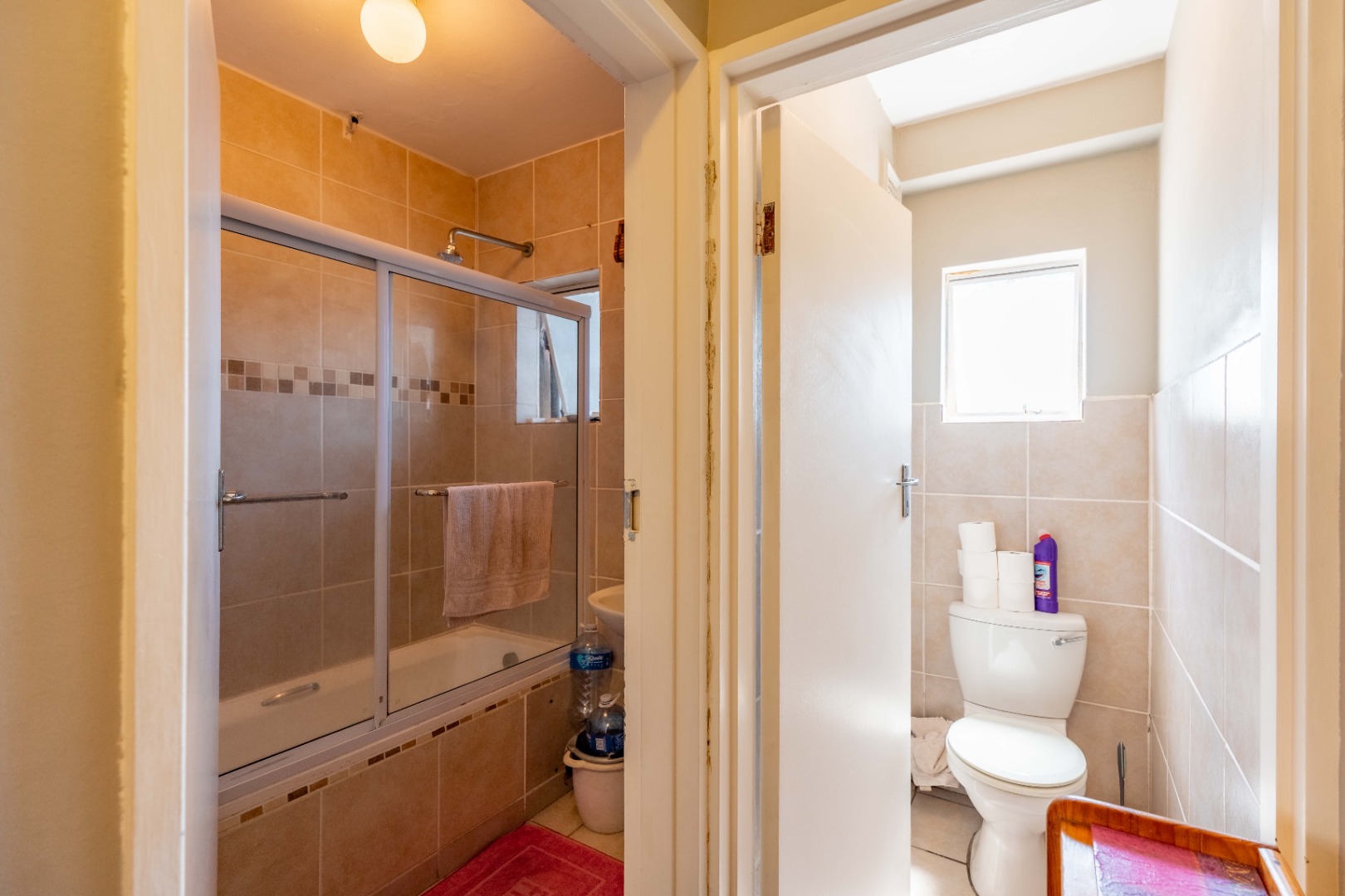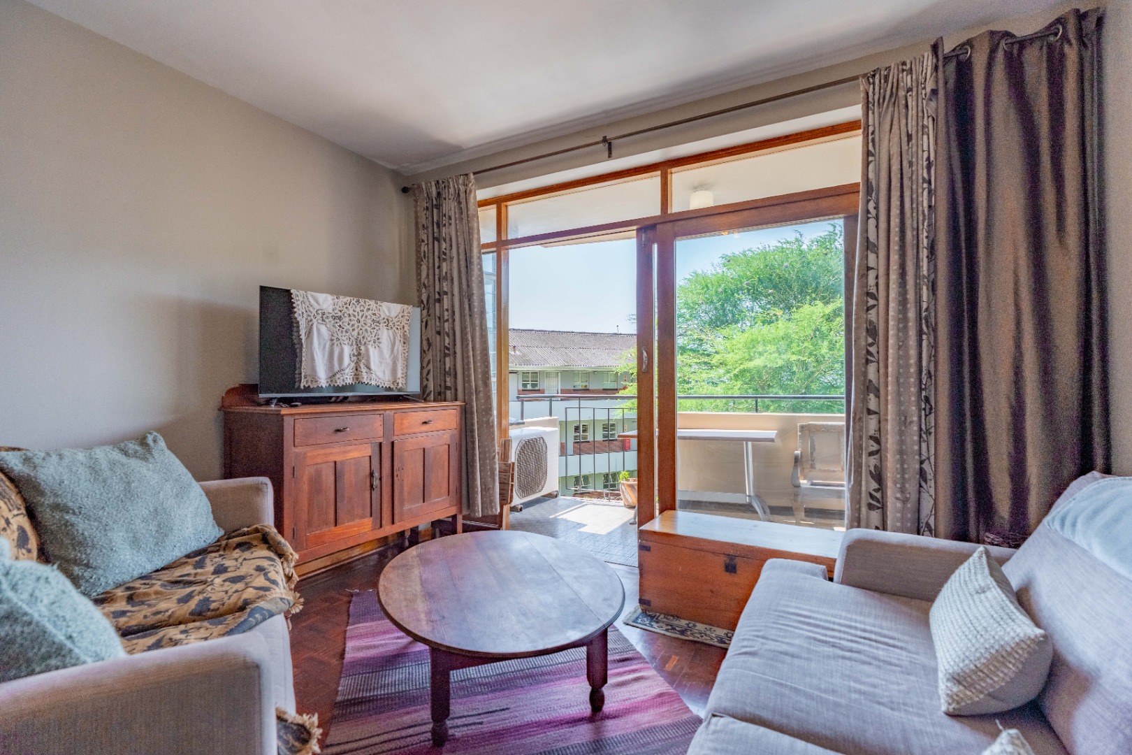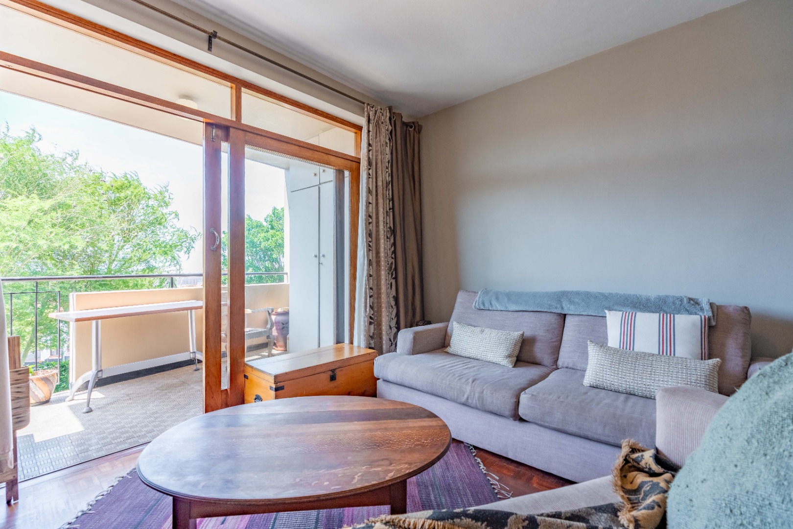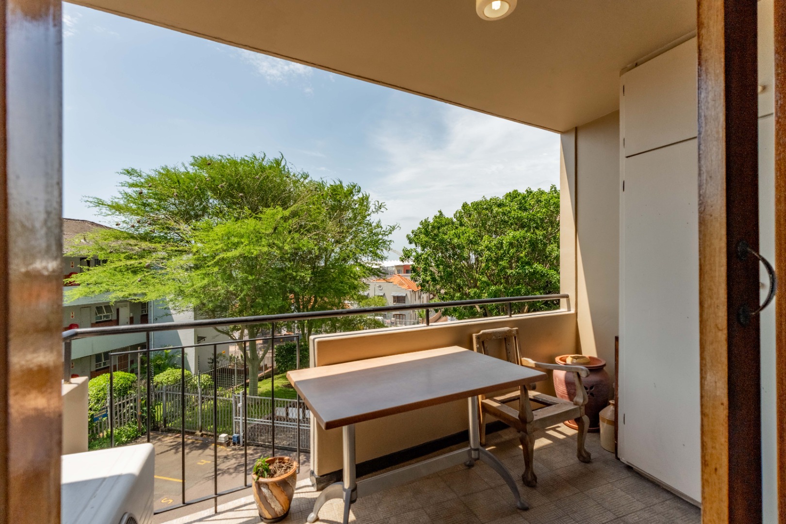 The main bedroom is both spacious and comfortable, featuring ample built-in cupboard space and the added luxury of air-conditioning to ensure year-round comfort. For added practicality, the apartment comes with one designated parking bay.