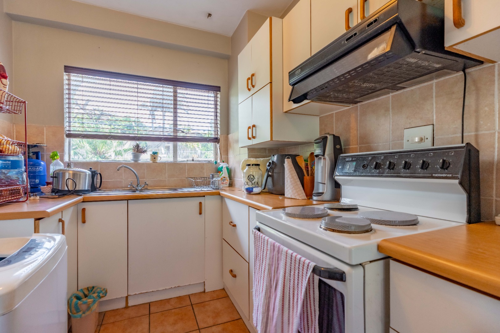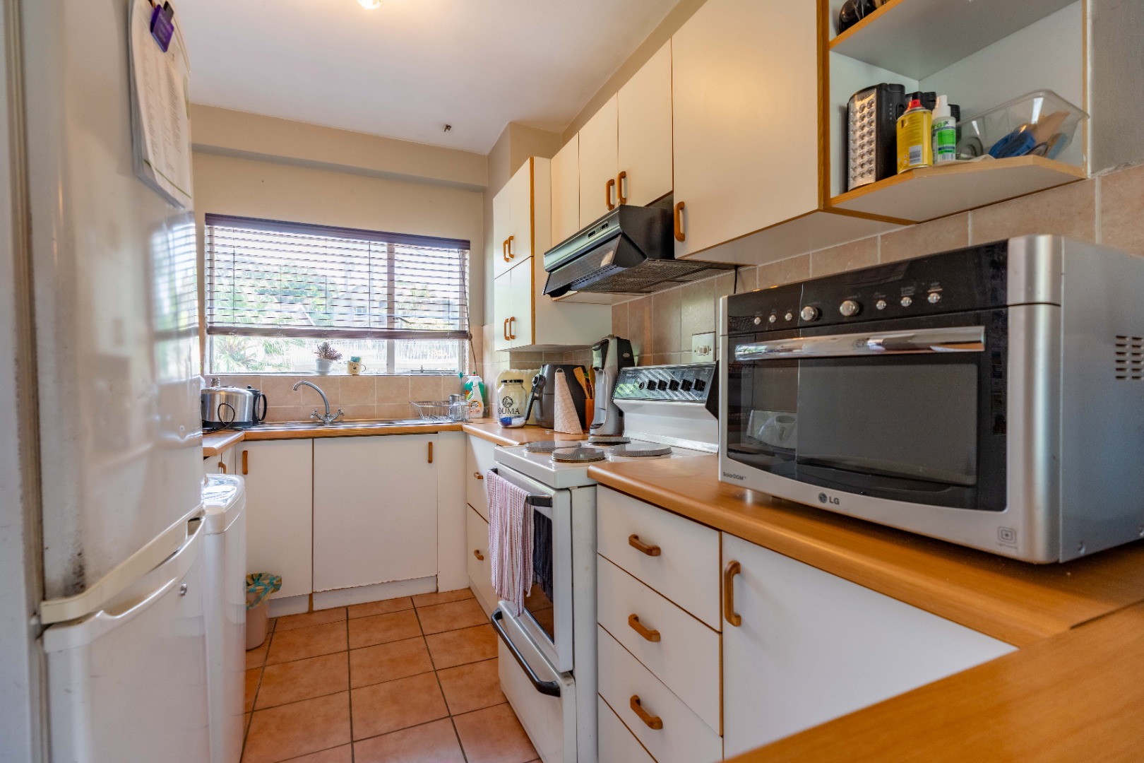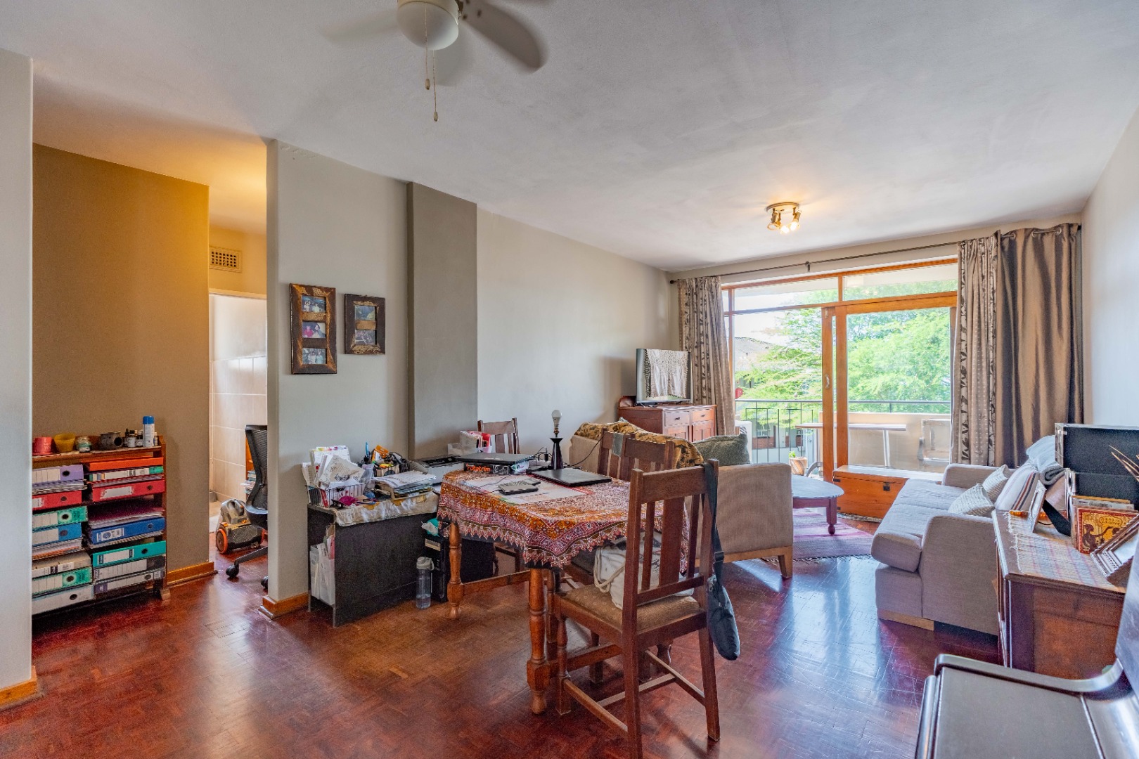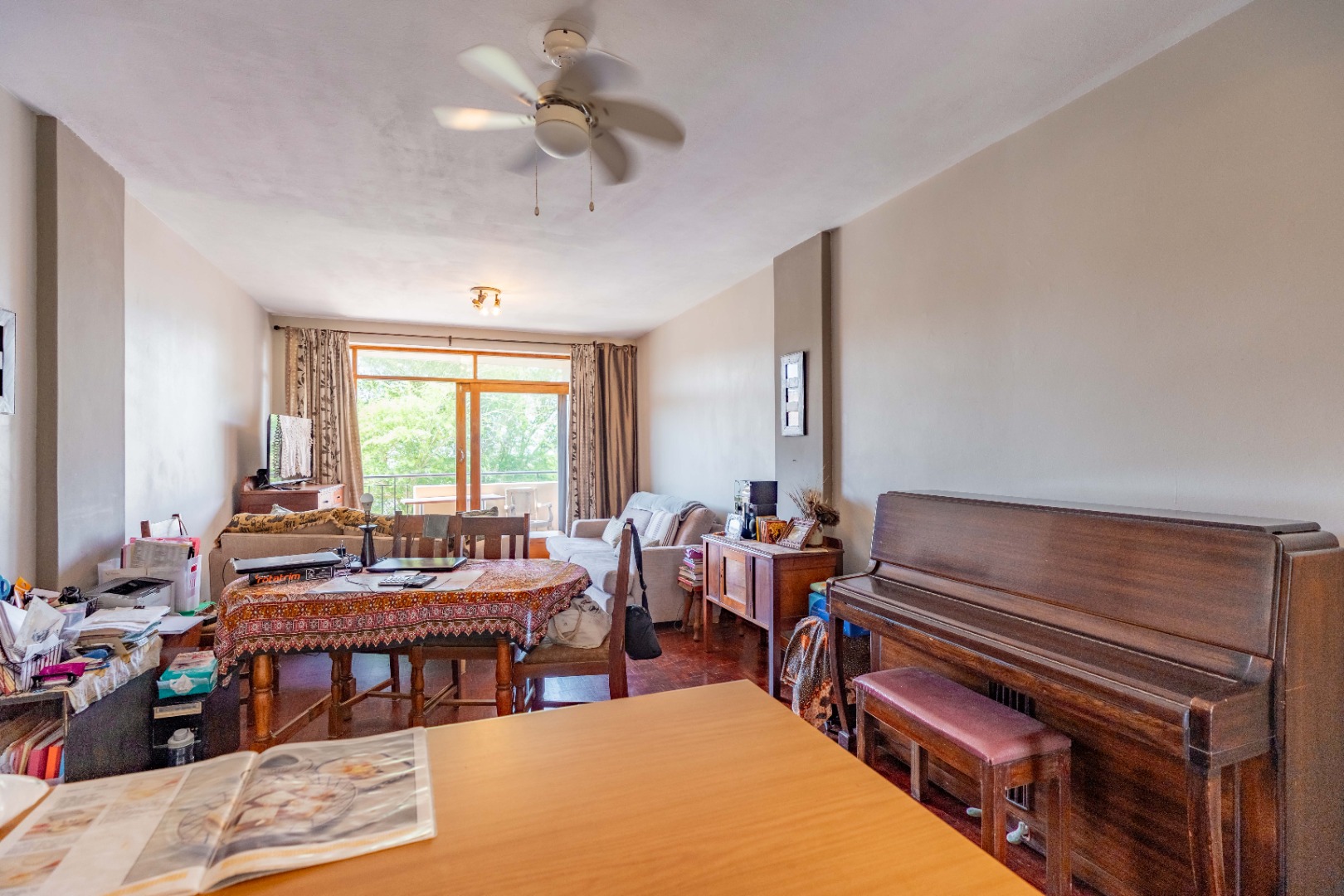 The main bedroom is both spacious and comfortable, featuring ample built-in cupboard space and the added luxury of air-conditioning to ensure year-round comfort. For added practicality, the apartment comes with one designated parking bay.