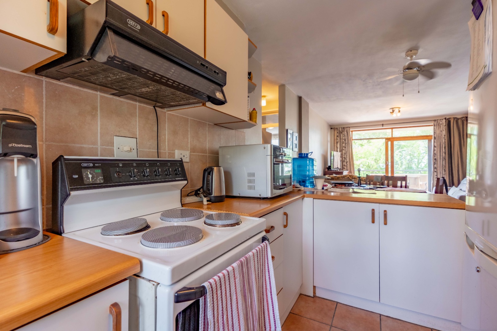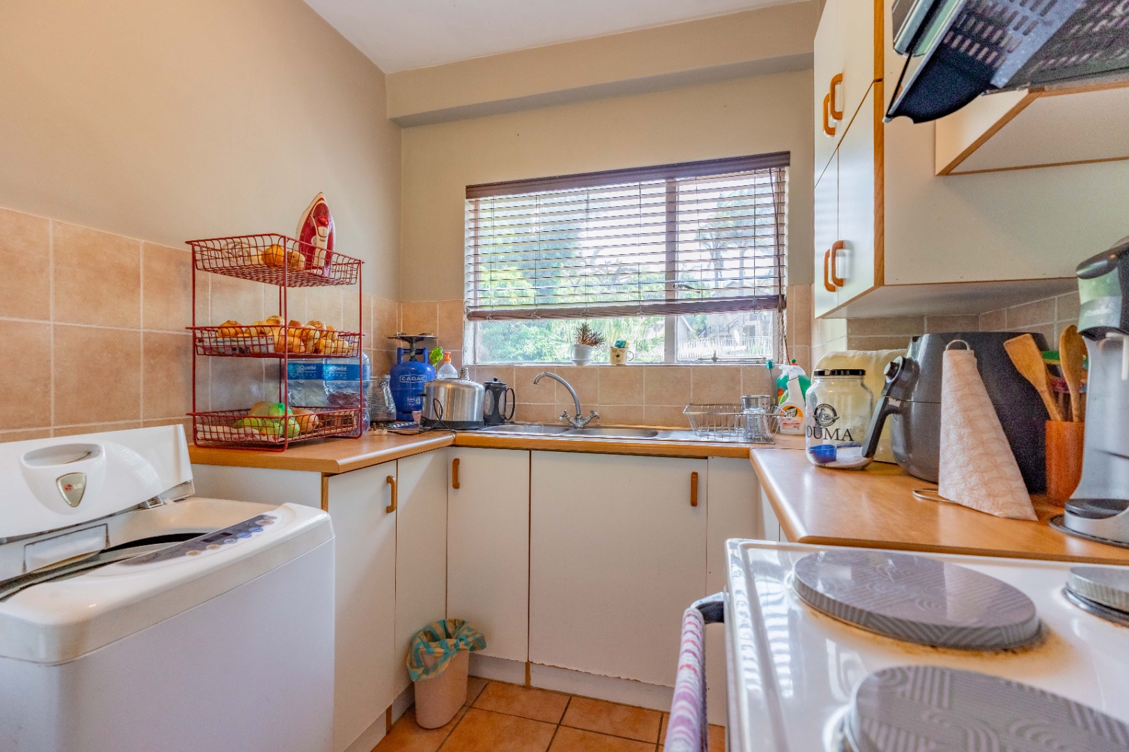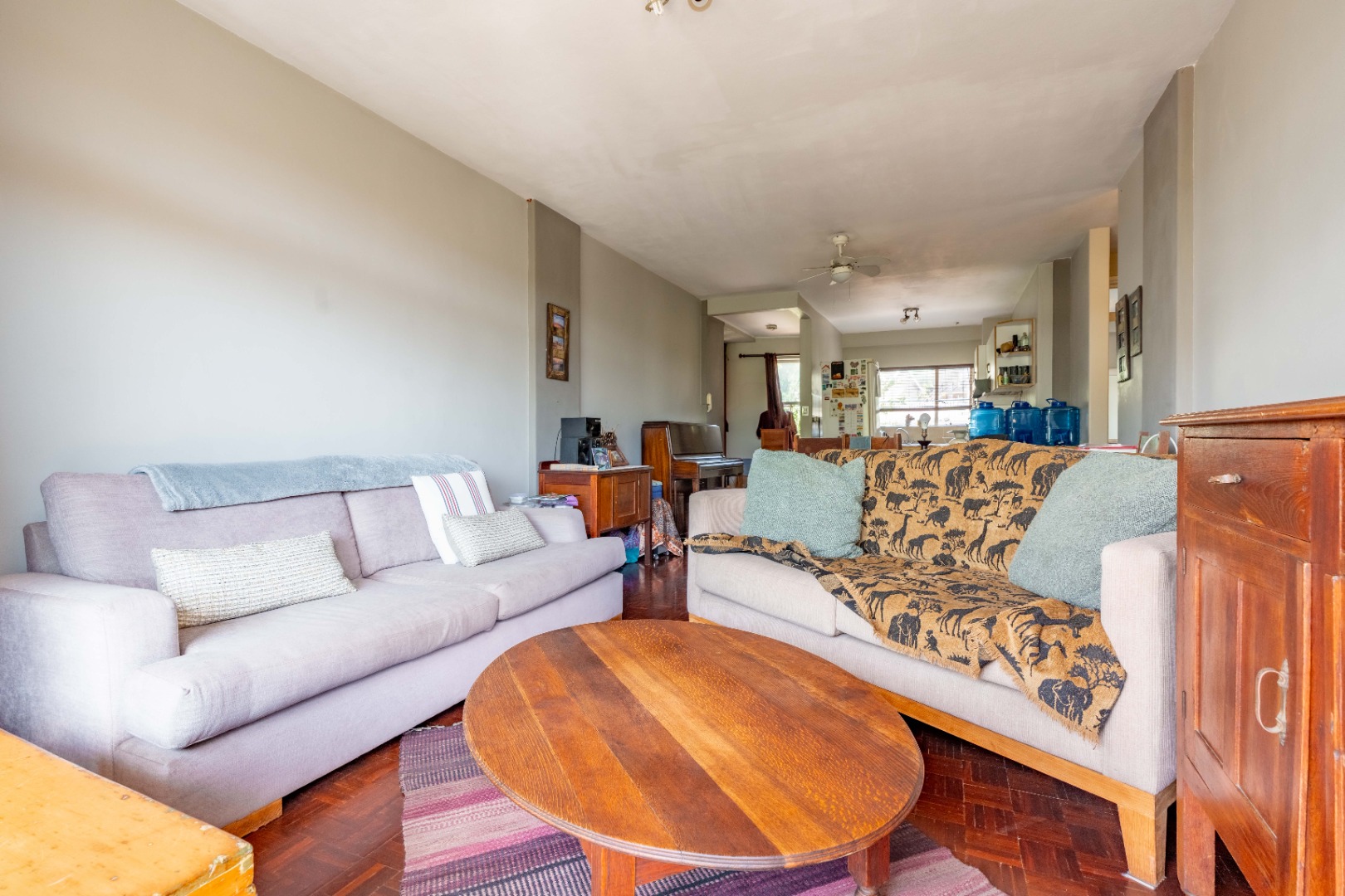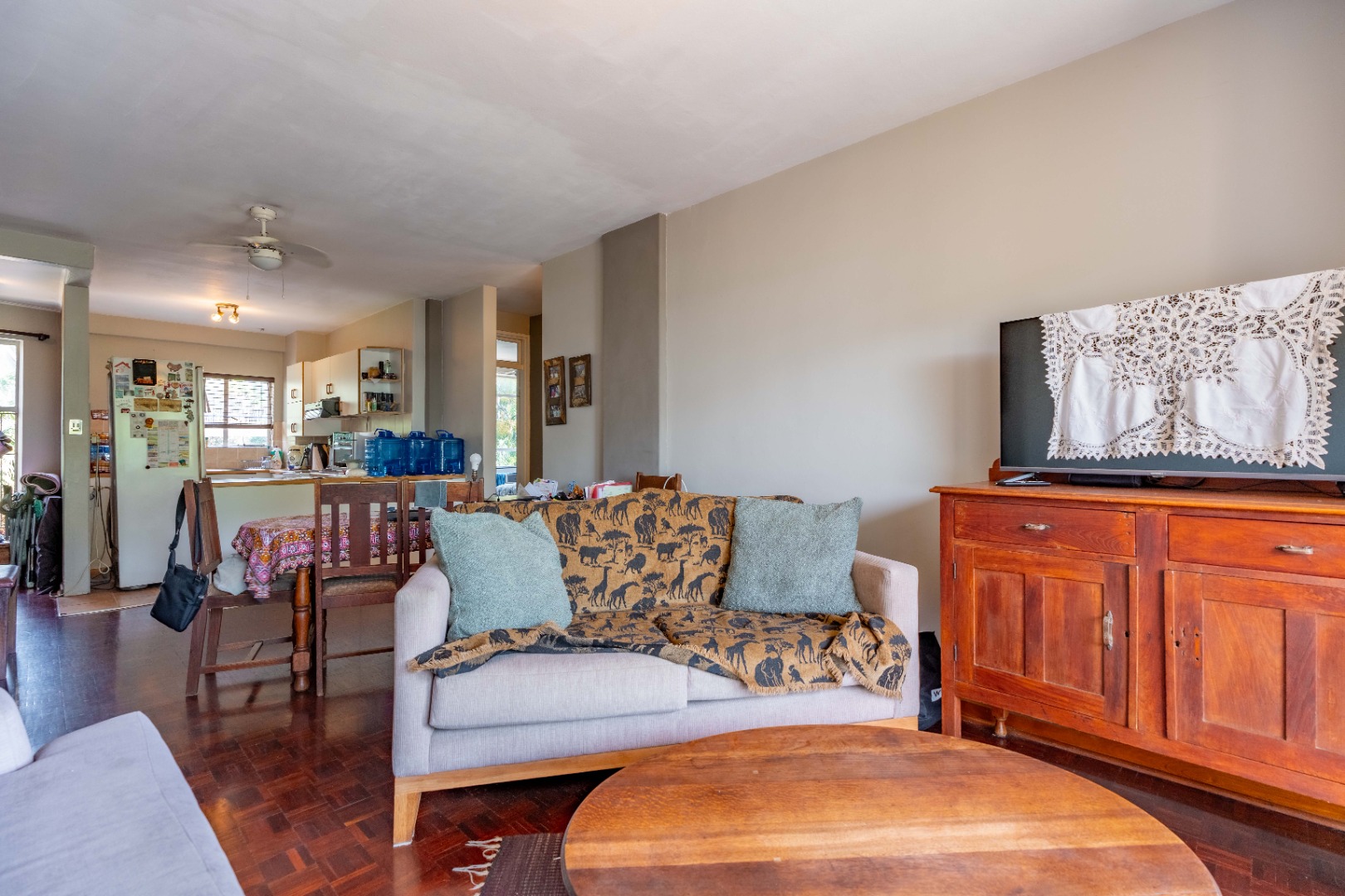 The main bedroom is both spacious and comfortable, featuring ample built-in cupboard space and the added luxury of air-conditioning to ensure year-round comfort. For added practicality, the apartment comes with one designated parking bay.