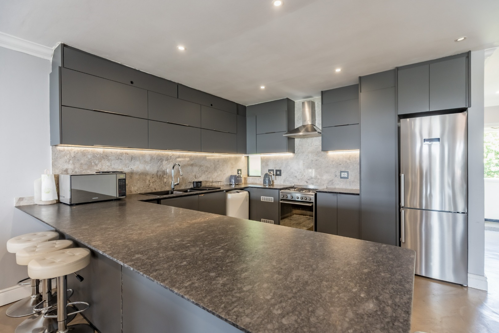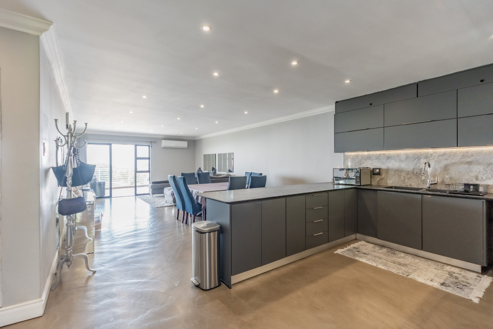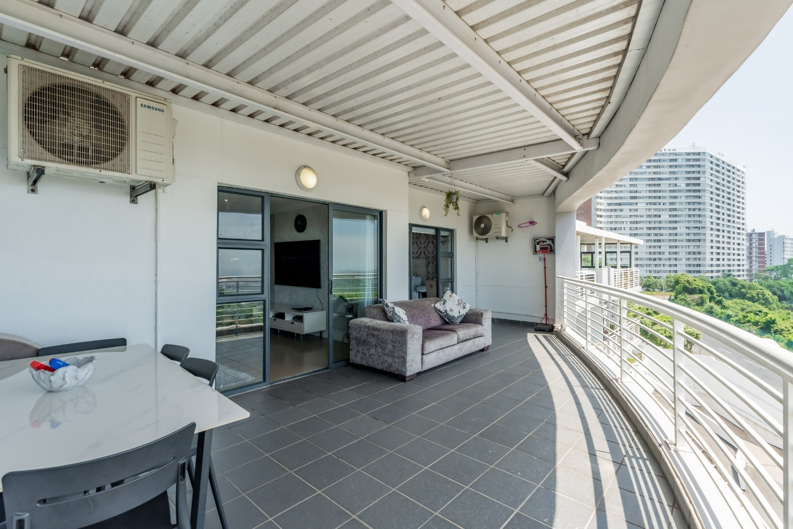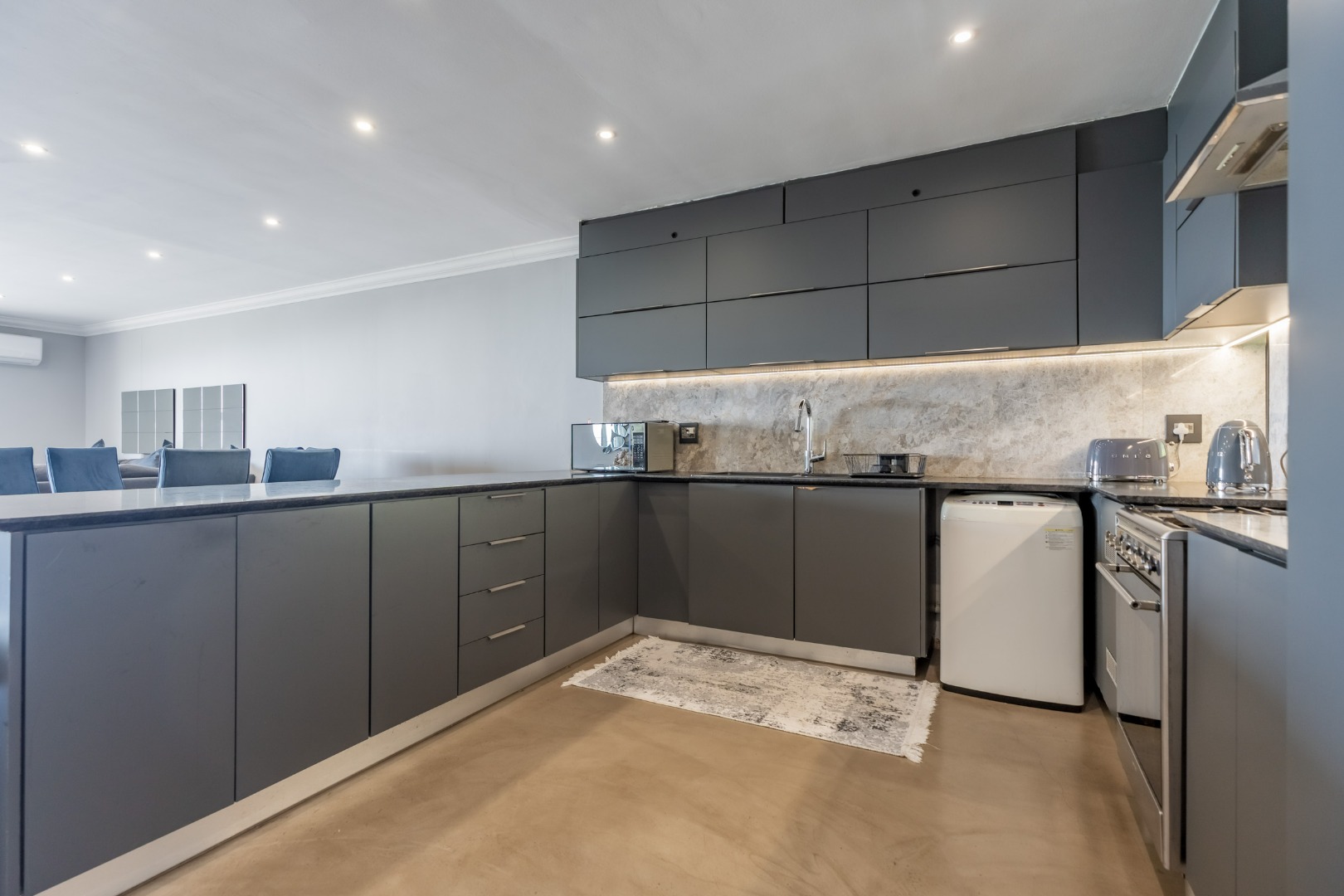 Situated in Morningside, a highly sought-after location, this apartment boasts exceptional finishes from start to end. The home features a fully functional modern kitchen with Caesarstone countertops, matte-finish built-in cupboards, a gas stove, high-powered extractor, and plumbing for a washing machine. The open-plan kitchen flows seamlessly into the dining area, ideal for serving meals, and continues into a bright and spacious lounge filled with natural light. This space opens onto a generous balcony with stunning sea views. Both the lounge and dining areas are air-conditioned and finished with stylish screed flooring. There are two spacious bedrooms, both fitted with built-in cupboards and laminate flooring. The main bedroom includes air conditioning, direct access to the balcony, and a modern en-suite bathroom with a shower, basin, and toilet. The second bathroom is fully tiled and also offers a shower, basin, and toilet.