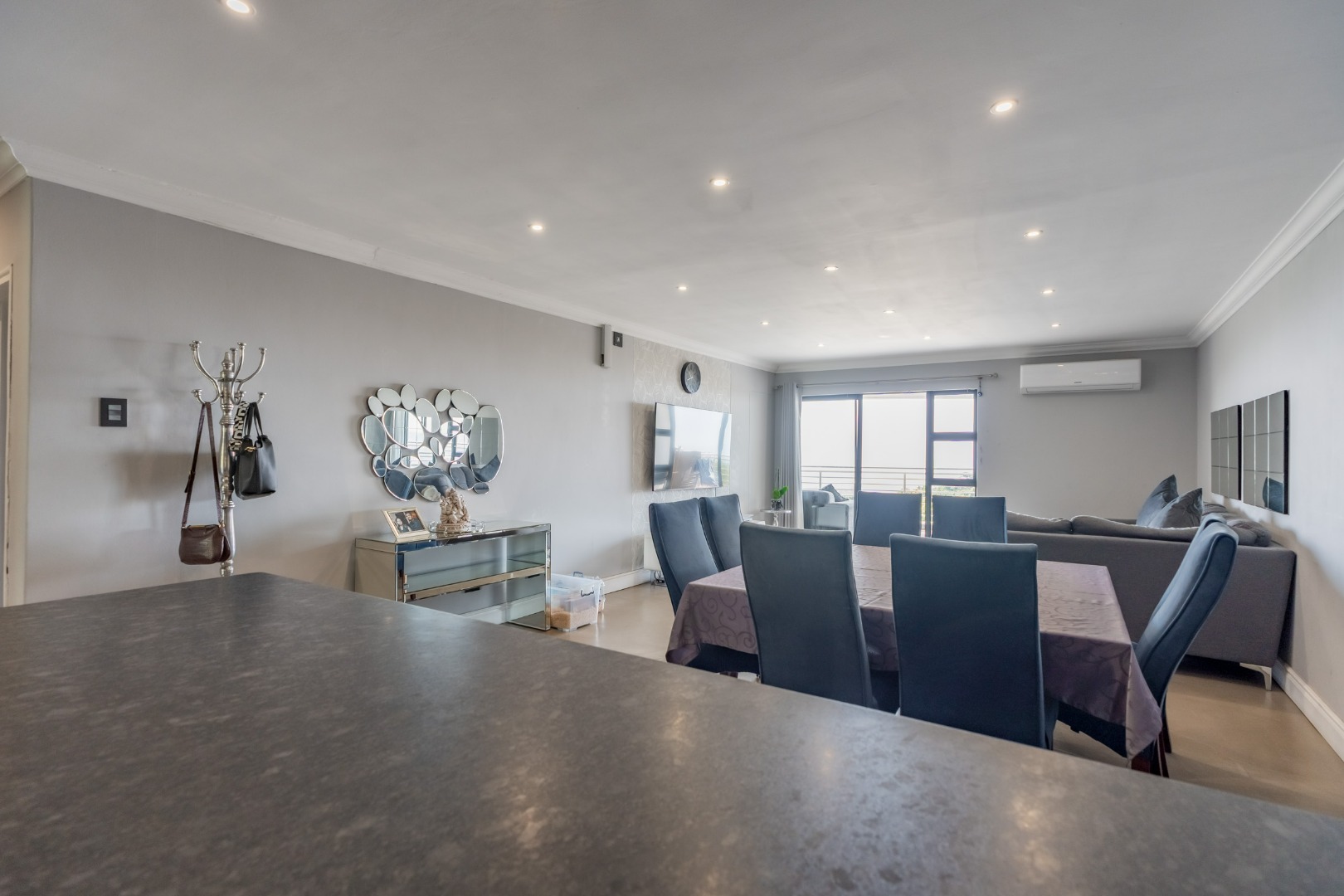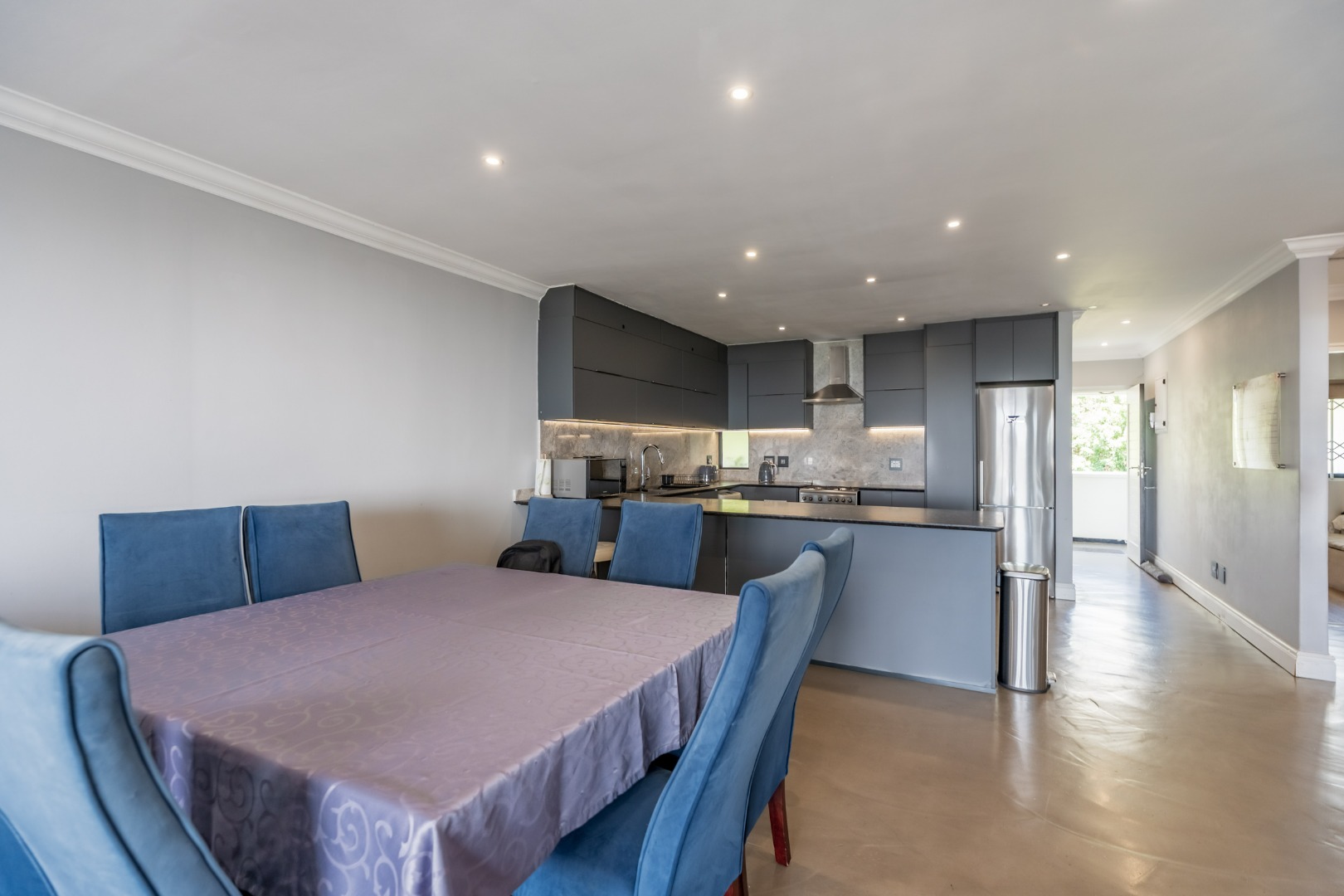 Situated in Morningside, a highly sought-after location, this apartment boasts exceptional finishes from start to end. The home features a fully functional modern kitchen with Caesarstone countertops, matte-finish built-in cupboards, a gas stove, high-powered extractor, and plumbing for a washing machine. The open-plan kitchen flows seamlessly into the dining area, ideal for serving meals, and continues into a bright and spacious lounge filled with natural light. This space opens onto a generous balcony with stunning sea views. Both the lounge and dining areas are air-conditioned and finished with stylish screed flooring. There are two spacious bedrooms, both fitted with built-in cupboards and laminate flooring. The main bedroom includes air conditioning, direct access to the balcony, and a modern en-suite bathroom with a shower, basin, and toilet. The second bathroom is fully tiled and also offers a shower, basin, and toilet.