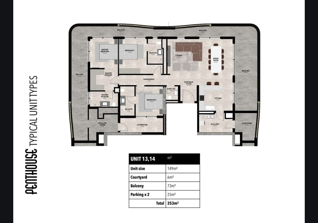 Each unit is thoughtfully designed to offer modern luxury, including a fully equipped kitchen, two bedrooms with built-in wardrobes, and two sleek bathrooms complete with a shower, basin, and toilet. The bedrooms and open-plan lounge extends to a private balcony, perfect for relaxation.