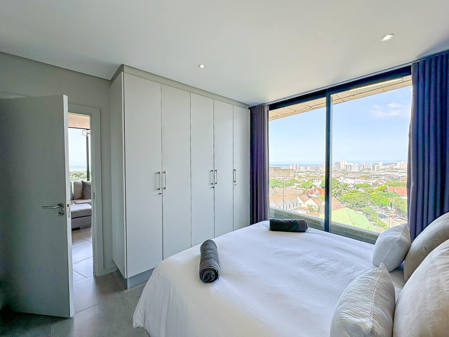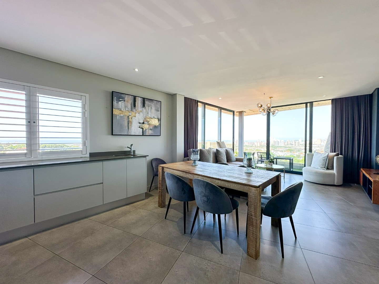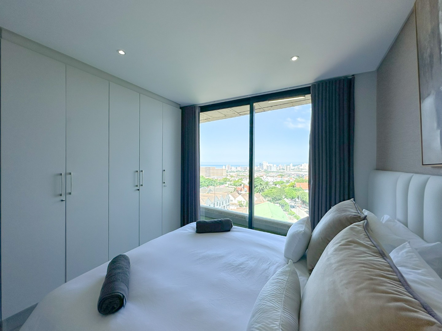 Stunning apartment located in the heart of Florida Road. This beautifully renovated unit boasts exceptional finishes, starting with a modern open-plan kitchen featuring high-quality built-in cupboards, a fixed hob, oven, extractor, Caesarstone countertops, and stylish shutters. The kitchen seamlessly flows into the dining area, which connects to a spacious lounge leading to a balcony with sliding doors—perfect for enjoying breathtaking sea and city views.