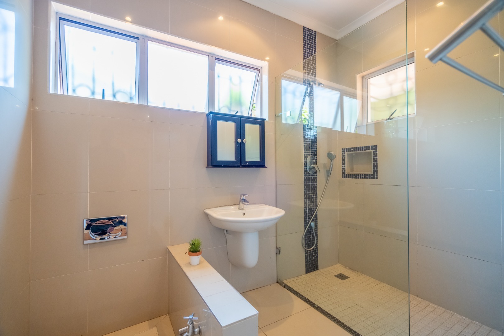 A covered verandah at the front of the home overlooks the level garden, while a dedicated entertainment area with braai facilities makes it ideal for relaxed weekends and family gatherings. The property is fully enclosed, giving children ample room to play in a safe environment.